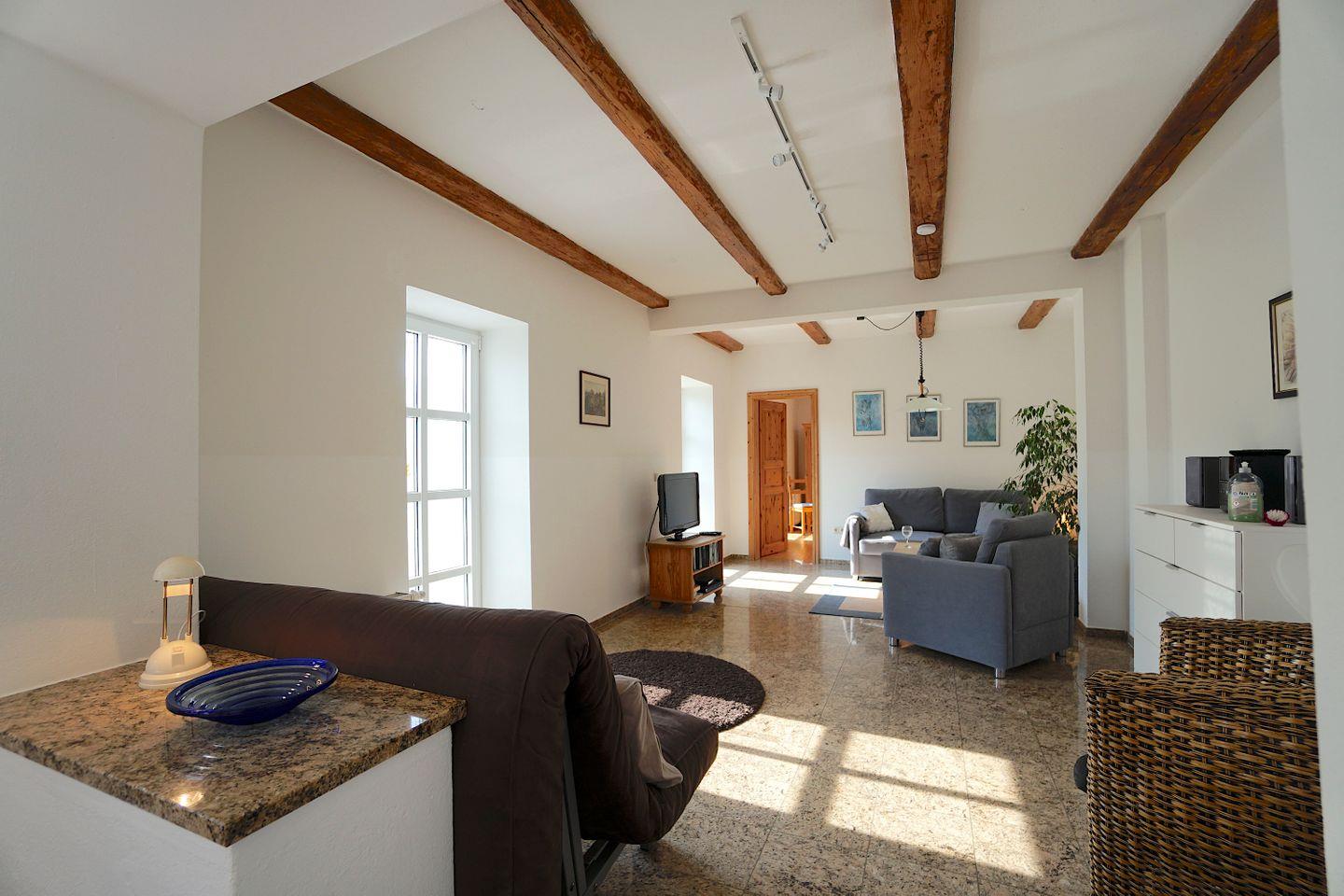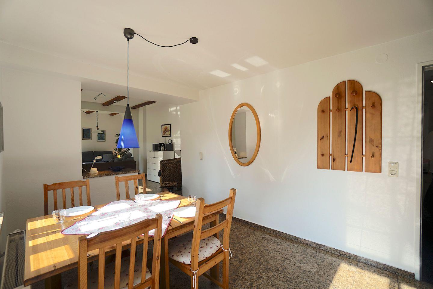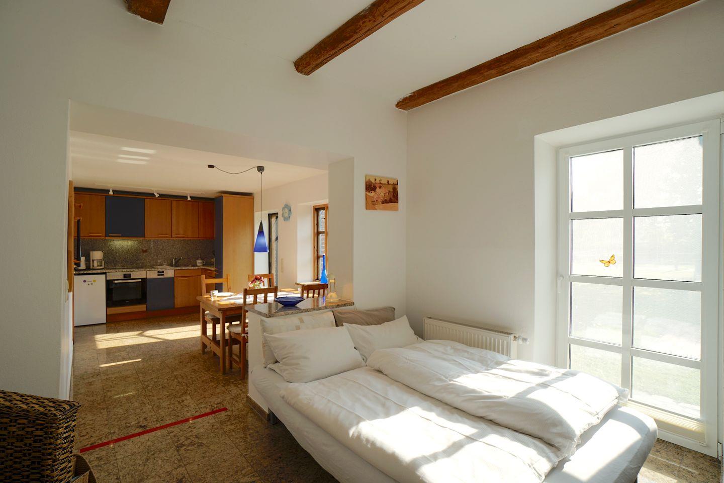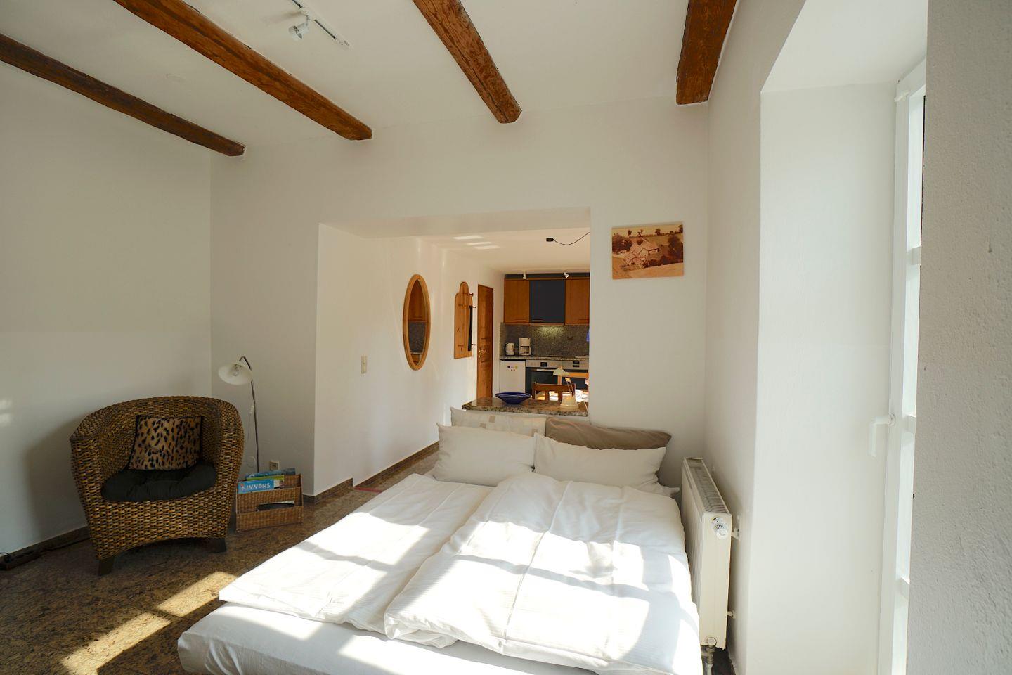 Die Ferienwohnung verfügt über ein geschmackvoll eingerichtetes Schlafzimmer und ein komfortables Badezimmer mit Dusche und Badewanne, ideal für entspannte Wellness-Momente nach einem erlebnisreichen Tag. Die offene Wohnküche ist mit allem ausgestattet, was Sie benötigen – von einem modernen Ceranfeld über eine Spülmaschine bis hin zu einer Mikrowelle und einer Kaffeemaschine. Genießen Sie Ihre Mahlzeiten am gemütlichen Esstisch oder entspannen Sie im einladenden Wohnzimmer mit Sofaecke und TV. Hier können Sie den Abend mit einem Film oder einer spannenden DVD ausklingen lassen.