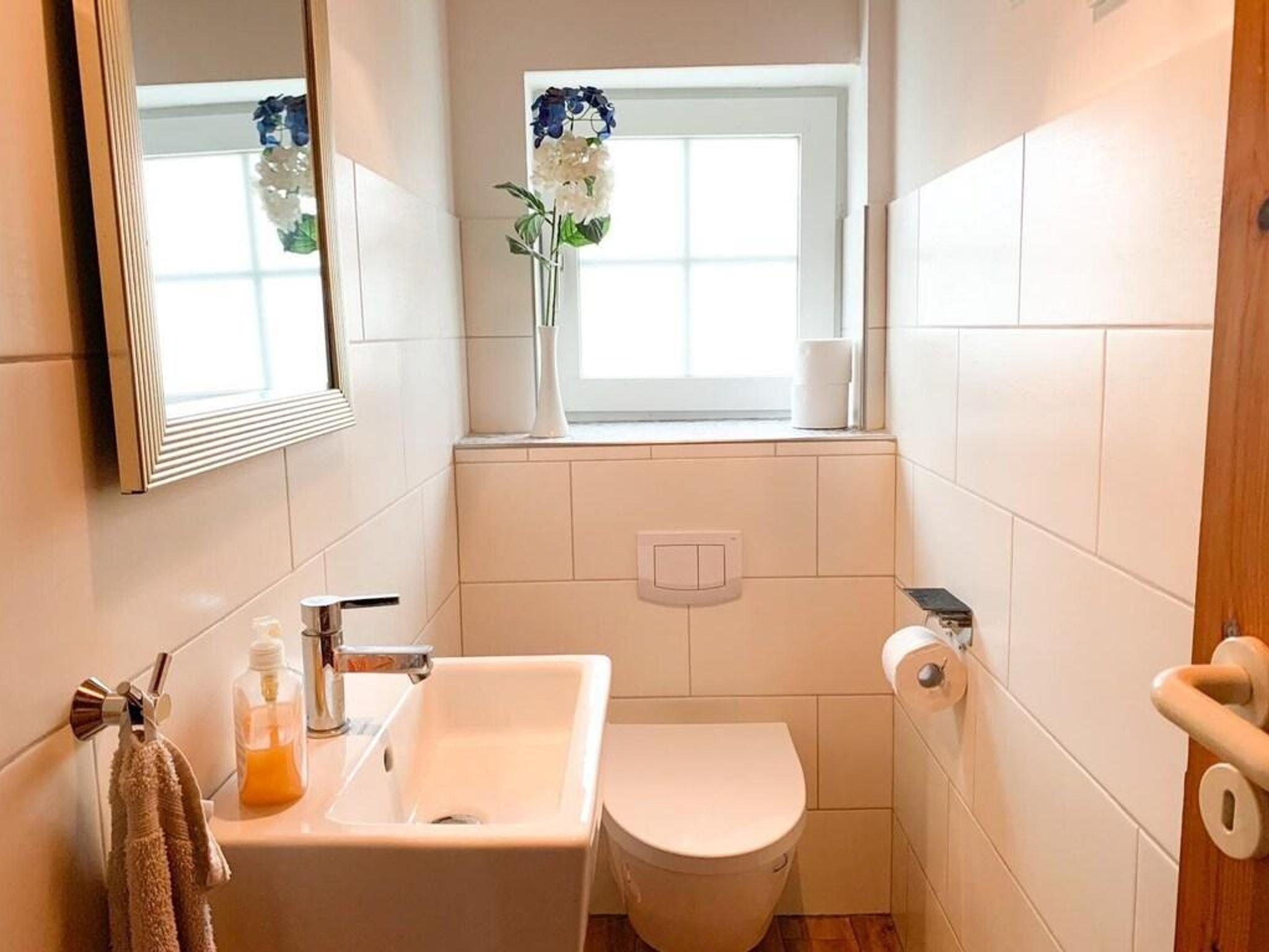 Weiße ReetdachkateLeicht erhöht präsentiert sich diese wunderschöne Reetdachkate kurz vor Osterhever mit einem großen Garten der viele gemütliche Stunden im grünen verspricht. Vom Eingangsbereich erstreckt sich links eine separate Küche mit Sitzgelegenheit und rechts abgehend der Wohnbereich mit einem großen Sofa & TV. Hier gibt es auch eine Terrassentür nach draußen. Im hinteren Hausteil erstrecken sich die Sanitärräume und Schlafgemächer. Hier befindet sich ein Doppelbettzimmer sowie ein Hochbettzimmer für 2 Personen. Im Verbindungsflur gibt es ein Gäste WC sowie eine großzügiges Hauptbad mit ebenerdiger Dusche und der Sauna. Eine kleine Wellnessoase. Über eine Wendeltreppe gibt es im Obergeschoss einen großen Raum mit einer weiteren Schlafgelegenheit für 2 in Form eines Doppelbetts. Hier befindet sich auch ein TV, Kicker sowie Spiel und Sitzgelegenheiten. Mit den rustikalen Balken im Dachgiebel versprüht dieser Raum seinen ganz eigenen Charme.