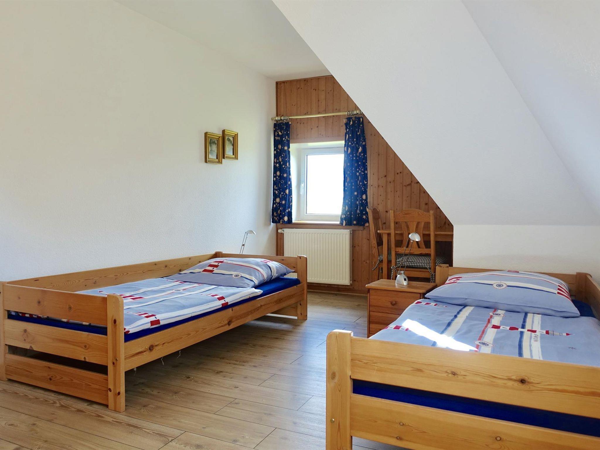 Die Ferienwohnung 5 hat eine Grundfläche von 108qm. Sie ist für 4 Personen geeignet, verfügt über einen separaten Eingang und bietet auf zwei Etagen eine gepflegte Einrichtung und Ausstattung. Im Erdgeschoss befindet sich eine komplett ausgestattete offene Wohnküche (Backofen, 4-Platten-Herd, Mikrowelle, Kaffeemaschine, Toaster, Geschirrspüler, Kühlschrank) mit einem angrenzenden Esszimmer, eine großzügige Sofalandschaft mit TV und CD-Player/Radio sowie ein großes Badezimmer mit Dusche und WC. Im Obergeschoss sind zwei Schlafräume, eines mit einem Doppelbett (2 x 1,80m) und ein weiteres Schlafzimmer mit zwei Einzelbetten. Ebenfalls im Obergeschoss belegen ist ein weiteres Badezimmer mit Tageslicht, Dusche und WC sowie großzügiger Stauraum für Ihre Sachen. Vom Wohnbereich aus gelangen Sie auf Ihre eigene Terrasse mit Gartenmöbeln und Grillmöglichkeit. Der Blick geht in den Garten, über die Felder und zum Deich am Wattenmeer.