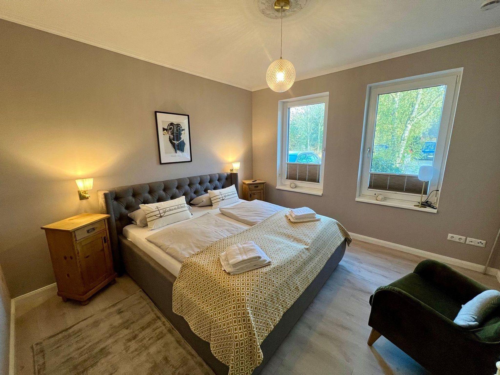 Praktisches: Bei Anreise sind die Betten bezogen und Handtuchpakete liegen bereit. WLAN, Fußbodenheizung, Plissees und Fliegengitter sorgen für zusätzlichen Komfort. Für Gäste mit E-Auto steht eine E-Ladestation (gegen Gebühr) zur Verfügung.