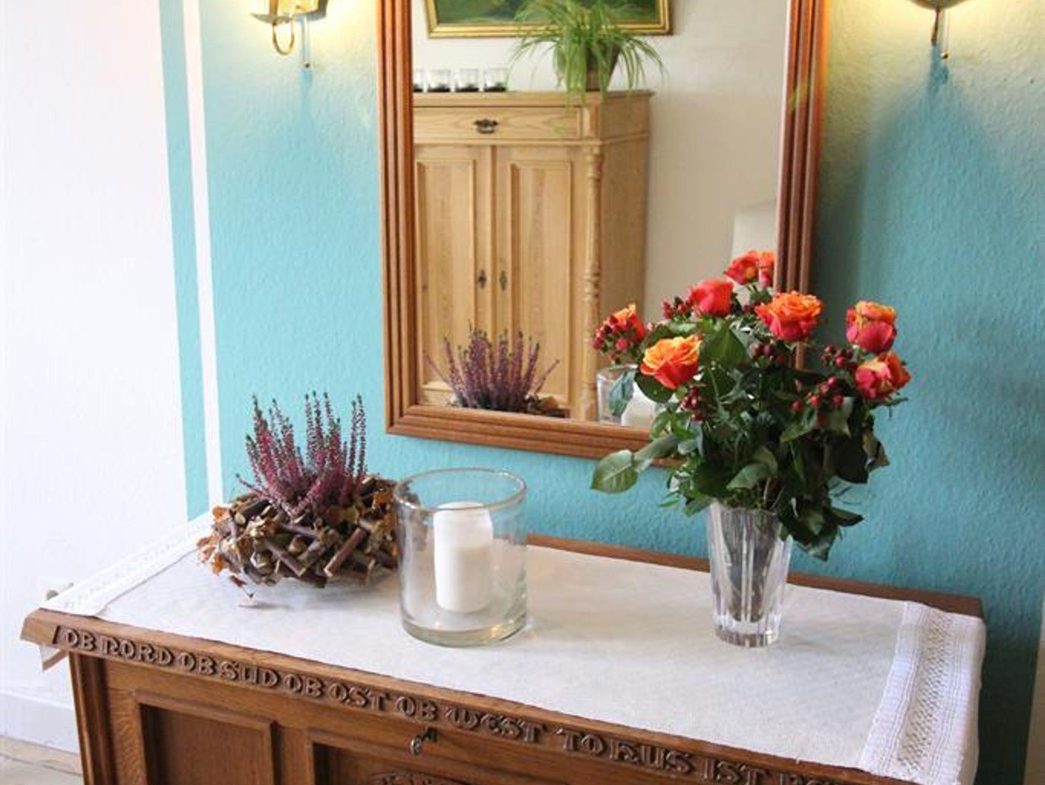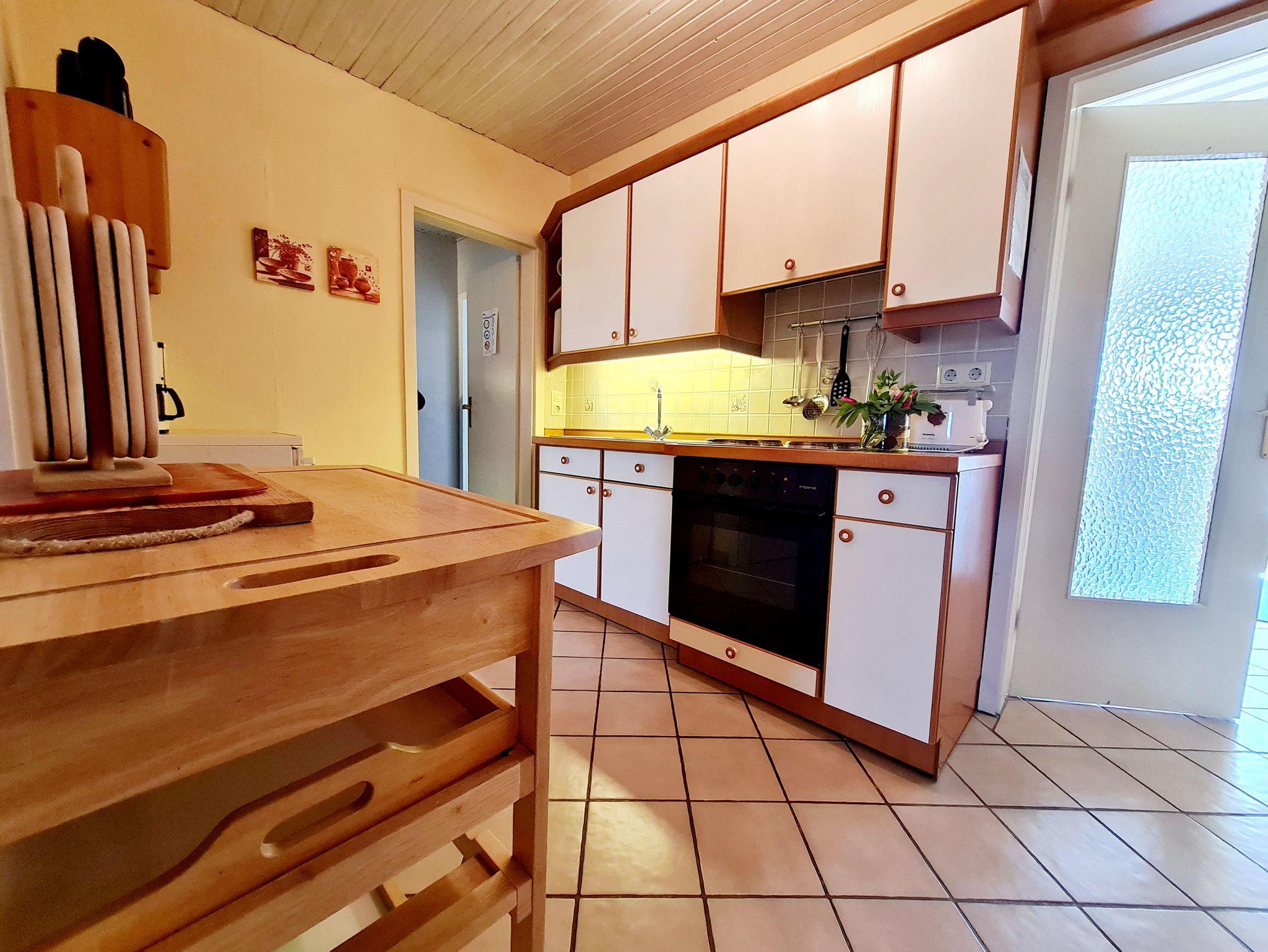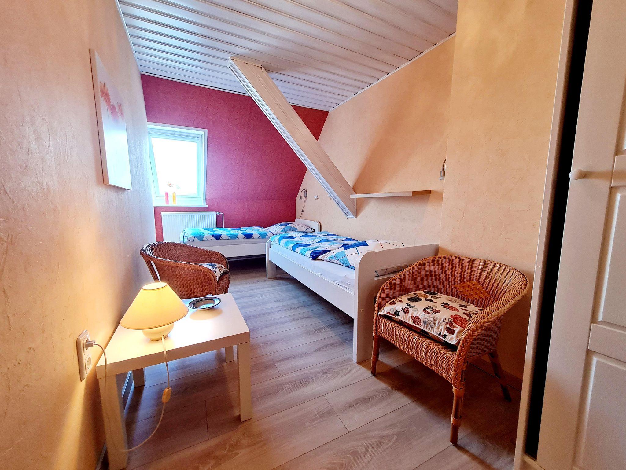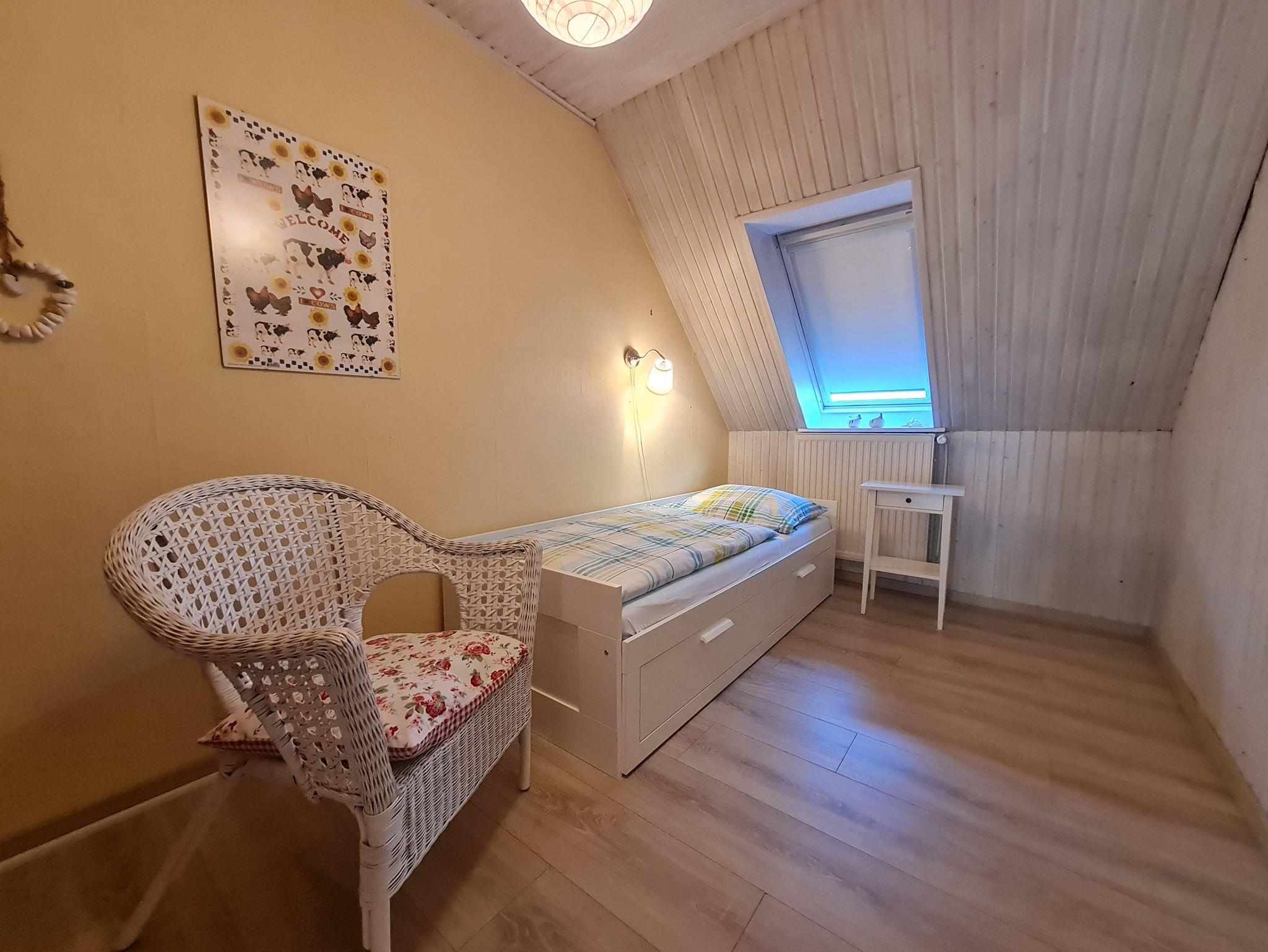 Die Ferienwohnung befindet sich im Obergeschoss des Bauernhauses. Sie ist ausgestattet mit einem gemütlich eingerichteten Wohnraum mit Sitz- und Essecke, SAT-TV und Radio. Einem Schlafraum mit zwei Einzelbetten und viel Stauraum, sowie einem Schlafraum mit einem Tandembett. Die separate Küche ist komplett für den Urlaubshaushalt eingerichet. Duschbad mit WC.