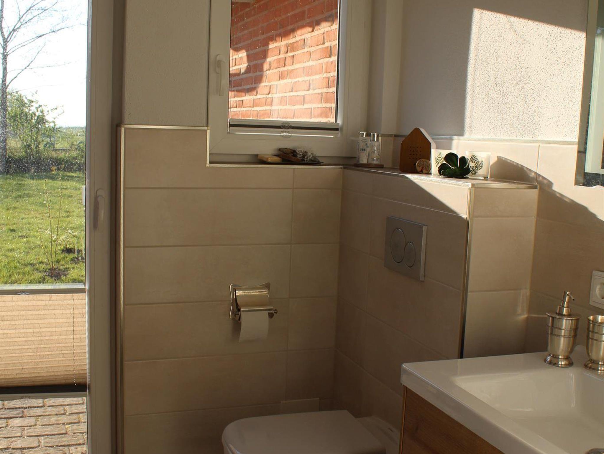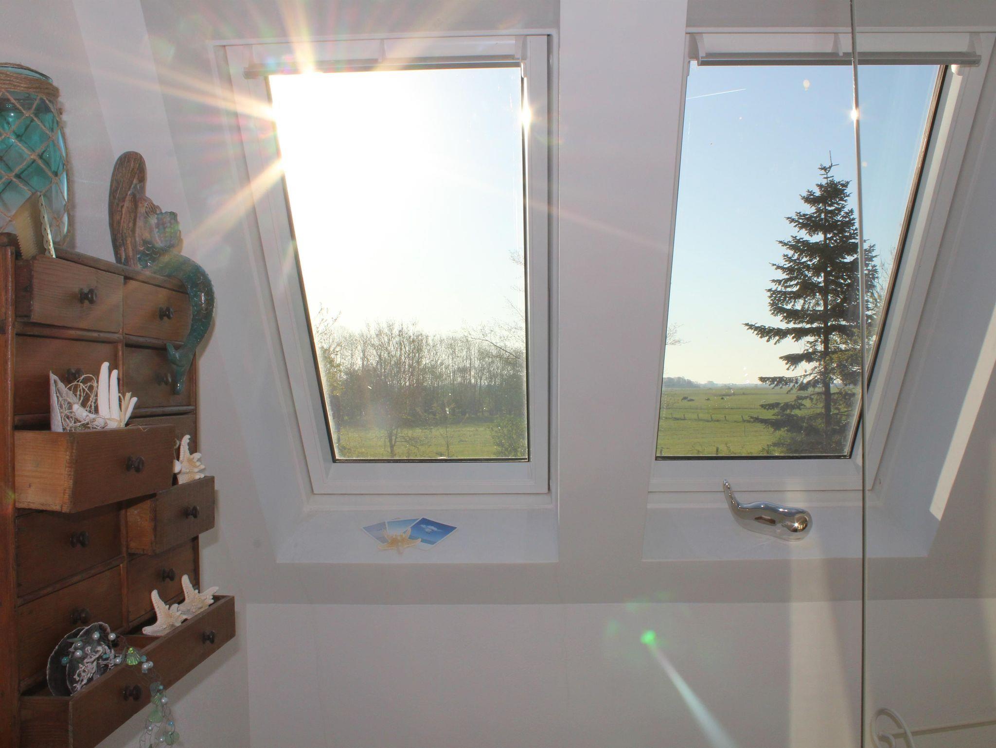 Das geräumige Bad bietet ein luxuriöses Duscherlebniss mit Blick in die Weite von Eiderstedt.