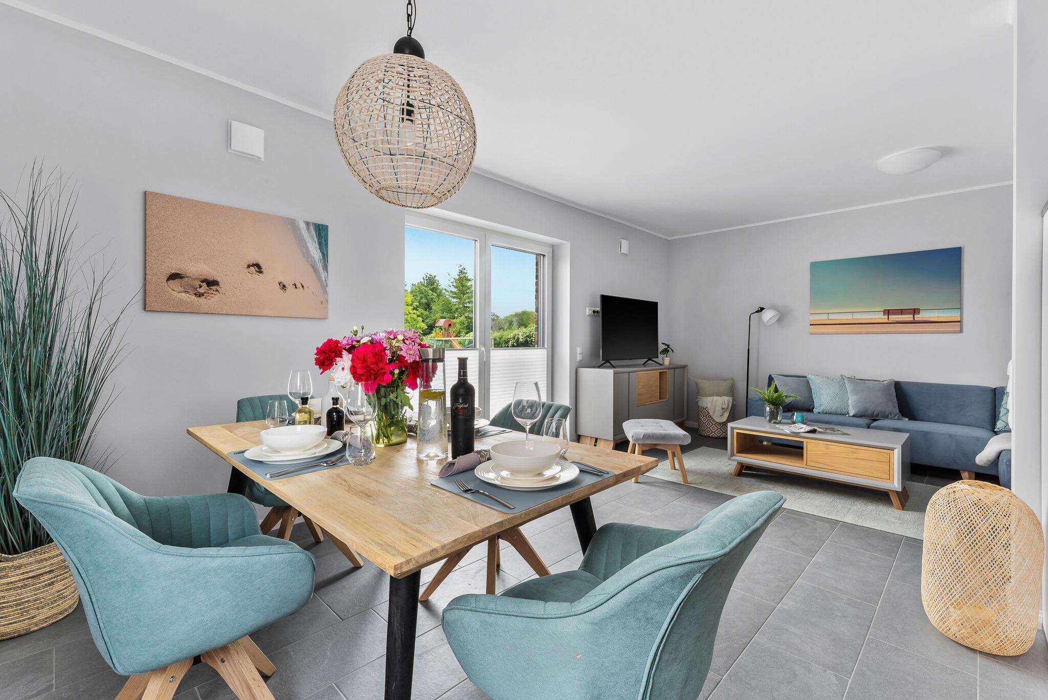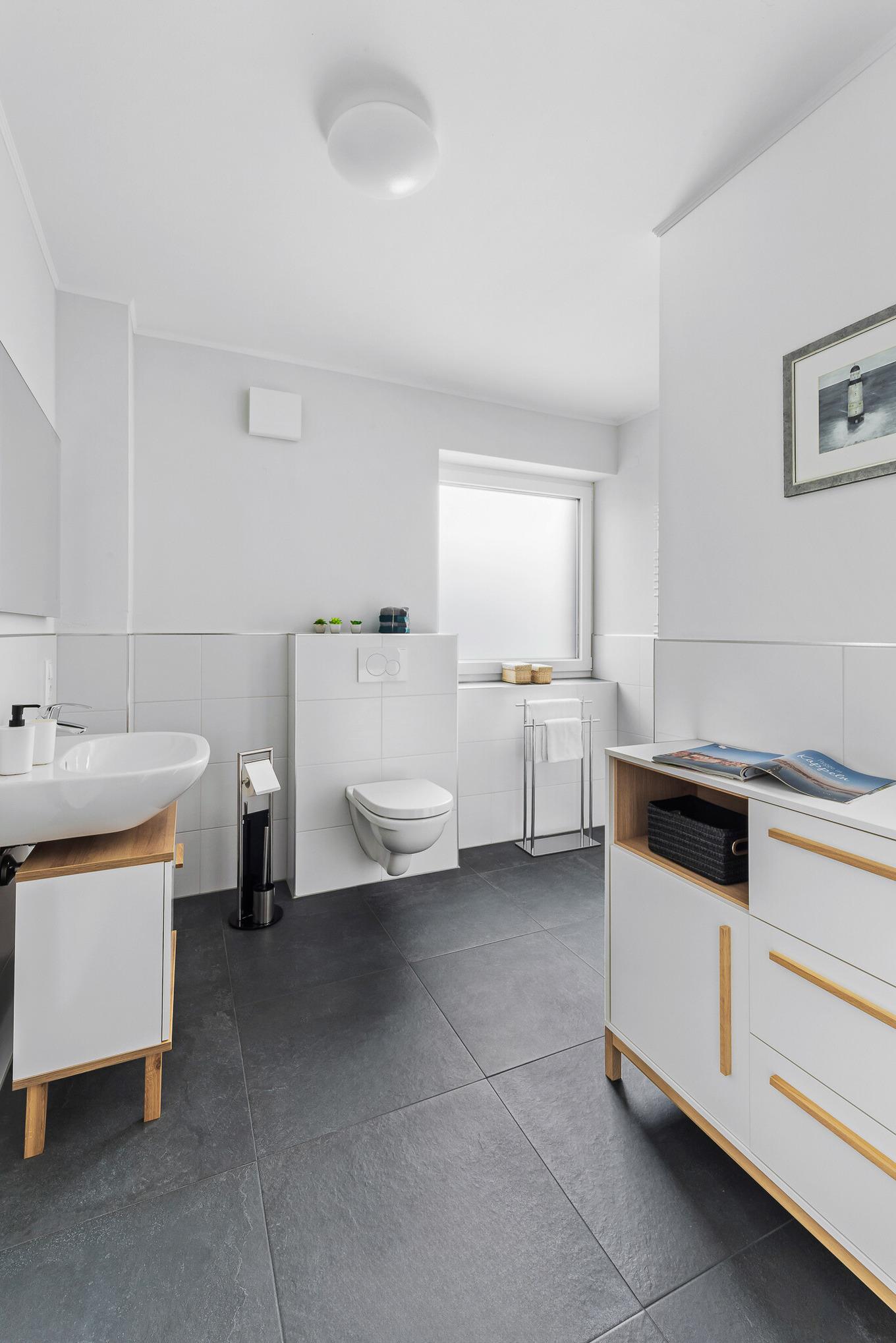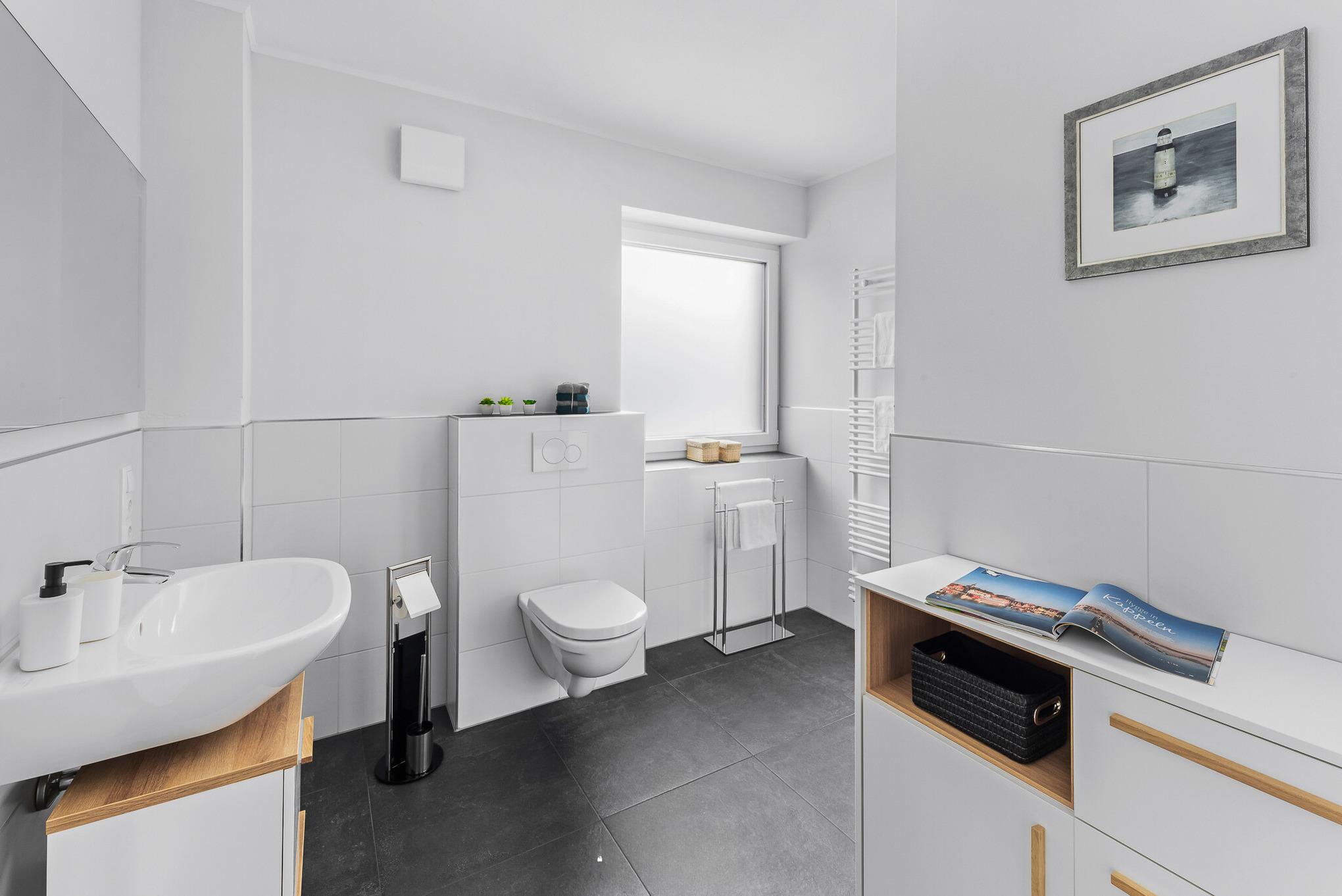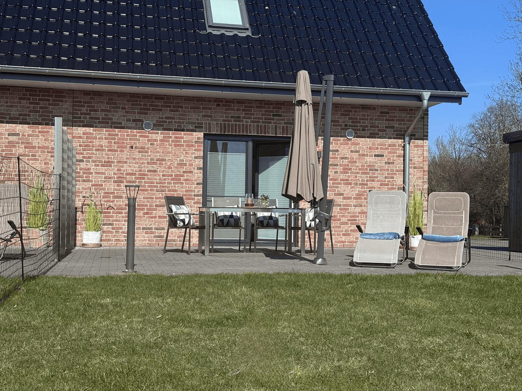 Die elegante Doppelhaushälfte "Lee" bietet ein hochwertiges und modernes Ambiente, das Ihren Aufenthalt an der Nordsee zu einem unvergesslichen Erlebnis machen wird! Besonders hervorzuheben ist die nachhaltige Bauweise des Hauses. Es entspricht nicht nur dem Standard von KfW 40 plus, sondern bezieht seinen Strom vollständig aus erneuerbaren Energiequellen. Zusätzlich wurde eine Erdwärmepumpe installiert. Der großzügige Wohnbereich ist stilvoll eingerichtet und mit einem Flatscreen-TV ausgestattet. Die separate, moderne Küche bietet alles, was Sie für einen gelungenen Kochabend benötigen. In den beiden Schlafzimmern befinden sich jeweils ein großes Doppelbett sowie ein Flatscreen-TV. Die beiden modernen Bäder verfügen jeweils über eine ebenerdige Dusche. Zum Haus gehören zudem eine Terrasse, ein großer, komplett eingezäunter Garten und ein Gemeinschaftsgeräteschuppen. Vor dem Haus steht Ihnen ein großzügiger Parkplatz zur Verfügung. Es gibt zusätzlich einen Carport.
