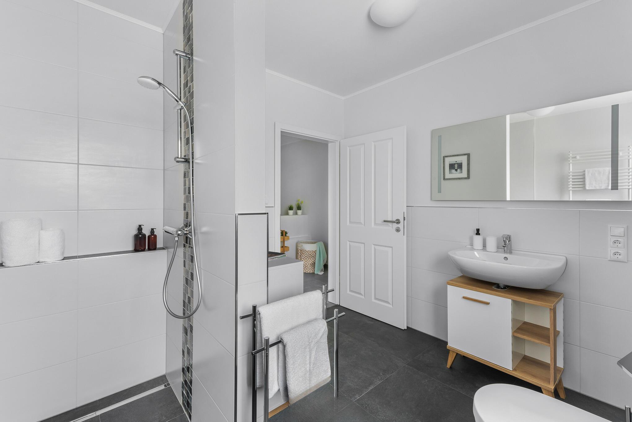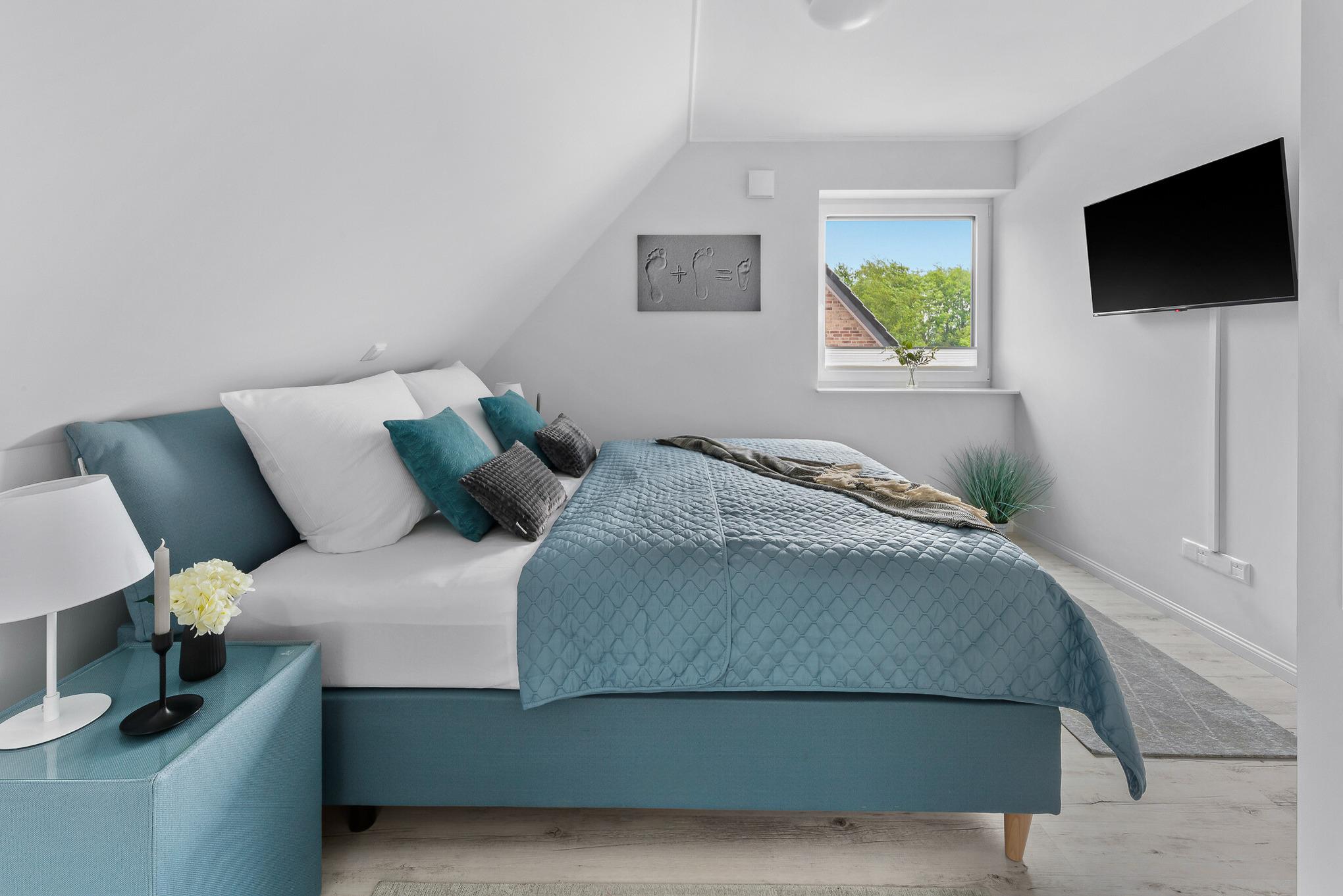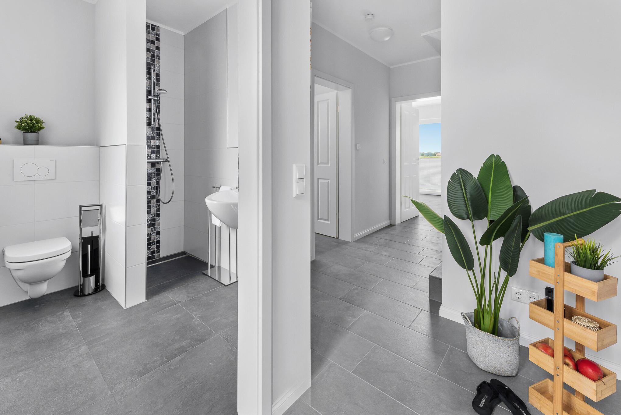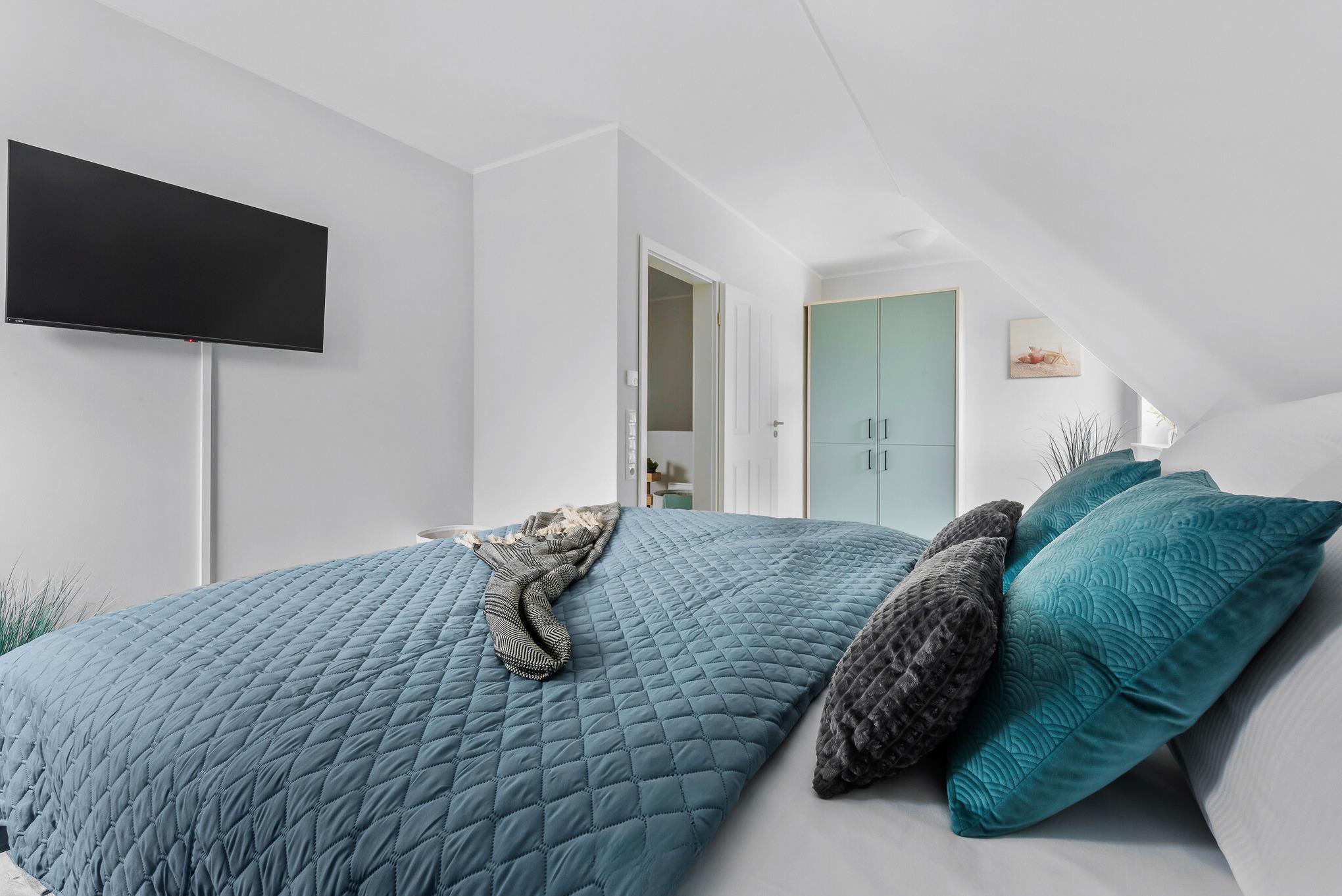 Die elegante Doppelhaushälfte "Lee" bietet ein hochwertiges und modernes Ambiente, das Ihren Aufenthalt an der Nordsee zu einem unvergesslichen Erlebnis machen wird! Besonders hervorzuheben ist die nachhaltige Bauweise des Hauses. Es entspricht nicht nur dem Standard von KfW 40 plus, sondern bezieht seinen Strom vollständig aus erneuerbaren Energiequellen. Zusätzlich wurde eine Erdwärmepumpe installiert. Der großzügige Wohnbereich ist stilvoll eingerichtet und mit einem Flatscreen-TV ausgestattet. Die separate, moderne Küche bietet alles, was Sie für einen gelungenen Kochabend benötigen. In den beiden Schlafzimmern befinden sich jeweils ein großes Doppelbett sowie ein Flatscreen-TV. Die beiden modernen Bäder verfügen jeweils über eine ebenerdige Dusche. Zum Haus gehören zudem eine Terrasse, ein großer, komplett eingezäunter Garten und ein Gemeinschaftsgeräteschuppen. Vor dem Haus steht Ihnen ein großzügiger Parkplatz zur Verfügung. Es gibt zusätzlich einen Carport.