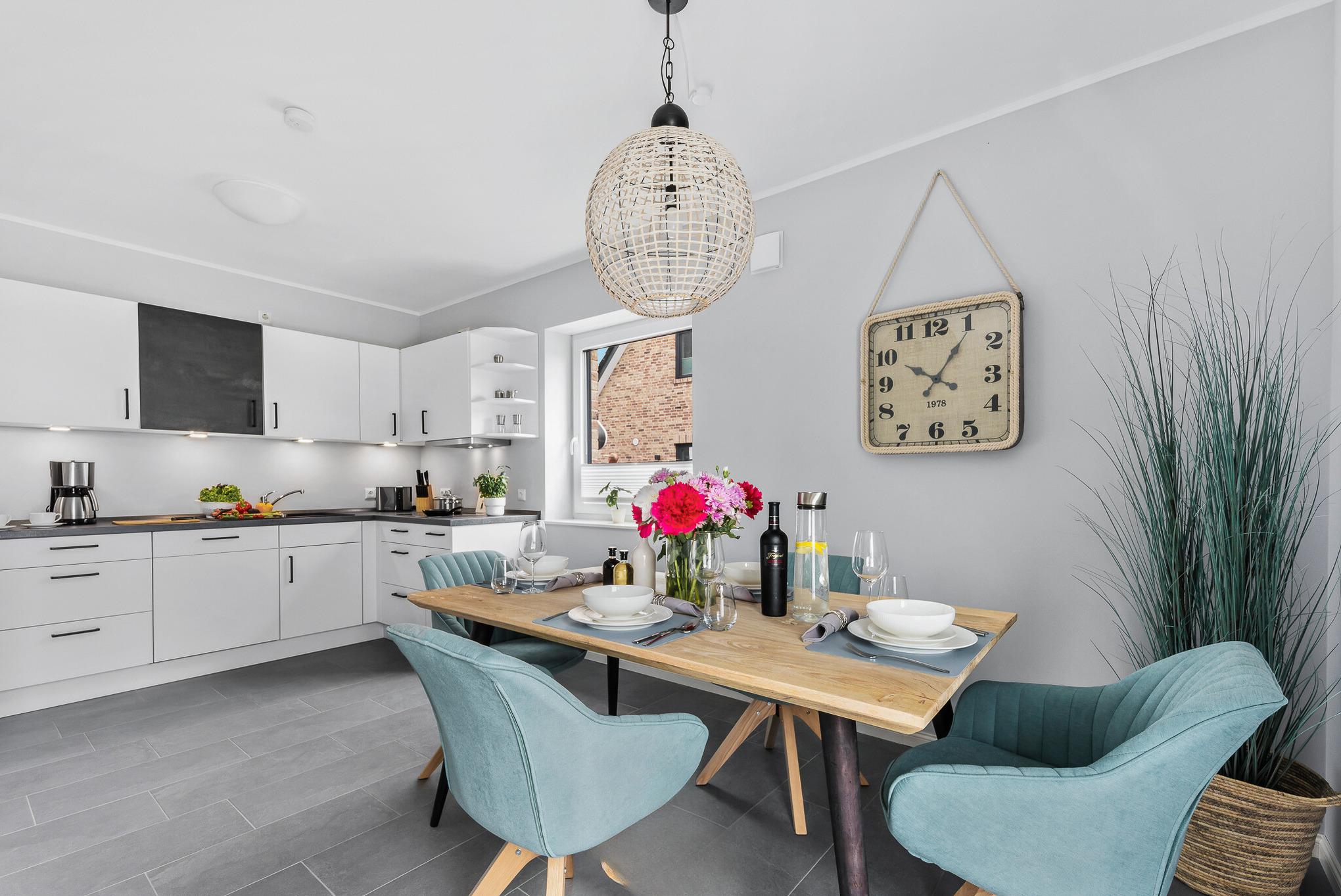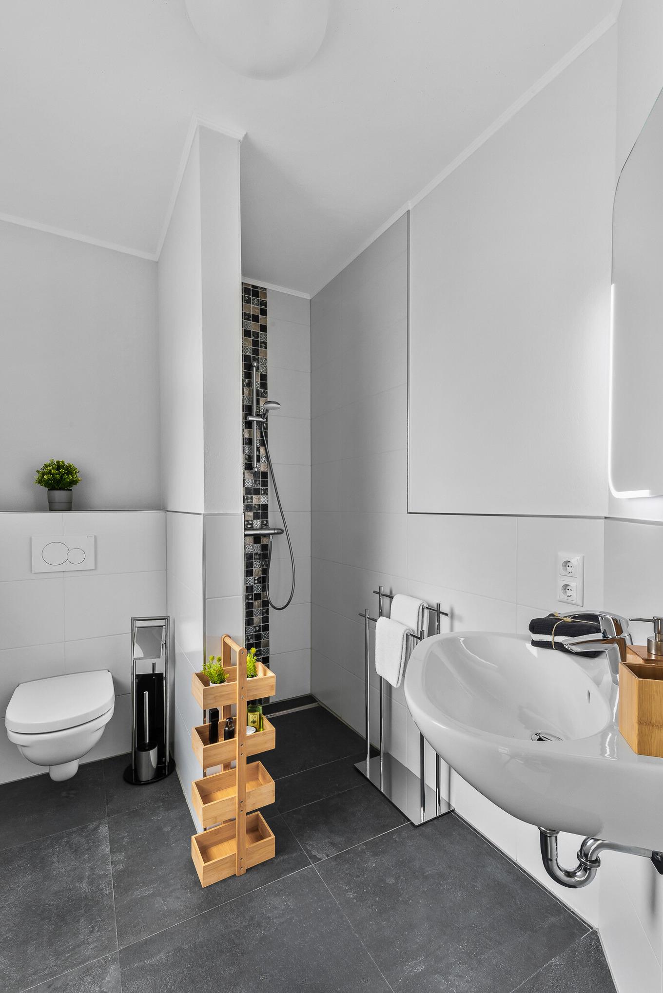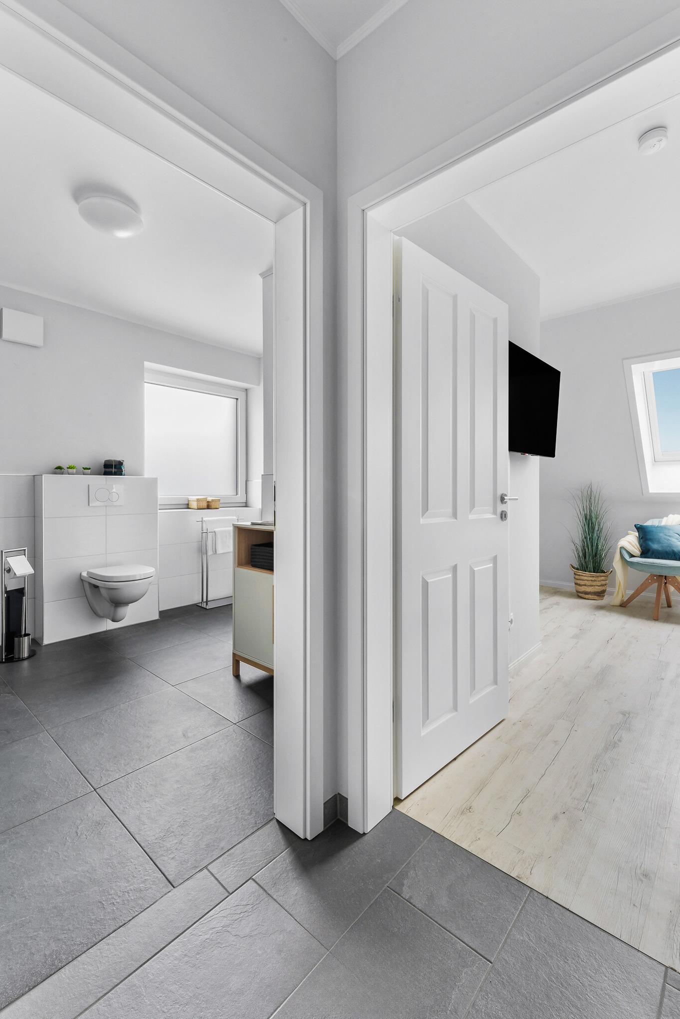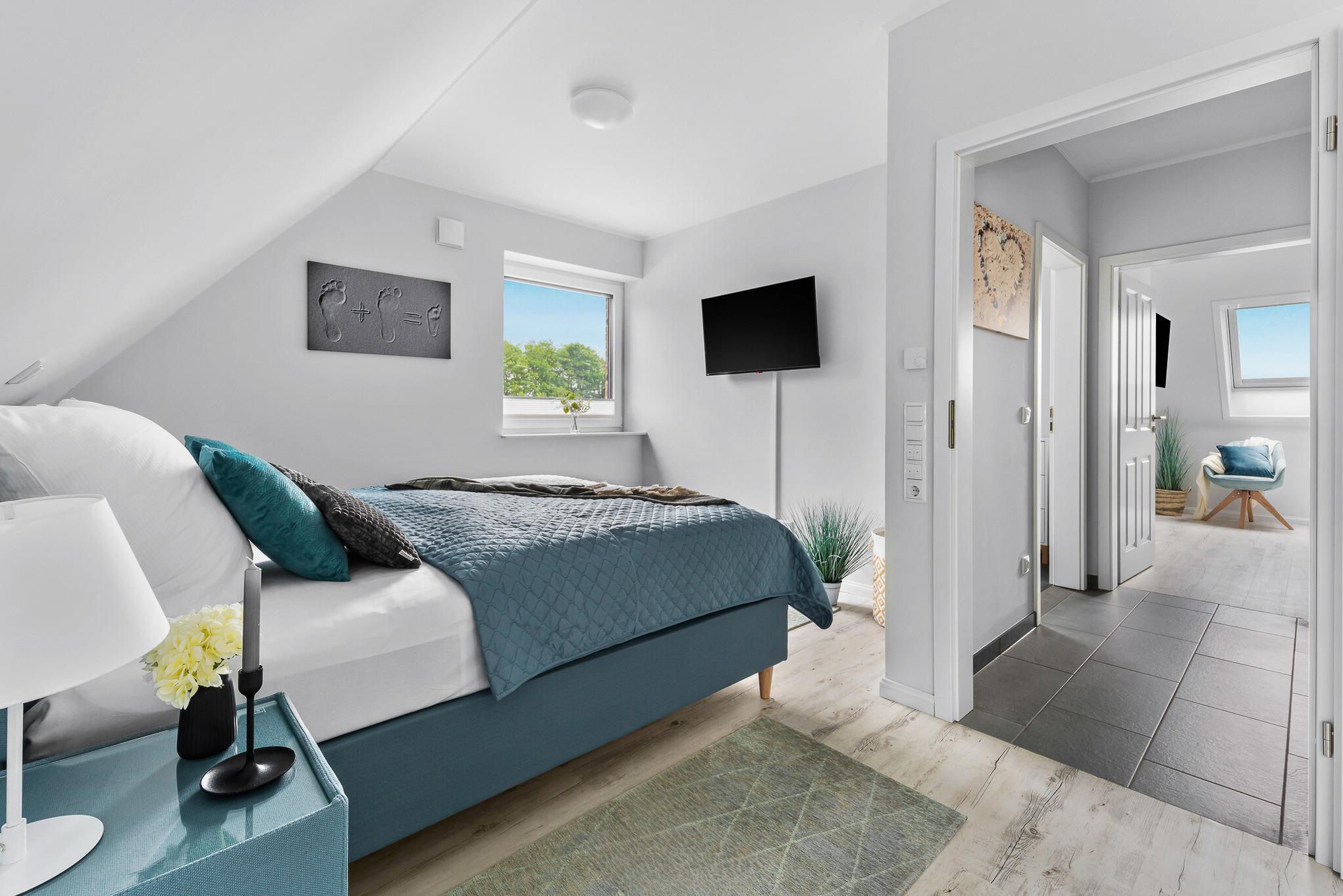 Die elegante Doppelhaushälfte "Lee" bietet ein hochwertiges und modernes Ambiente, das Ihren Aufenthalt an der Nordsee zu einem unvergesslichen Erlebnis machen wird! Besonders hervorzuheben ist die nachhaltige Bauweise des Hauses. Es entspricht nicht nur dem Standard von KfW 40 plus, sondern bezieht seinen Strom vollständig aus erneuerbaren Energiequellen. Zusätzlich wurde eine Erdwärmepumpe installiert. Der großzügige Wohnbereich ist stilvoll eingerichtet und mit einem Flatscreen-TV ausgestattet. Die separate, moderne Küche bietet alles, was Sie für einen gelungenen Kochabend benötigen. In den beiden Schlafzimmern befinden sich jeweils ein großes Doppelbett sowie ein Flatscreen-TV. Die beiden modernen Bäder verfügen jeweils über eine ebenerdige Dusche. Zum Haus gehören zudem eine Terrasse, ein großer, komplett eingezäunter Garten und ein Gemeinschaftsgeräteschuppen. Vor dem Haus steht Ihnen ein großzügiger Parkplatz zur Verfügung. Es gibt zusätzlich einen Carport.