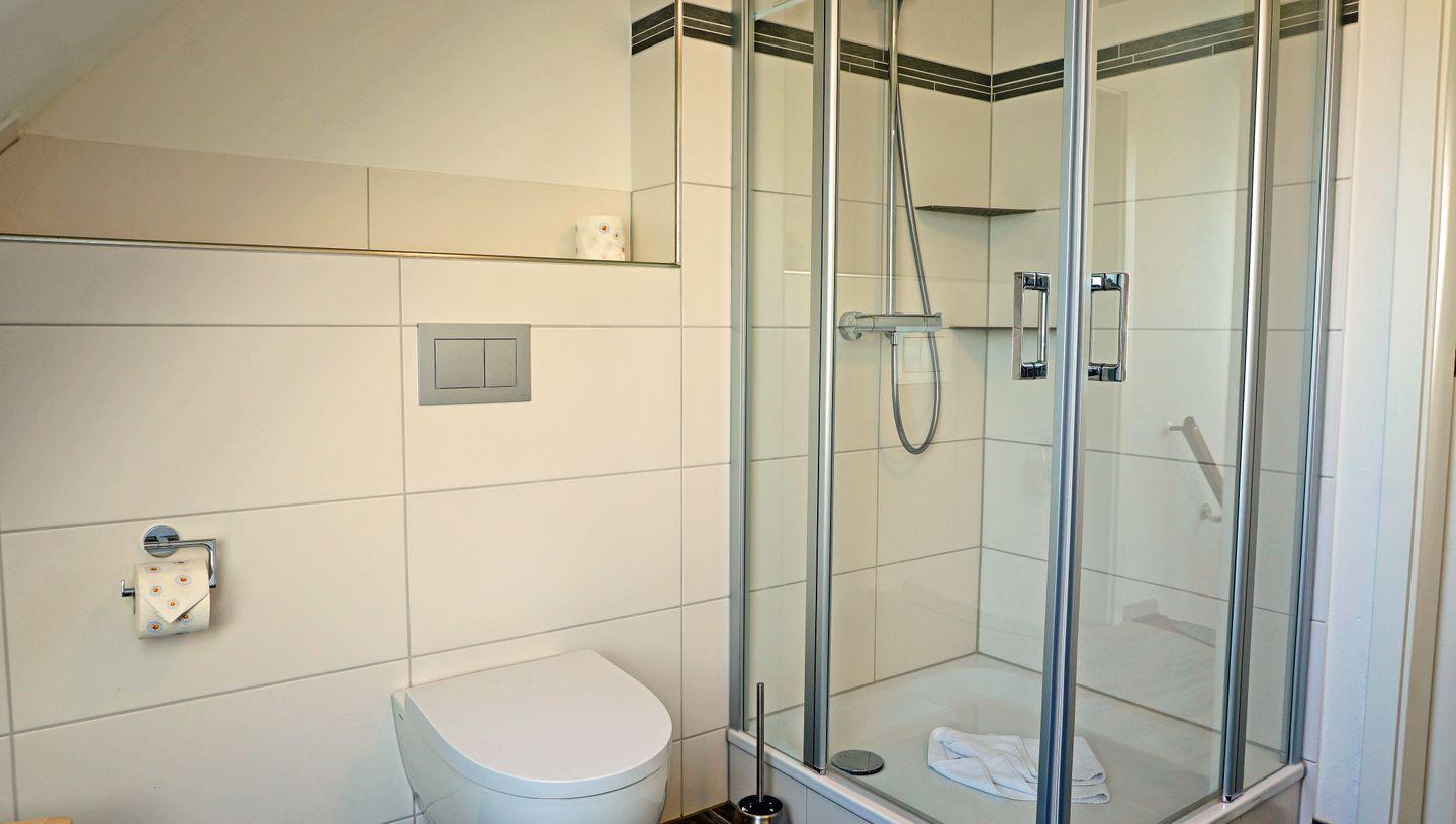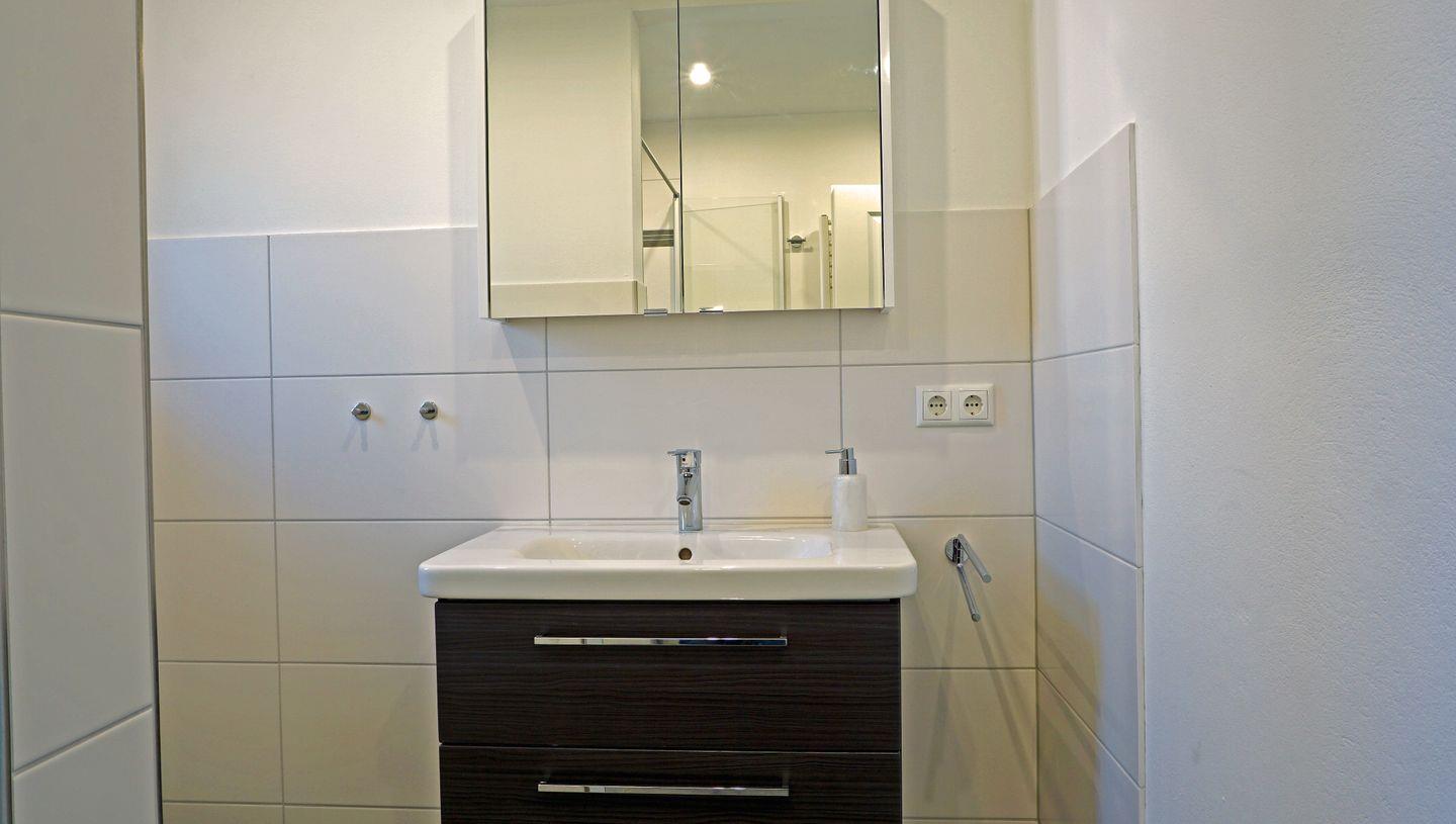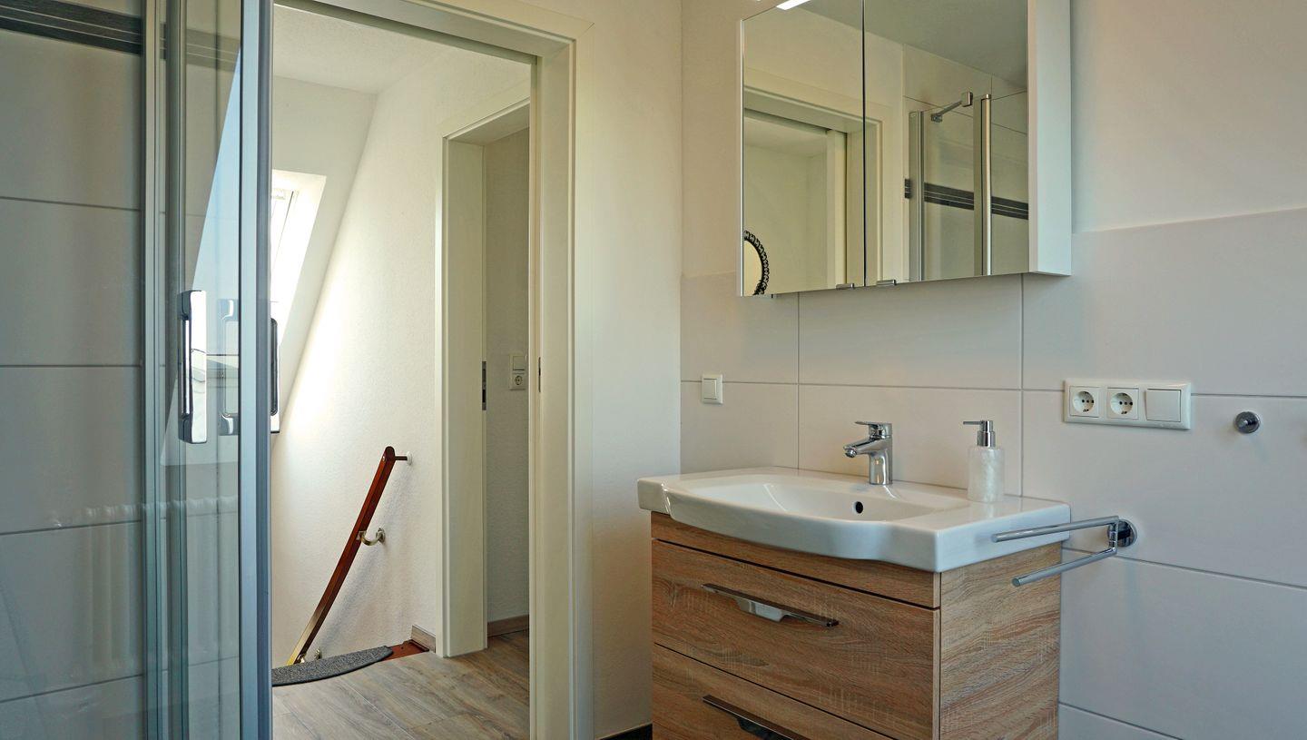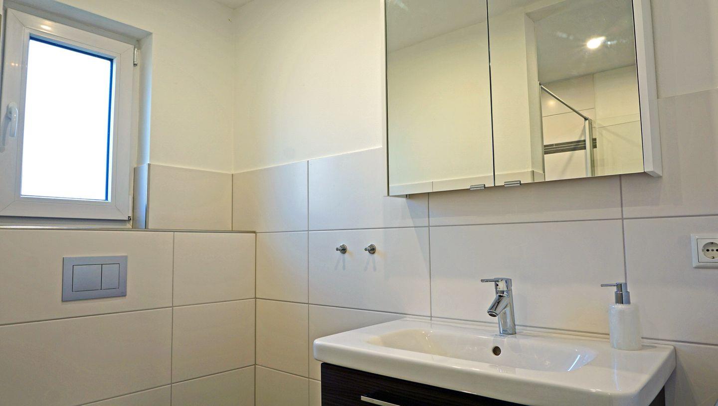 Duschbad mit ebenerdiger Dusche, Handtucherwärmung.