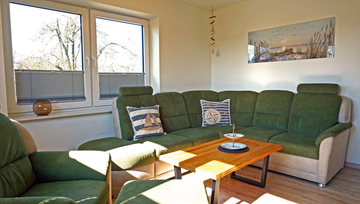 Wohnzimmer mit Ecksitzgruppe, SMART-TV.