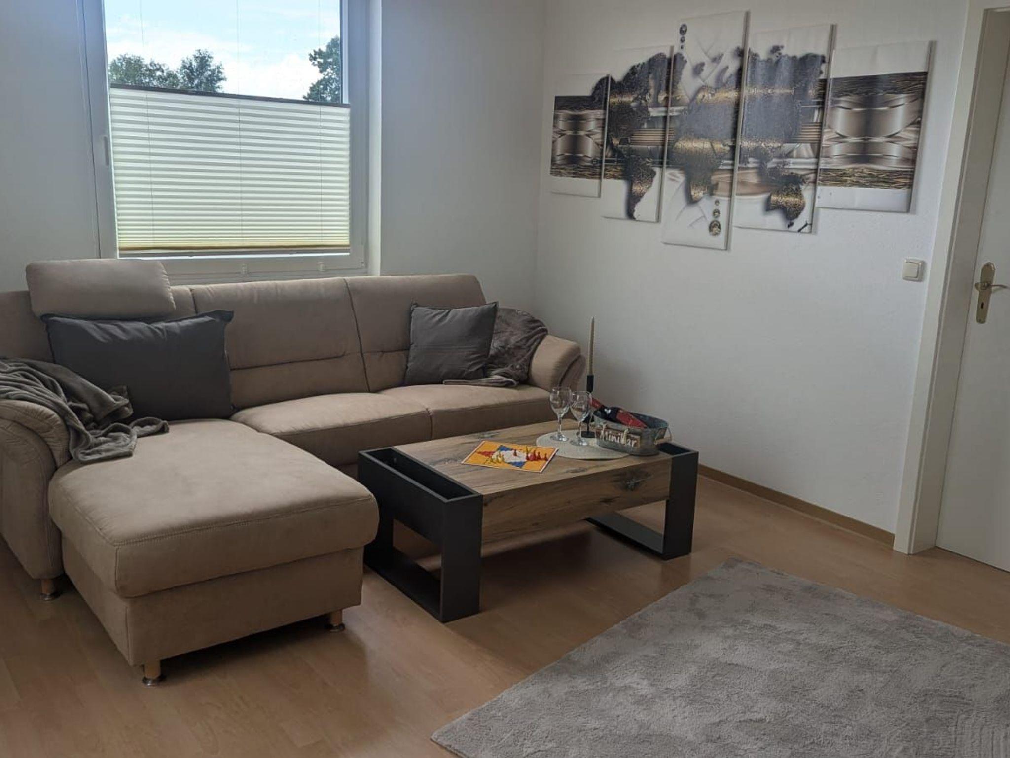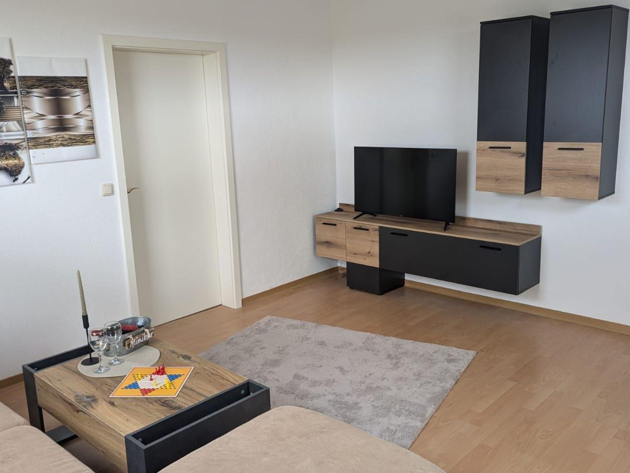 Das Wohnzimmer mit gemütlicher Sitzecke, Flachbild-TV mit SAT-Empfang und kostenlosem WLAN lädt zum Entspannen ein und eine Infomappe mit Tipps zur Region liegt zum blättern und lesen bereit.