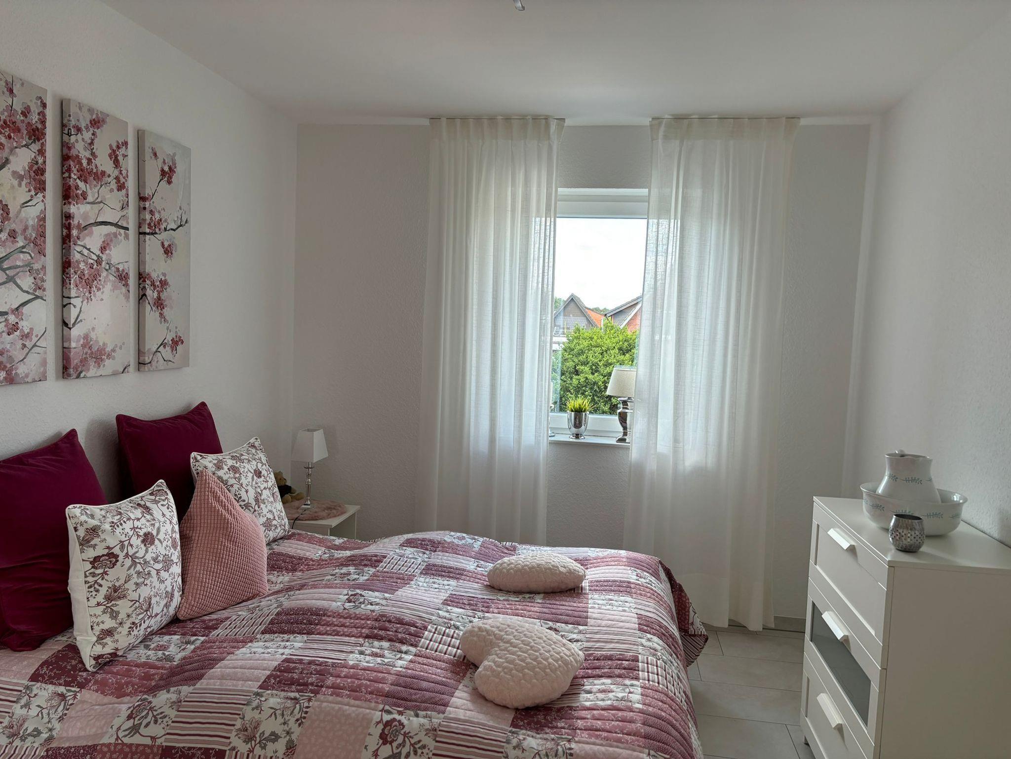 Die 70 qm große und modern eingerichtete Ferienwohnung für 2-4 Personen liegt in der ersten Etage (Fahrstuhl vorhanden), mit überdachten Balkon und Parkplatz.