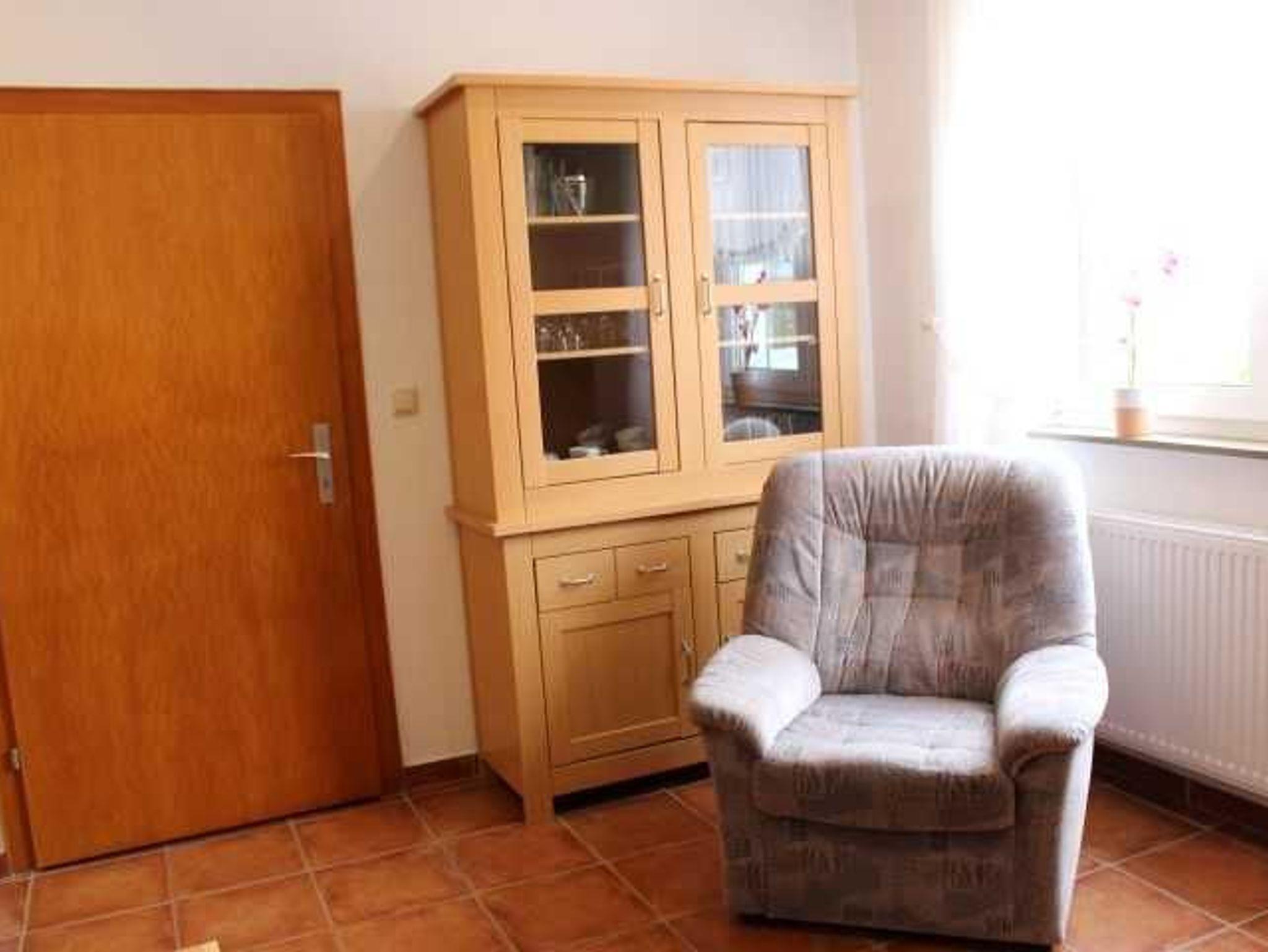 Die Ferienwohnung ist wie folgt aufgeteilt: Erdgeschoss, 1 DZ, Wohnzimmer, Küche mit Essecke, DU/WC (begehbare Dusche, nur mit Rollator möglich), Abstellraum, ruhige Lage, gepflegte Außenanlage, Terrasse mit Gartenmöbeln, Grillplatz, Angelmöglichkeit in nächster Umgebung (Vermieter ist Angler), abschließbarer Fahrradschuppen, Parkplatz am Hause,Bettwäsche und Handtücher werden gestellt.