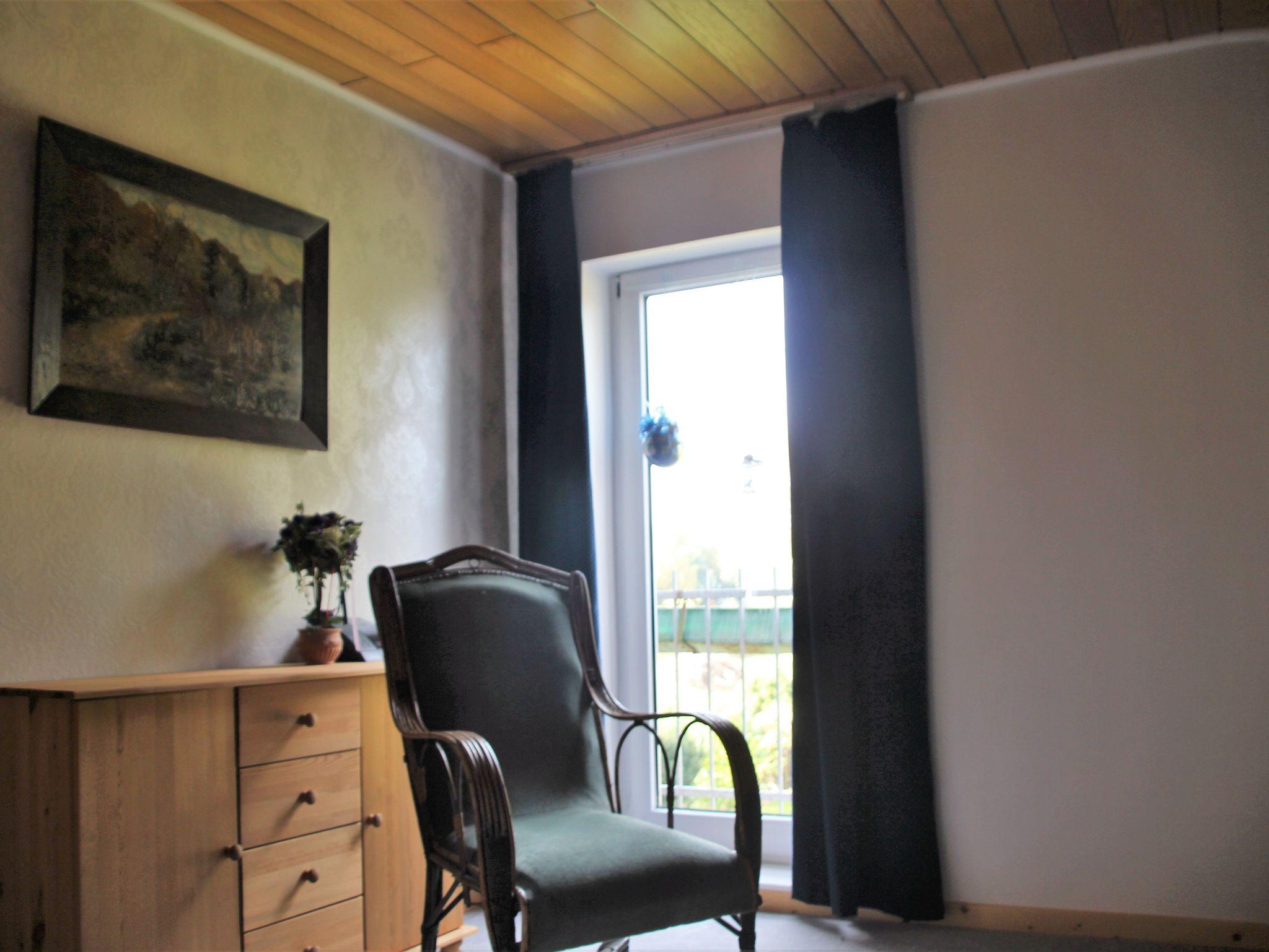 Die Ferienwohnung befindet sich im Obergeschoss mit seperaten Eingang und möblierten Garten. Die Wohnung besteht aus einem großzügigen Wohnraum mit zus.Schlafcaouch, anliegender Küche und Essbereich. Ein Doppelzimmer und ein Einzelzimmer. Es besteht die Möglichkeit ein Zustellbett /Kinderbett zusätzlich zu stellen.