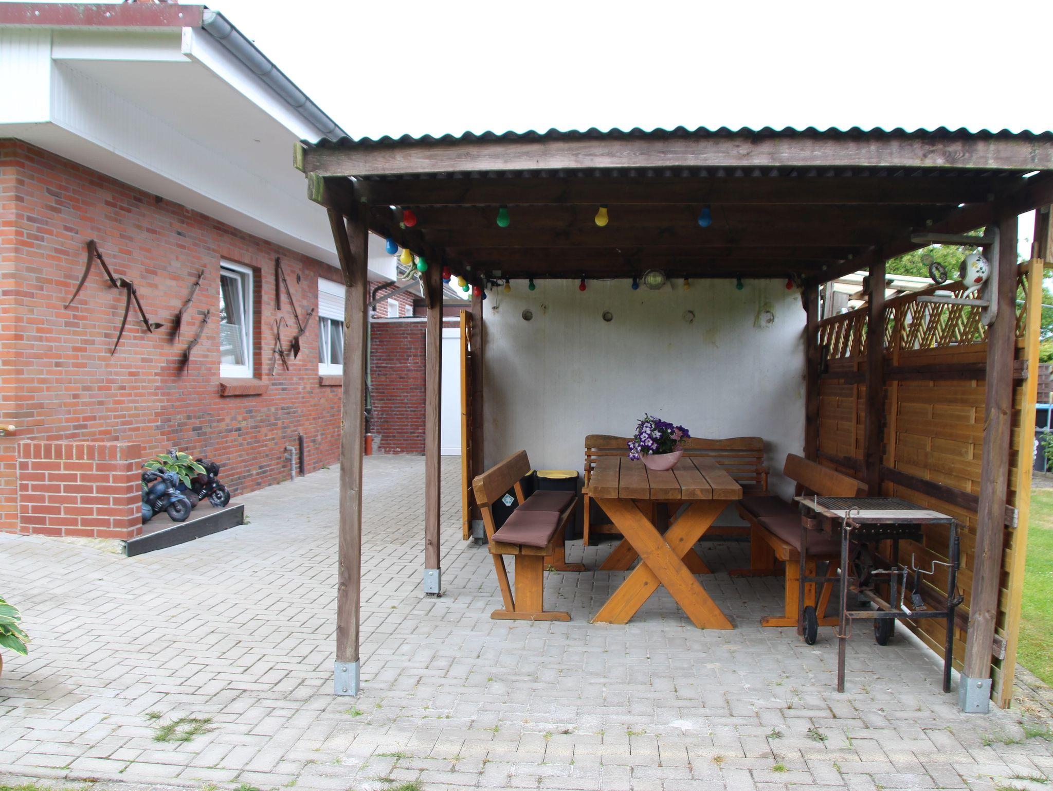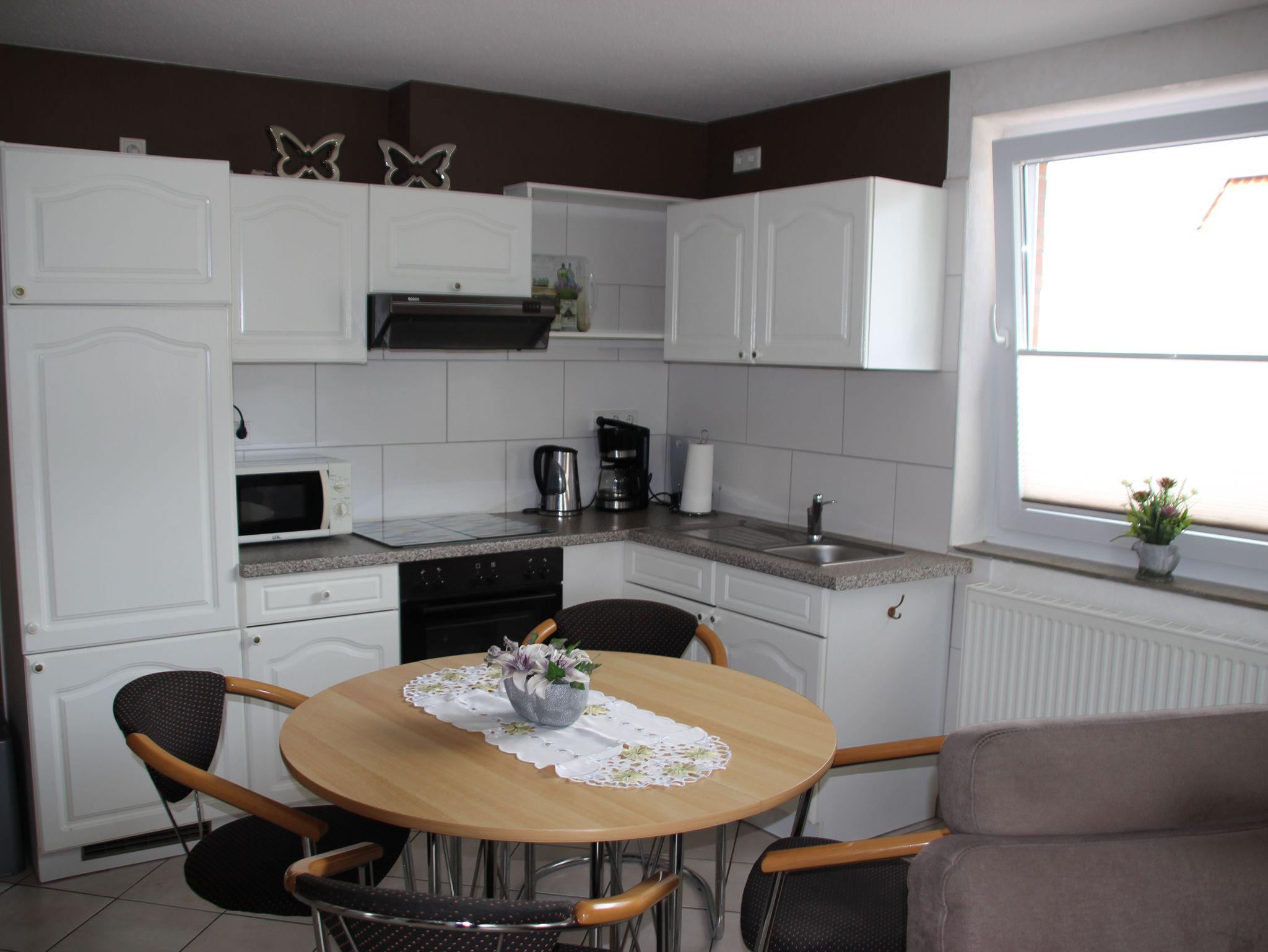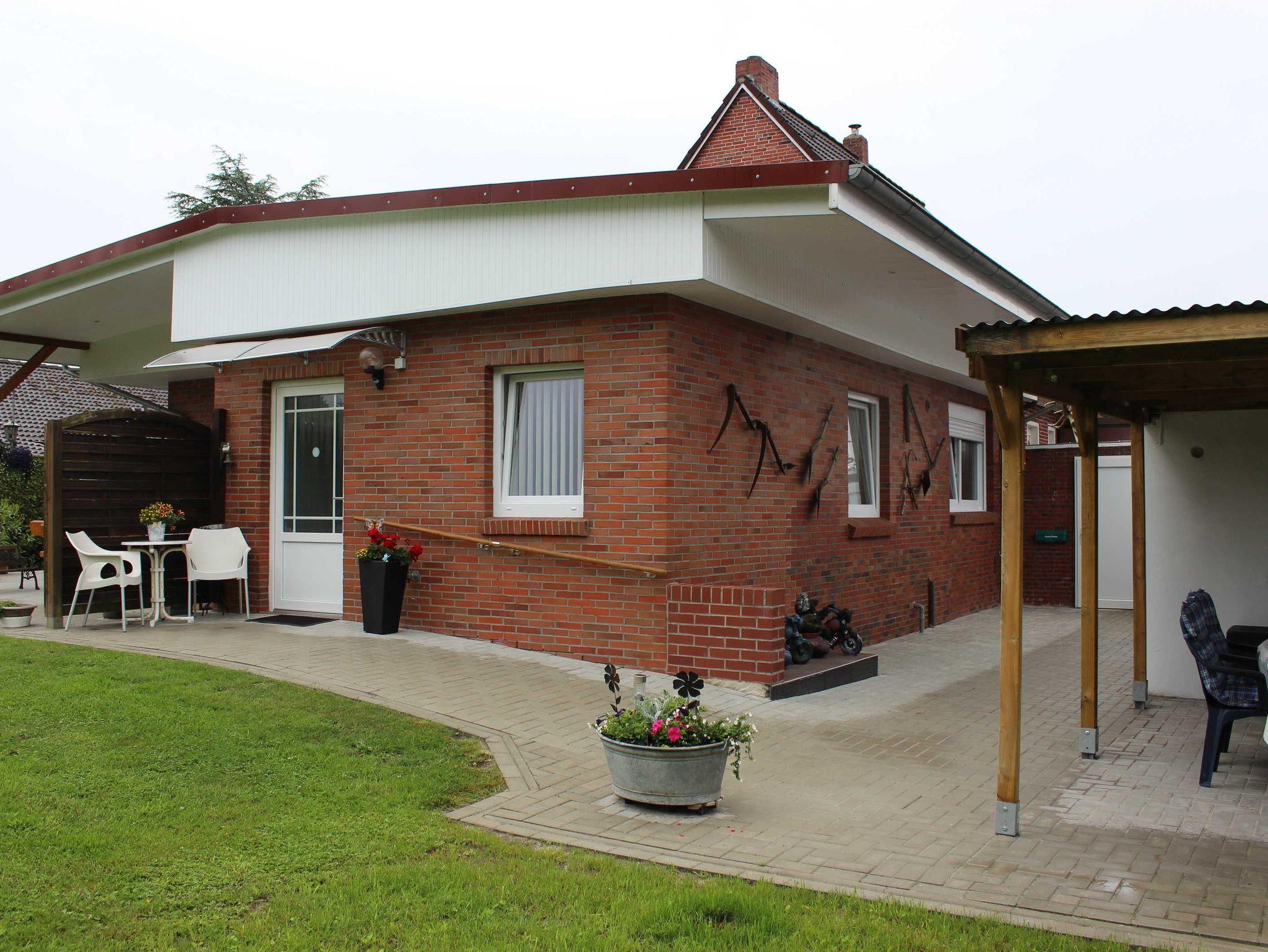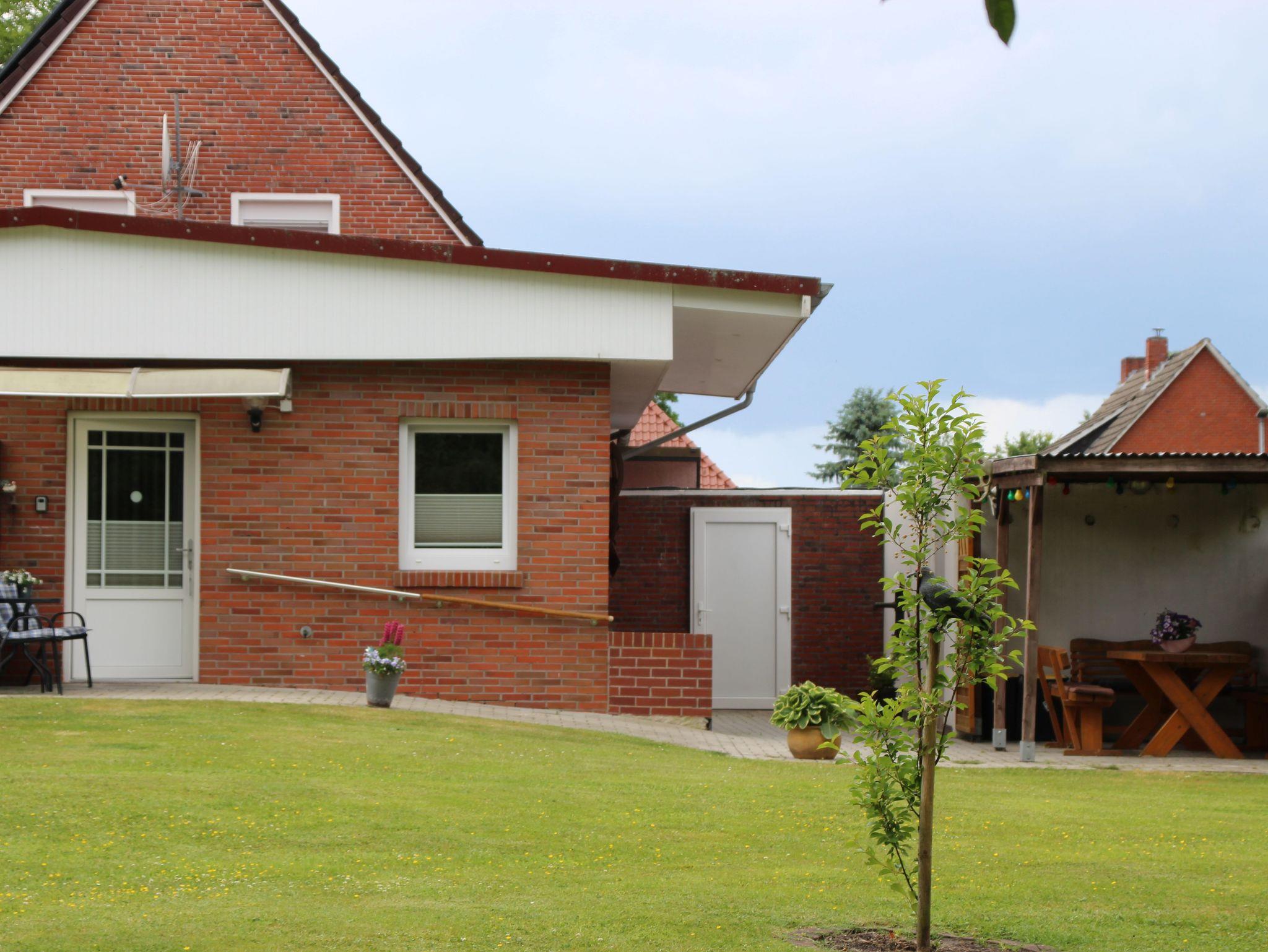 Gemütliche Ferienwohnung in Ostrhauderfehn, Erdgeschoss, Wohnraum mit Einbauküche und Essecke, Sitzecke, SAT-TV, Radio Recorder, 1 Doppelzimmer, 1 Zweibettzimmer, auf Anfrage ein Zustellbett möglich, Bad mit Dusche/Wanne/WC, Terrasse mit Gartenmöbeln, sehr schöner Garten, Grill, Parkplatz am Hause, Bushaltestelle in nächster Nähe, WLan-Anschluss
