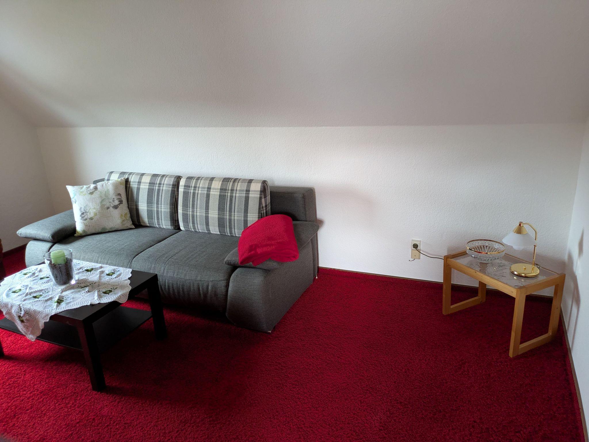 Die Ferienwohnung im Obergeschoss verfügt über ein zwei Bettzimmer. Kinderbett kann gestellt werden. Wohnzimmer mit Schlafcouch und TV.