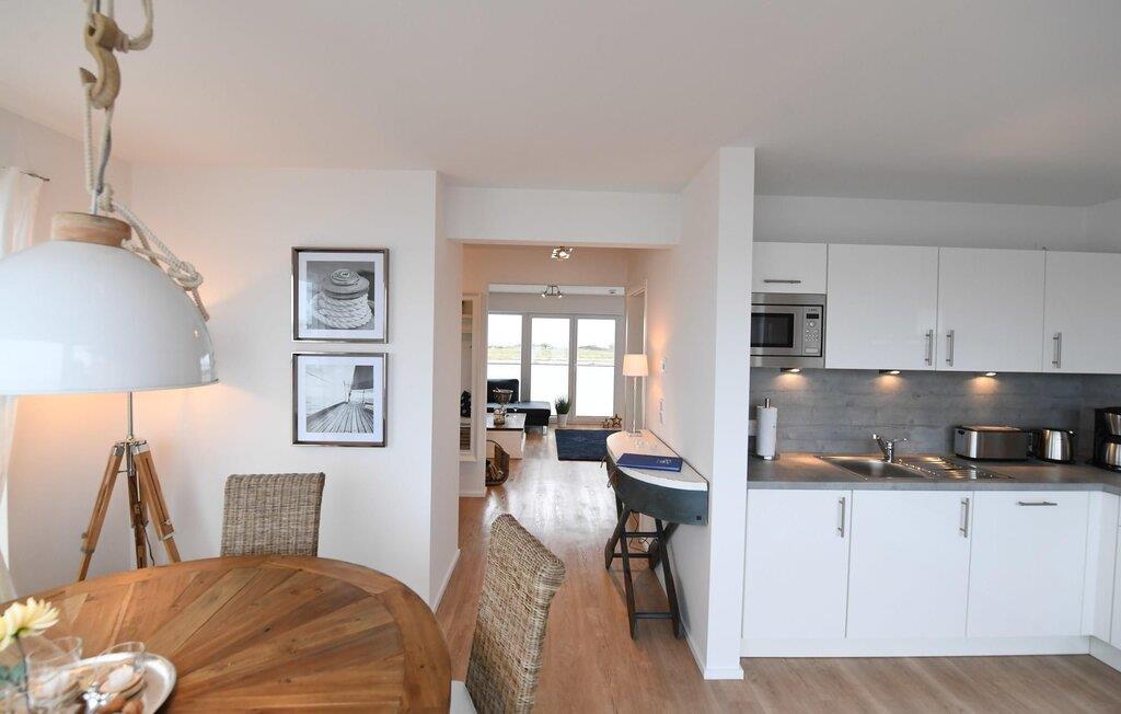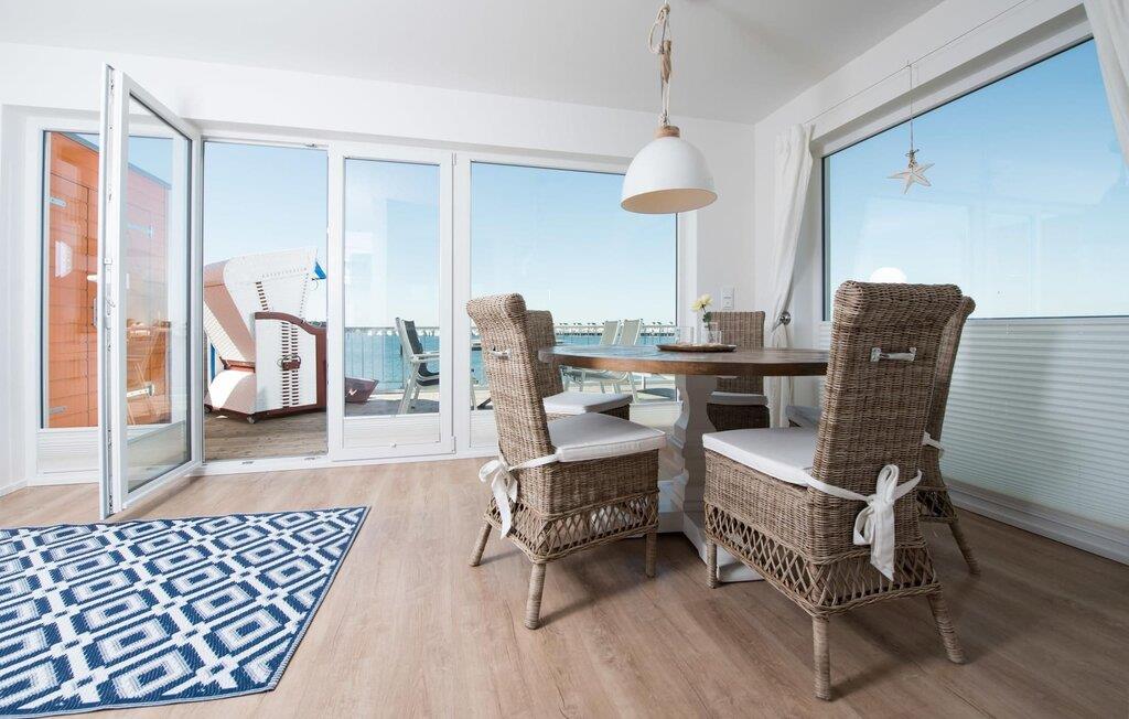 Den direkte vandbeliggenhed, to terrasser med morgen- og aftensol, et privat wellnessområde og den umiddelbare nærhed til Weidefelds sandstrand får feriehjerterne til at banke hurtigere i denne ferieejendom. Havnepromenaden i OstseeResort Olpenitz ligger også i umiddelbar nærhed. Hele ejendommen er udstyret med gulvvarme. Sauna, spabad og pejs lover komfort i hver sæson. Åben og generøst indrettet med højt til loftet strækker ferieejendommen sig over to plan. Opholds-/spiseafdelingen i ferieejendommen på 1. plan er oversvømmet med lys og har panoramavindue fra gulv til loft, der fører til de tilstødende terrasser på begge sider. En fantastisk udsigt åbner op på terrassen ved siden af opholdsstuen med udsigt over sejler- og sportsbådshavnen i OstseeResort Olpenitz. Havnebiografen sørger for underholdning under en hyggelig grillaften eller en romantisk middag i levende lys med fantastiske solnedgange. I mellemtiden sørger tv'et med Telekom Home Entertainment-program for indendørs underholdning. På ferien er der tid til kreativ madlavning, det fuldt udstyrede køkken-alrum lader intet tilbage at ønske. Spis morgenmad i morgensolen ved det store spisebord eller på den tilstødende terrasse, ren feriefølelse. Afslapningsområdet i denne ferieejendom er på andet niveau. Beliggende over tingene åbner soveværelset op for nye perspektiver. Udstyret med en dobbeltseng med boxmadras har dette soveværelse en fantastisk udsigt over havnen, mens ovenlysvinduet giver udsigt til stjernehimlen. Hvem vil sove, når I kan drømme så smukt, mens I er vågen? Det andet soveværelse har to enkeltsenge, der kan skubbes sammen. En femte seng er tilgængelig på den udtrækbare enkeltseng. Begge soveværelser er også udstyret med fladskærms-tv. Det store badeværelse er også på anden stueplan. En infrarød varmekabine til to personer, et hi-fi lydanlæg og LED farvelysterapi samt et stort hjørnespabad med udsigt til vandet får wellnesshjerter til at banke hurtigere. En bruser giver ekstra komfort. Et grønt område omkring huset indbyder til at slappe af, lege og blive hængende. Der er også et brusebad til rådighed på første sal. Der er en privat parkeringsplads og et cykelskur lige foran huset. Ferielejligheden Ostsee Koje er en etagelejlighed på første og anden sal. Vores favoritsted: Nyd en velfortjent sundowner på vandterrassen og bare slap af. Bemærk venligst: OstseeResort Olpenitz er meget populært, og der bygges fortsat i parken. Ikke desto mindre kan I se frem til en 5-stjernet standard og et førsteklasses ophold. Byggeaktiviteterne kommer ikke til at forstyrre jer på ferien, og derfor gives der ikke yderligere afslag i prisen.