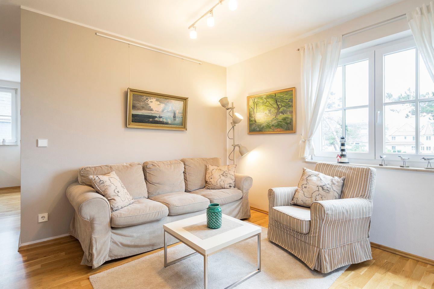 Die Hausanlage mit zwölf Ferienwohnungen liegt nur 150 Meter vom weißen Ostseestrand entfernt und befindet sich direkt an der Bäderstraße L21. Neben der strandnahen Lage ist auch der Ortskern mit Bäckereien und einer Vielzahl von Restaurants, Cafés und Kunstgalerien nur ca. einen Kilometer entfernt. Der angrenzende Deich eignet sich perfekt für Wanderungen oder Radtouren in den Nationalpark, zum Weststrand und entlang der weiten Boddenlandschaft.