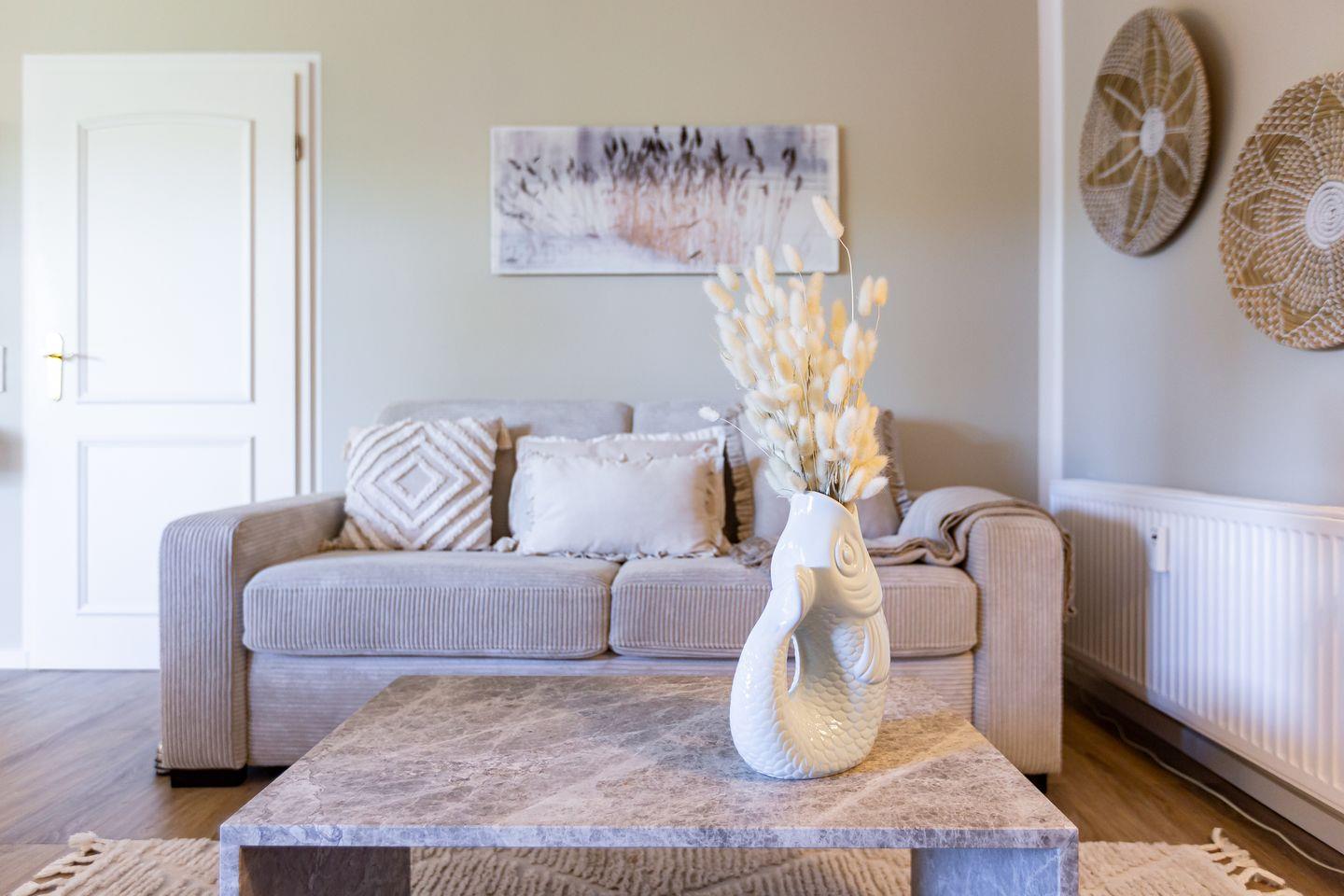 Frisch renoviert und einfach zum Verlieben. In 2025 wurde die Ferienwohnung mit viel Liebe zum Detail neu gestaltet und das sieht man in jedem Winkel. Helle Sand- und Beigetöne treffen auf strahlendes Weiß und holen das Gefühl von Strand, Sonne und Leichtigkeit direkt in dein Urlaubsdomizil. Moderne Möbel aus dem Trendmaterial Stein setzen stilvolle Akzente, ohne dabei an Gemütlichkeit zu verlieren. Die neue Küche lässt keine Wünsche offen, das Bad begeistert mit besonderem Design, und im neuen Boxspringbett schläft es sich wie auf Wolken.