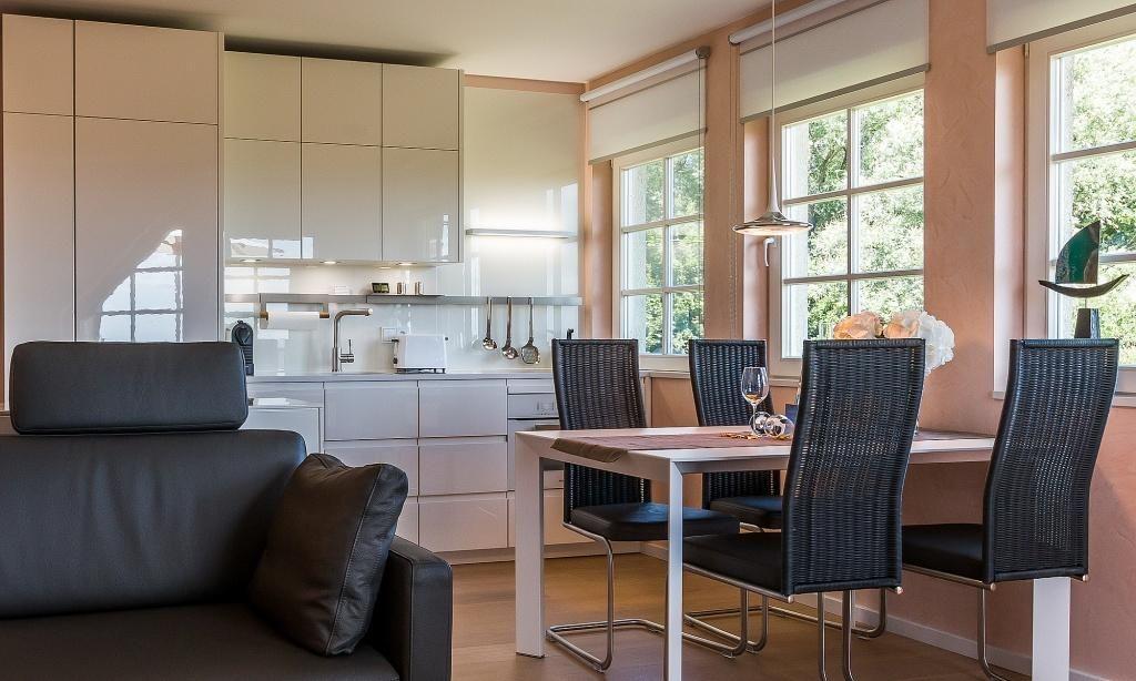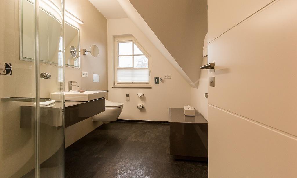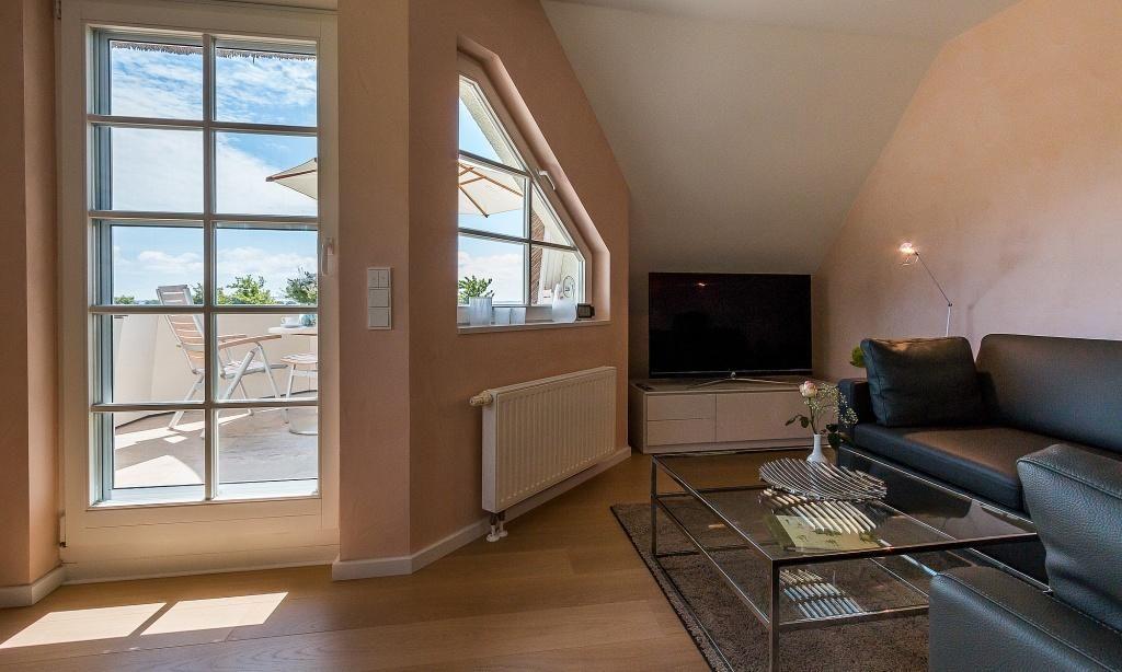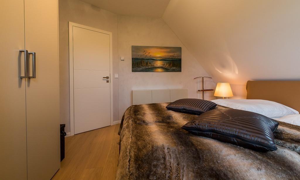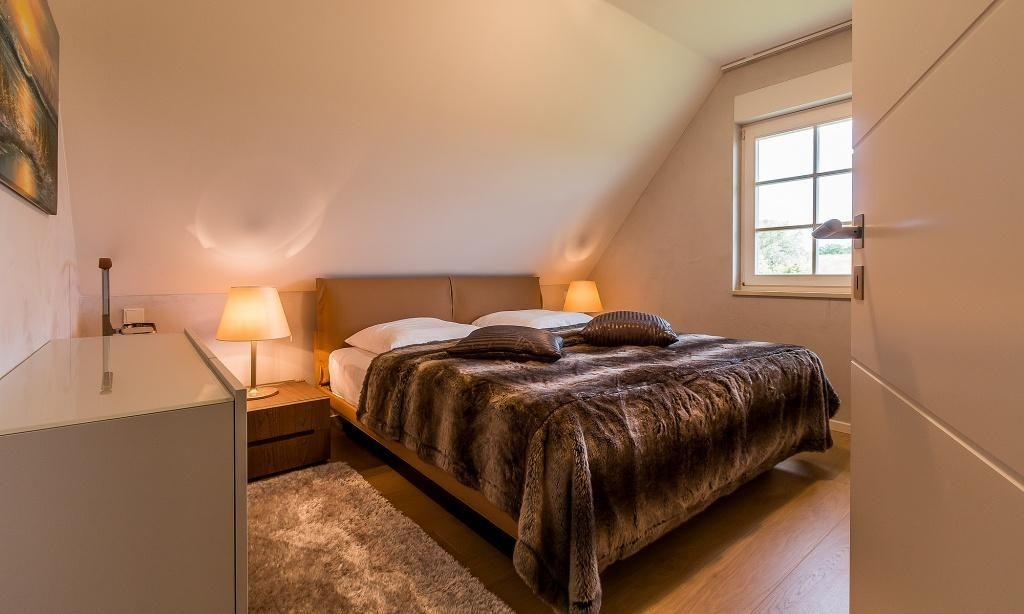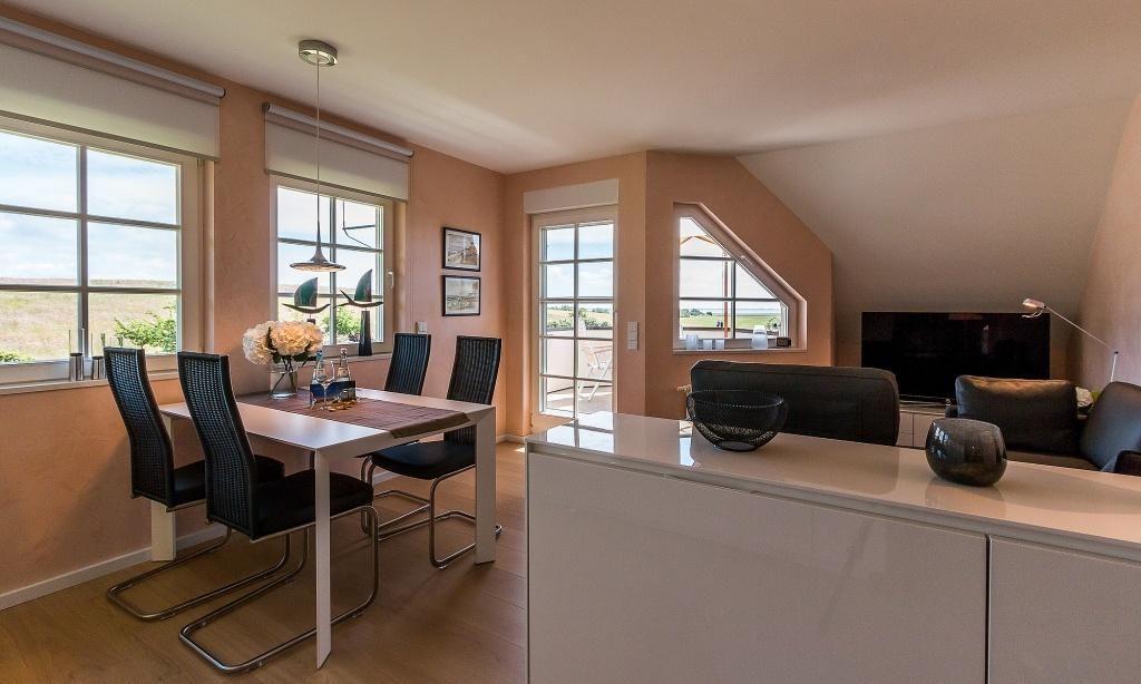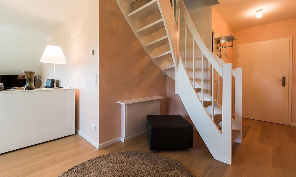 Diese Maisonette-Wohnung liegt im ersten Stock des Ferienhauses, dass mehrere Ferienwohnungseinheiten, wurde in 2015 komplett neu saniert und neu eingerichtet. Die exklusive Einrichtung und Ausstattung sorgt für ein herrliches Wohngefühl, dass mühelos hohen Urlaubsansprüchen gerecht wird. Dafür sorgt schon der offene Wohn- und Küchenbereich mit moderner Sitzecke sowie die voll ausgestatteter Küche mit sonnigem Esstisch. Auf dieser Etage befindet sich auch das in harmonischen Farben eingerichtete Schlafzimmer, dass mit einem Doppelbett und Kleiderschrank ausgestattet ist. Ein weiteres Highlight ist das stylische Tagelichtbad mit Dusche, WC und Bidet. Über eine Treppe gelangst du in das zweite Schlafzimmer, das über zwei Einzelbetten verfügt. Diese können - wie auf den Fotos zu sehen - wahlweise getrennt oder zusammen gestellt werden.