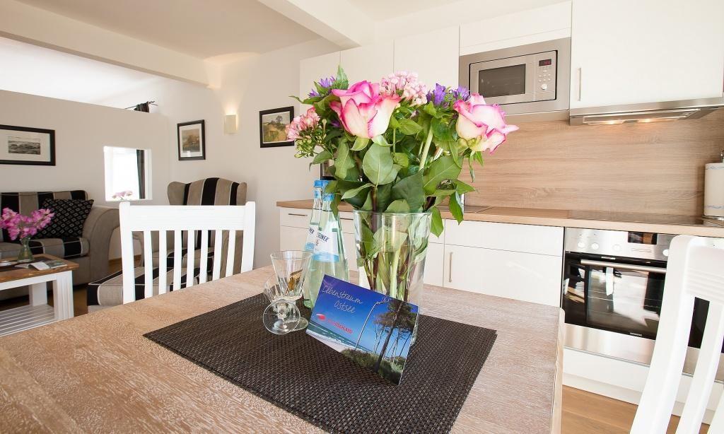 Direkt hinter der Düne befindet sich die Wohnung Nr. 2 in einem Einfamilienhaus mit separatem Eingang. Der feine Ostseestrand ist nur wenige Meter entfernt. Viel dichter am Meer kann man nicht wohnen. Dank der zentralen Lage erreichst du auch die Bäckerei, unzählige Restaurants, die bunte Stube und andere Shoppingmöglichkeiten bequem zu Fuß.