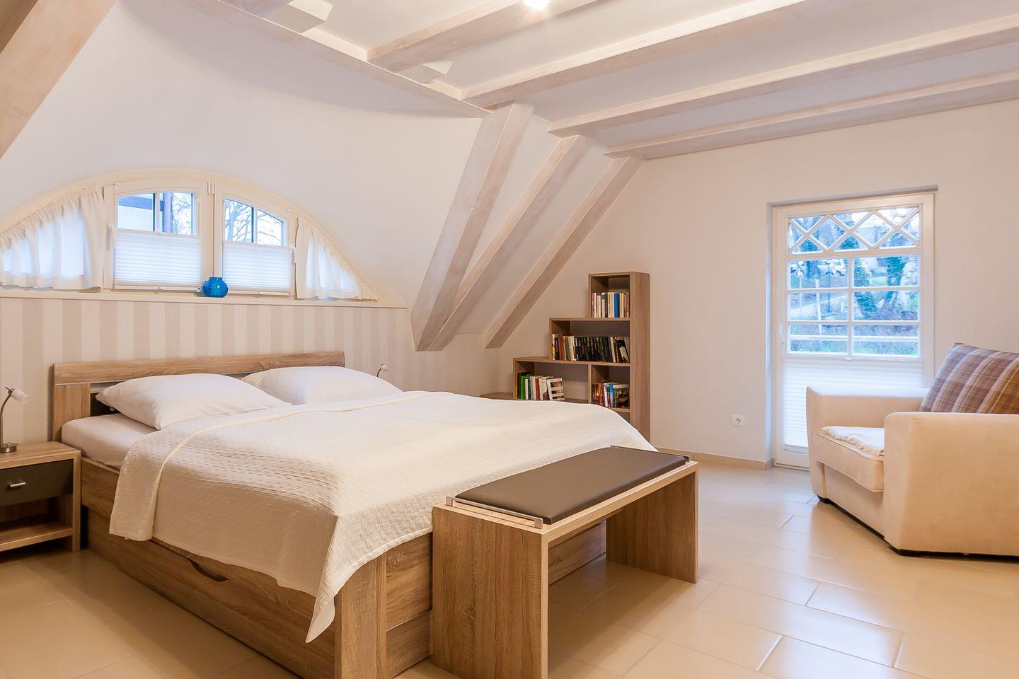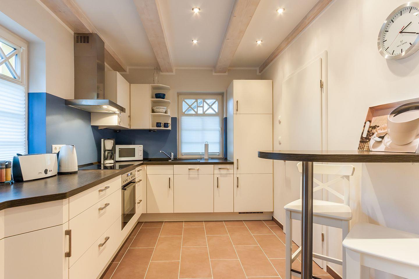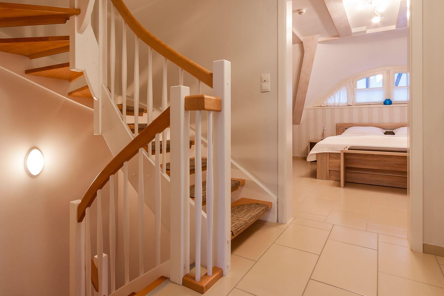 Über den einladenden Eingangsbereich mit Garderobe gelangst du in den weitläufigen und freundlichen Wohnraum. Dieser begeistert vor allem mit seiner gemütlichen Couchlandschaft am Kaminofen und bodentiefen Fenstern. Die offene Küchenzeile und der große Esstisch fügen sich harmonisch in den Wohnbereich ein und bilden den Mittelpunkt des Hauses. Ebenfalls in der unteren Etage befindet sich ein Gäste-Bad mit Dusche/WC. Ins Obergeschoss gelangst du über die wertige Echtholztreppe. Dort erwarten dich zwei große Schlafzimmer, die jeweils mit einem Doppelbett ausgestattet sind. Eines der Schlafzimmer verfügt über einen zusätzlichen TV und über einen Balkon mit West-Ausrichtung und einem tollen Blick auf die Ostsee. Freue dich schon jetzt auf unvergessliche Sonnenuntergänge. Ein weiteres Badezimmer mit Badewanne und WC befindet sich ebenfalls auf dieser Etage. Das Dachgeschoss beherbergt ein drittes Schlafzimmer mit einem kleinen Doppelbett, einer Couch sowie einer Spielecke. Im Keller des Hauses erwartet dich ein weiteres Highlight. Neben einem Hauswirtschaftsraum befinden sich hier eine kleine Wellnessoase mit Sauna, Dusche und Ruhebereich sowie ein Hobbyraum mit einer Tischtennisplatte. Somit steht einem traumhaften Urlaub nichts mehr im Wege.