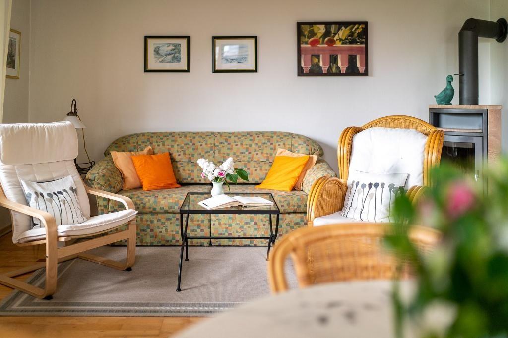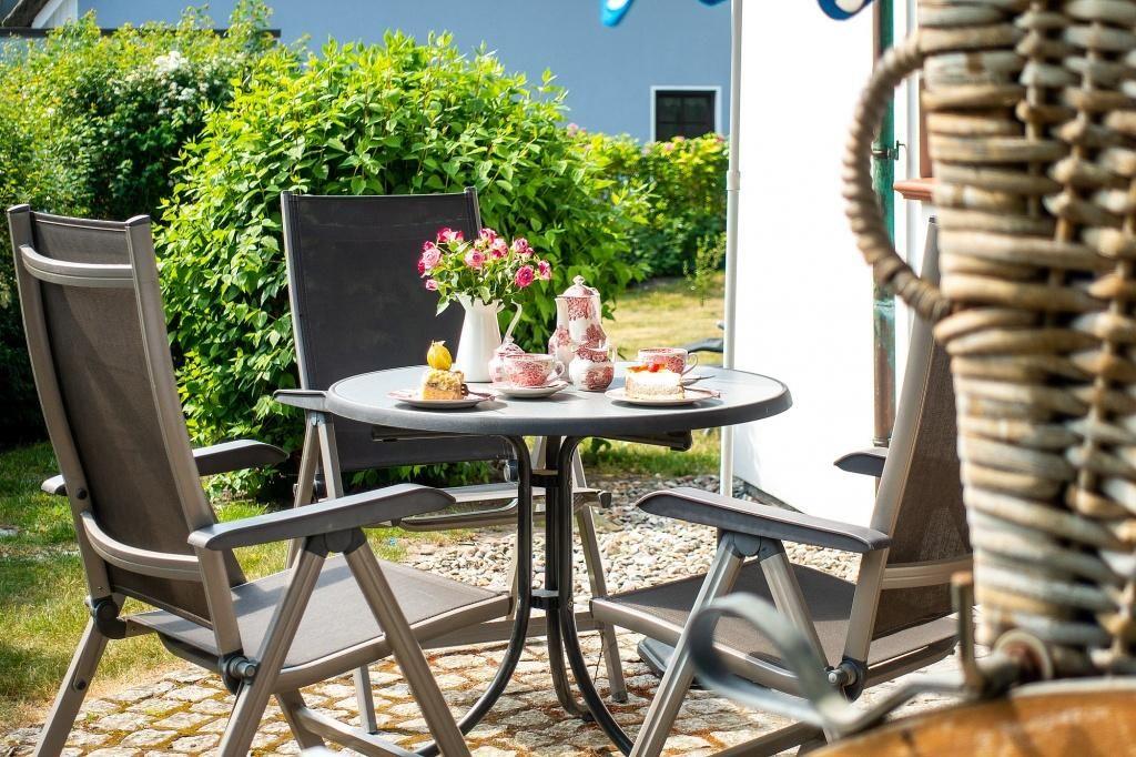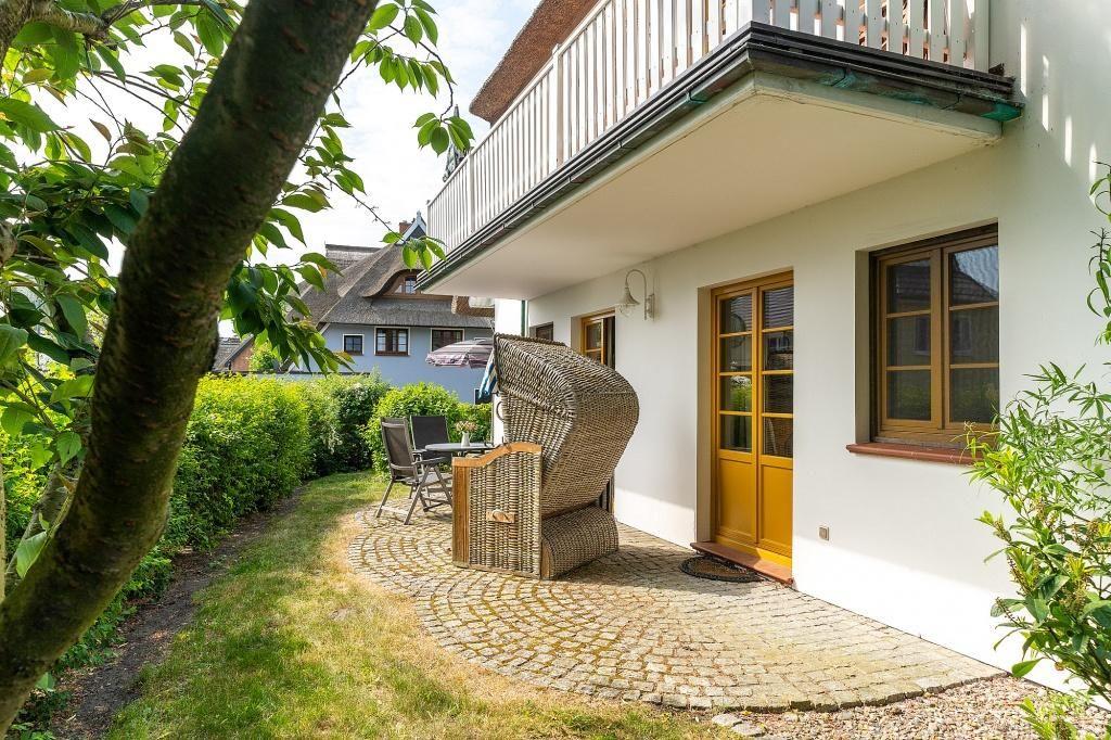 In dem kleinen Garten steht ein Strandkorb für dich bereit, in dem du den Tag entspannt ausklingen lassen kannst. 1 Pkw-Stellplatz hinter dem Haus gehört zur Ferienwohnung dazu.