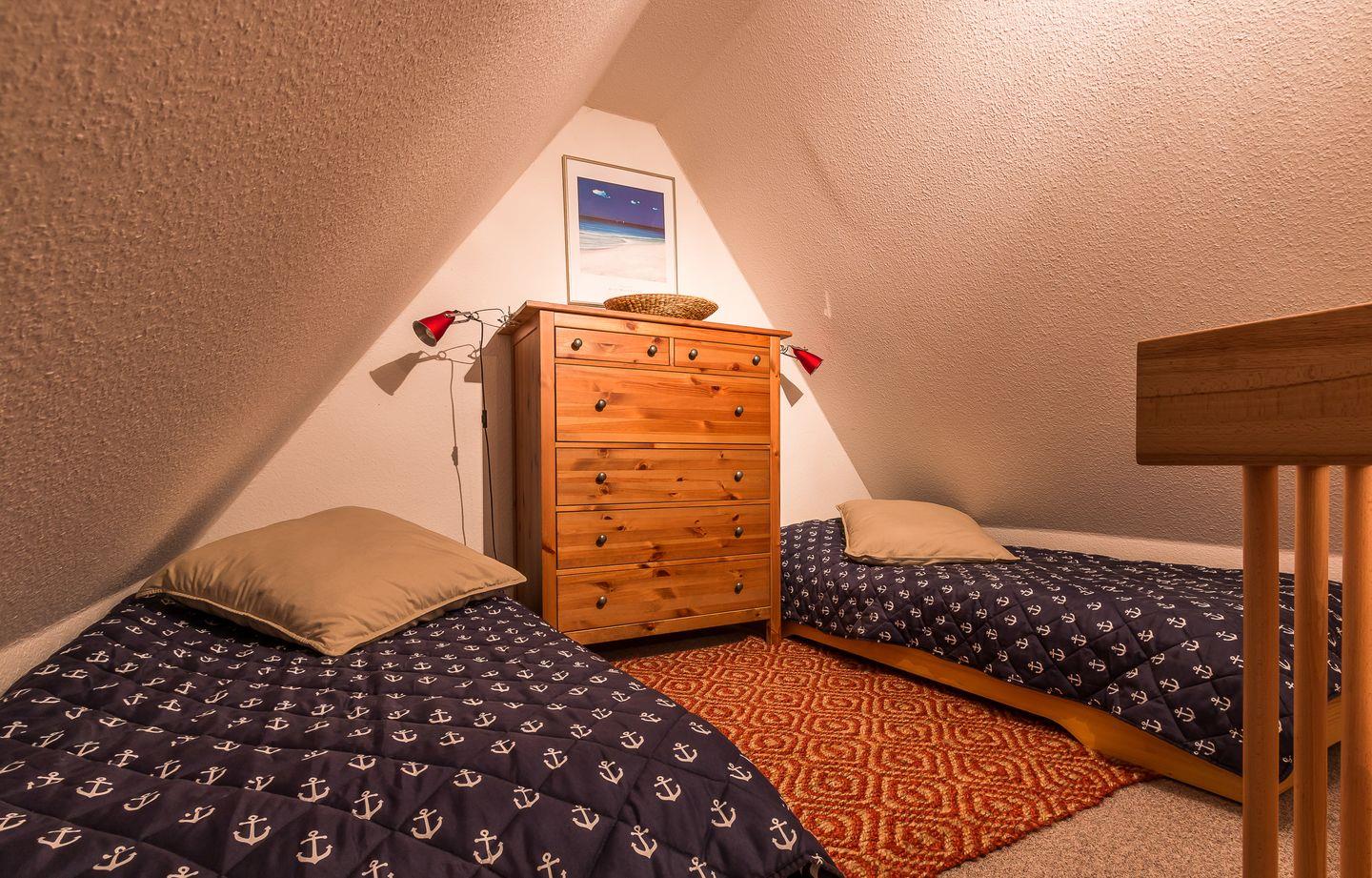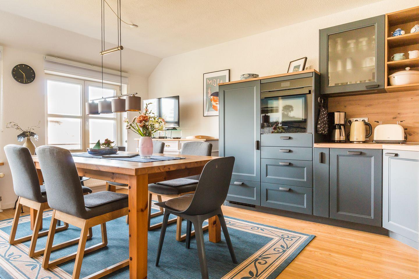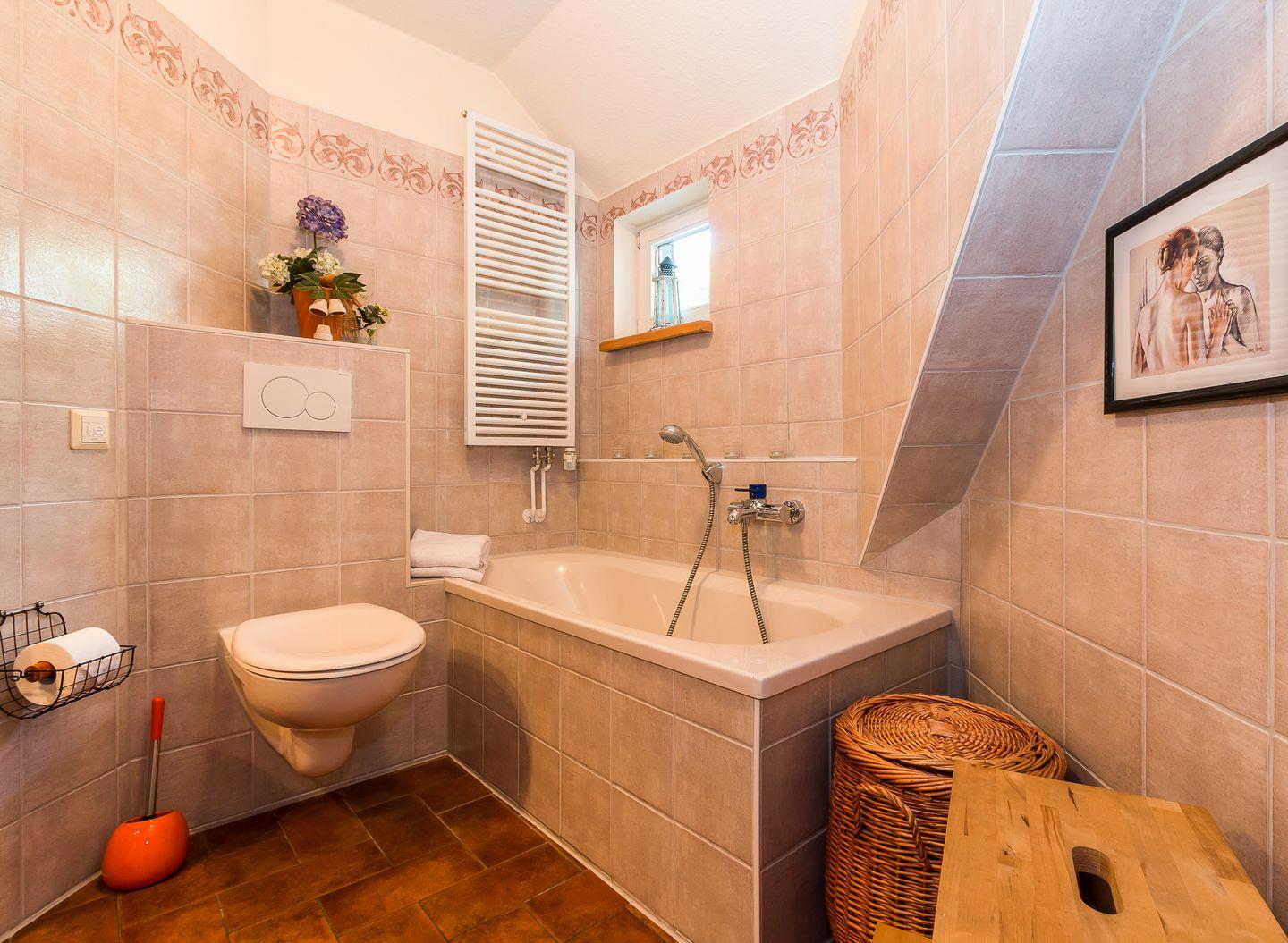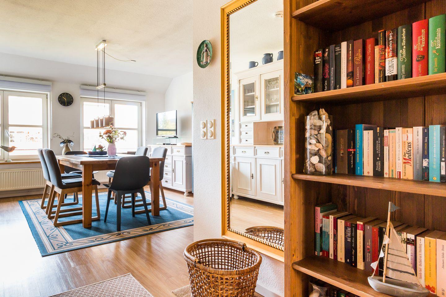 Im ersten Obergeschoss befindet sich ein liebevoll eingerichtete Maisonette-Ferienwohnung. Der Wohnraum mit einer gemütlichen Sitzecke sowie eine Wohnküche mit großem Esstisch ist Mittelpunkt der Unterkunft. Weiterhin findet ein Bad mit Dusche/WC in dieser Etage Platz. Das zweite Obergeschoss verfügt über ein Schlafzimmer mit einem Doppelbett sowie ein Schlafzimmer mit einem französischen Doppelbett. Weiterhin gibt es ein zweites Bad mit Wanne/WC und Waschmaschine. Das Dachgeschoss (über eine steile Treppe zu erreichen) ist zu einer offenen Galerie ausgebaut und bietet zwei zusätzliche Schlafmöglichkeiten.