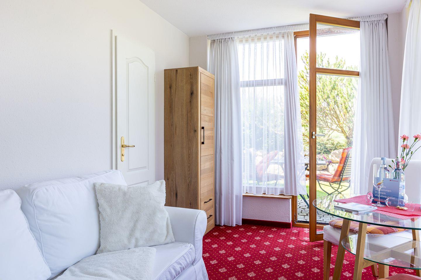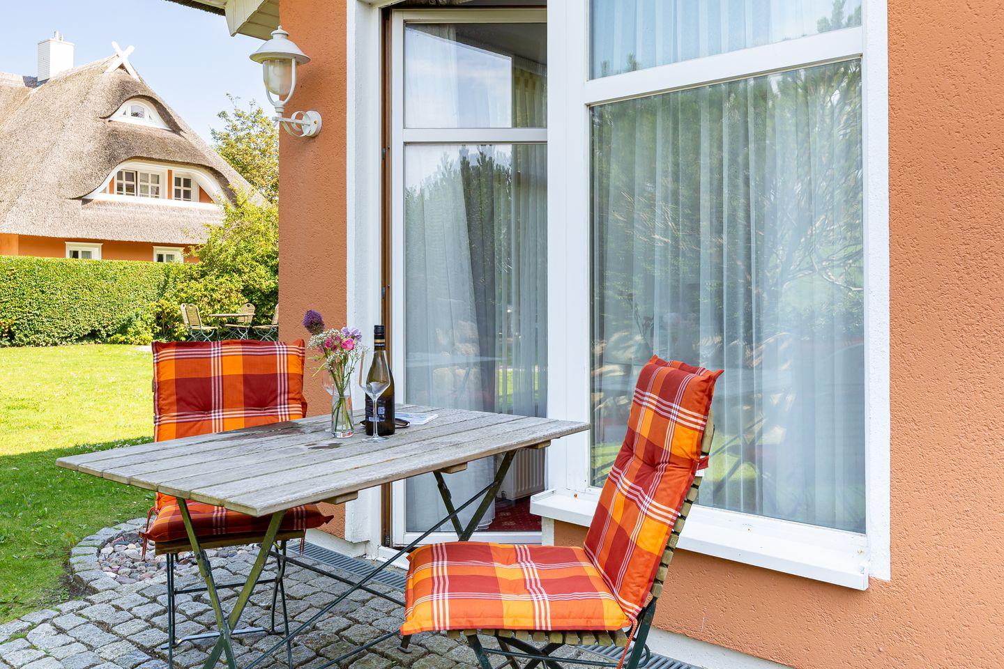 Eine kleine Sonnenterrasse mit West-Ausrichtung gehört ebenfalls zur Ausstattung und begeistert mit einem tollen Blick auf die Dünen. Hier kannst du bei Meeresrauschen und traumhaften Sonnenuntergängen deinen Urlaub genießen. Ein PKW-Stellplatz gehört zur Ferienwohnung dazu.