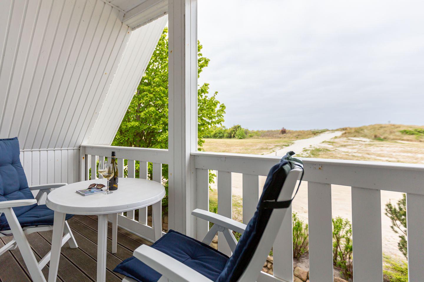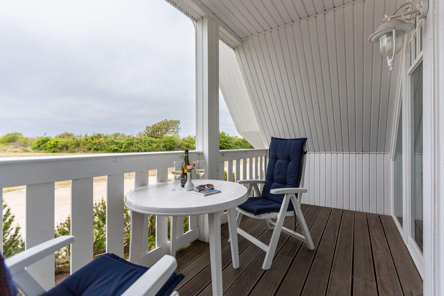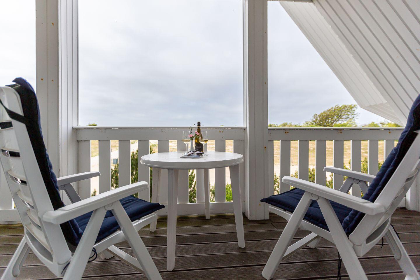 Ein kleiner Balkon mit West-Ausrichtung gehört ebenfalls zur Ausstattung und begeistert mit einem tollen Blick auf die Dünen. Hier kannst du bei Meeresrauschen und traumhaften Sonnenuntergängen deinen Urlaub genießen. Ein PKW-Stellplatz gehört zur Ferienwohnung dazu.