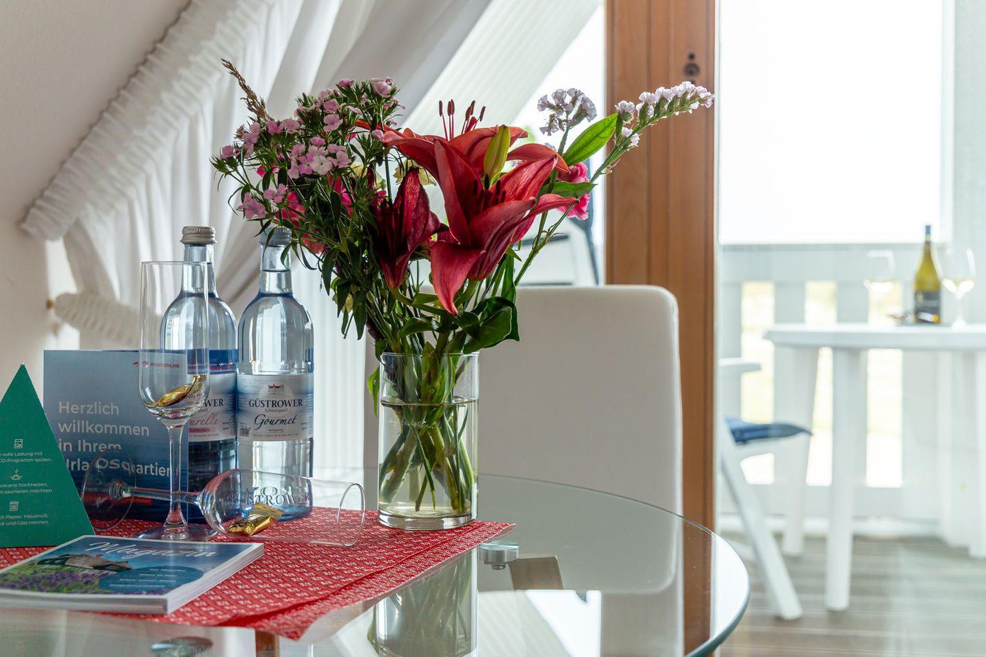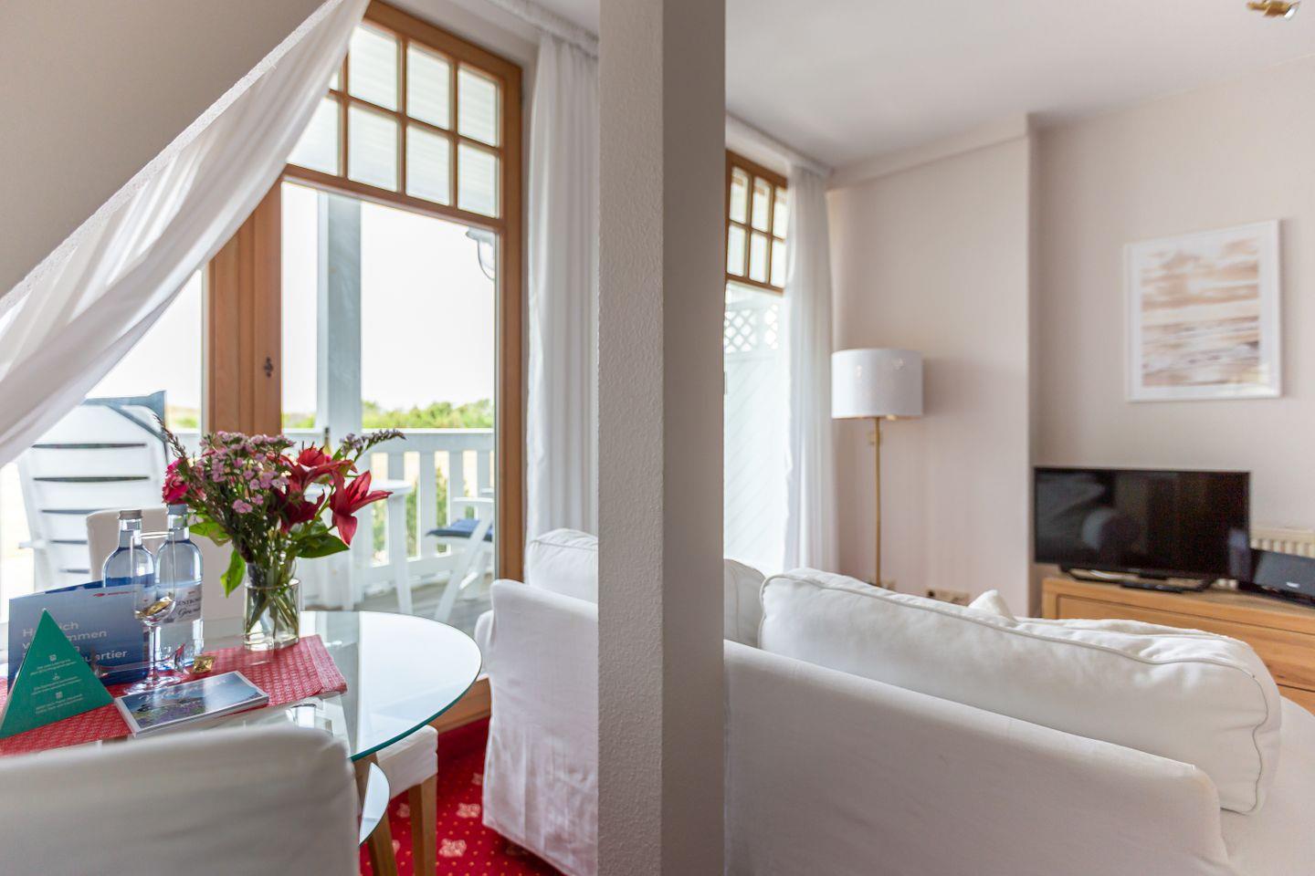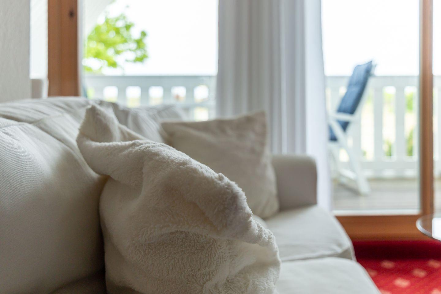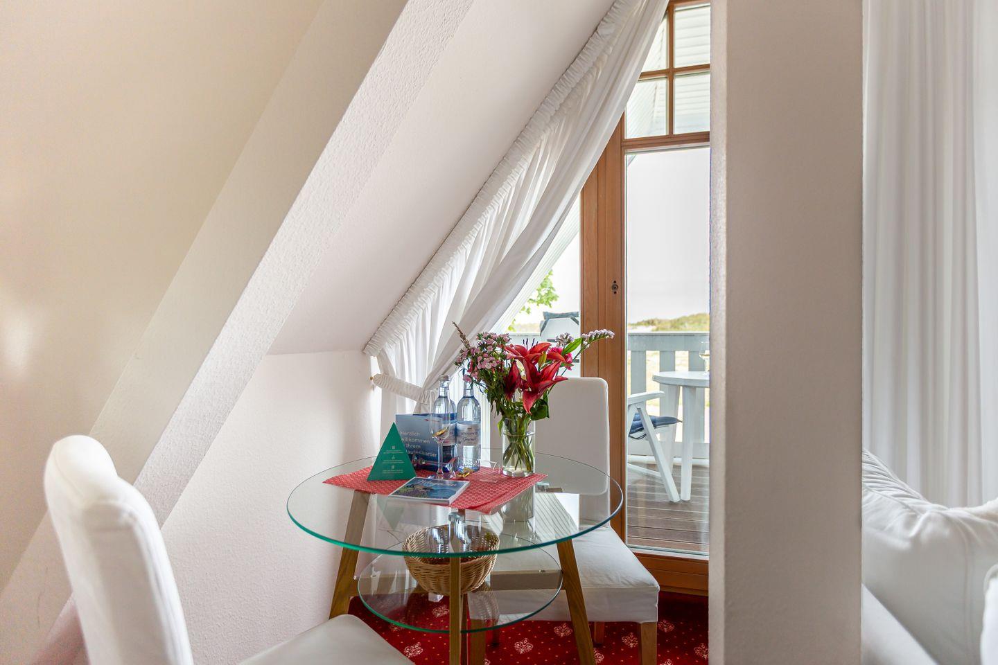 Ein kleiner Balkon mit West-Ausrichtung gehört ebenfalls zur Ausstattung und begeistert mit einem tollen Blick auf die Dünen. Hier kannst du bei Meeresrauschen und traumhaften Sonnenuntergängen deinen Urlaub genießen. Ein PKW-Stellplatz gehört zur Ferienwohnung dazu.