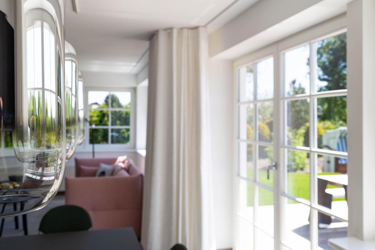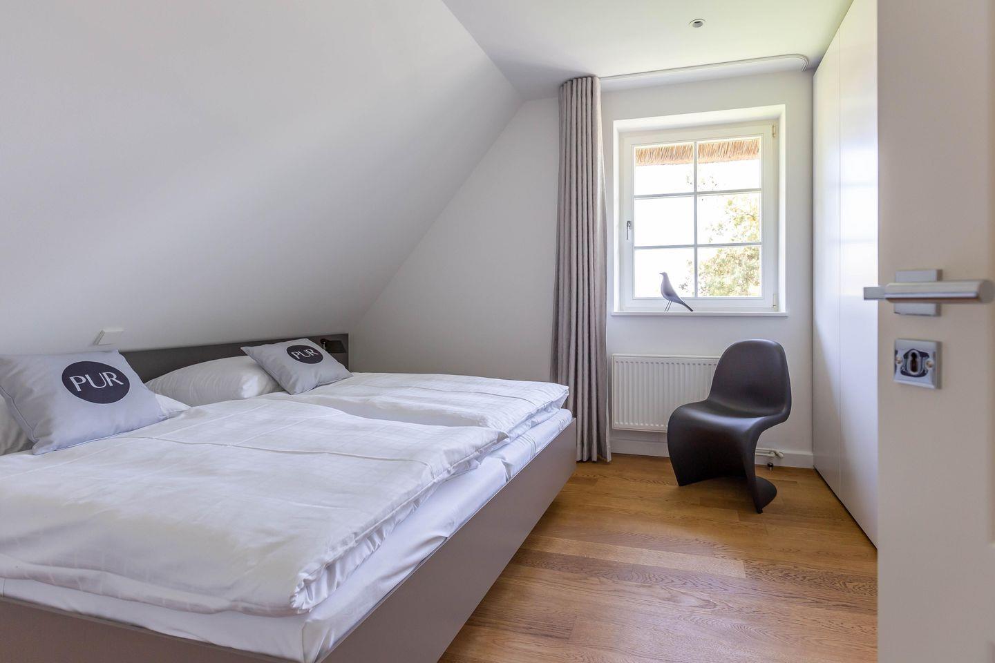 Die traumhafte Doppelhaushälfte unter Reet wurde in 2021 aufwendig saniert. Während die Außenansicht für das Fischland charakteristisch maritim gehalten ist - folgt PUR A6 im Innenbereich dem modernen PUR-Stilkonzept mit klarem, puristischem und zeitlosem Design. Der offen gestaltete Wohnraum vereint Küche, Esstisch und Sofa zum zentralen Treffpunkt. Das ausgesuchte Interieur verschmilzt geradezu mit dem Wohnraum – unaufdringlich wirkt jedes Möbelstück für sich und schafft damit eine besondere Wohnatmosphäre. Vom Wohnbereich genießt du zudem einen wundervollen Blick ins Grüne, der bis zum Bodden reicht. Puristisch mit viel Raum zum Aufatmen und Erholen sind auch die drei Schlafzimmer des Ferienhauses gestaltet. Hier kannst du in komfortable Betten und damit wohltuenden Schlaf versinken. Weiteren Wohnkomfort bieten die zwei modernen Badezimmer - ebenfalls ausgestattet mit Rainshower-Dusche und Designer-Badelementen. Der Wellnessbereich mit Sauna ist das i-Tüpfelchen dieses ästhetischen Ferienhauses, dass dir einen individuellen und gelungenen Urlaub garantiert.