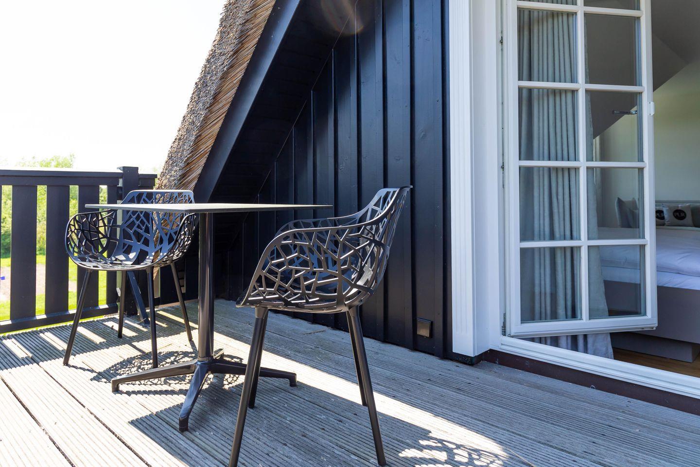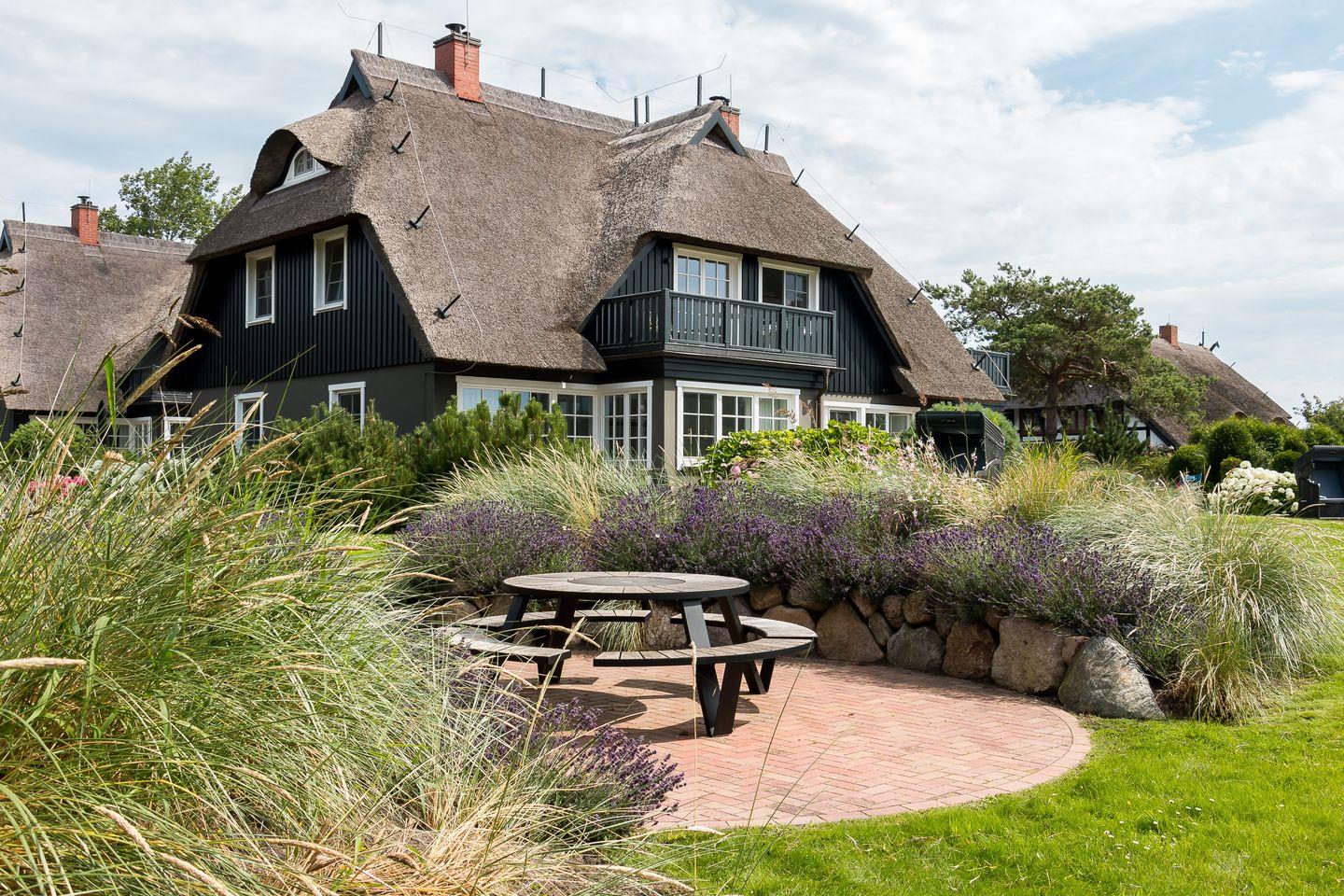 Die großzügige Terrasse mit Blick über weiten Wiesen bis zum Bodden sorgt für das besondere Urlaubsfeeling unter freiem Himmel. Dank der aufwendig gestalteten Gartenarchitektur ist deine Privatsphäre sicher, so dass du dich auch im Außenbereich vollends entspannen kannst. Dir stehen zudem zwei PKW-Stellplätze und ein gemeinschaftlich genutzter Grillplatz im hinteren Bereich des weitläufigen Gartens zur Verfügung.