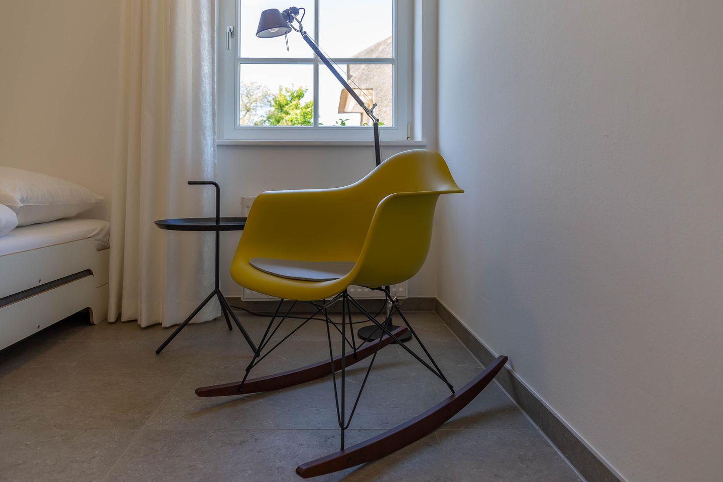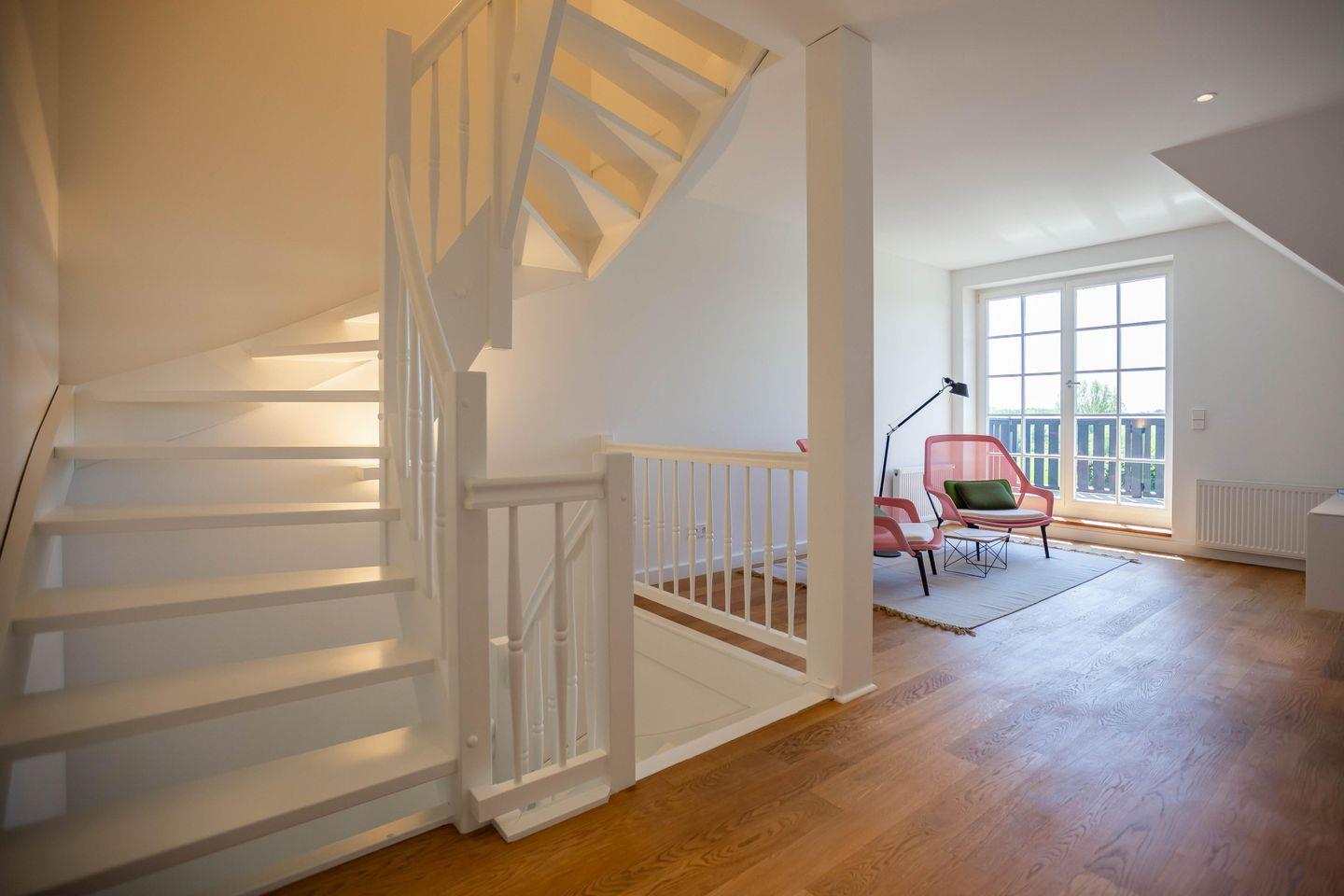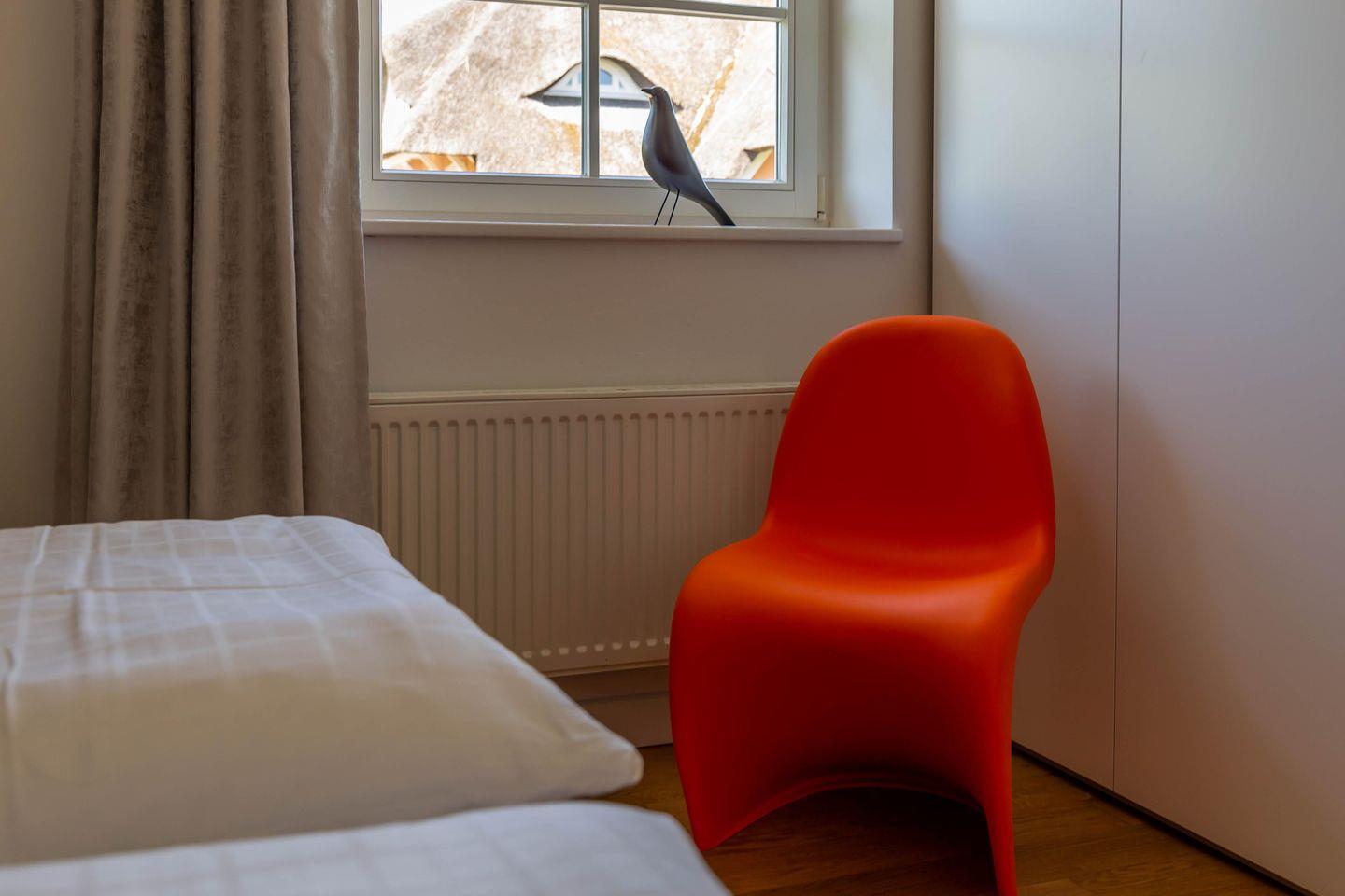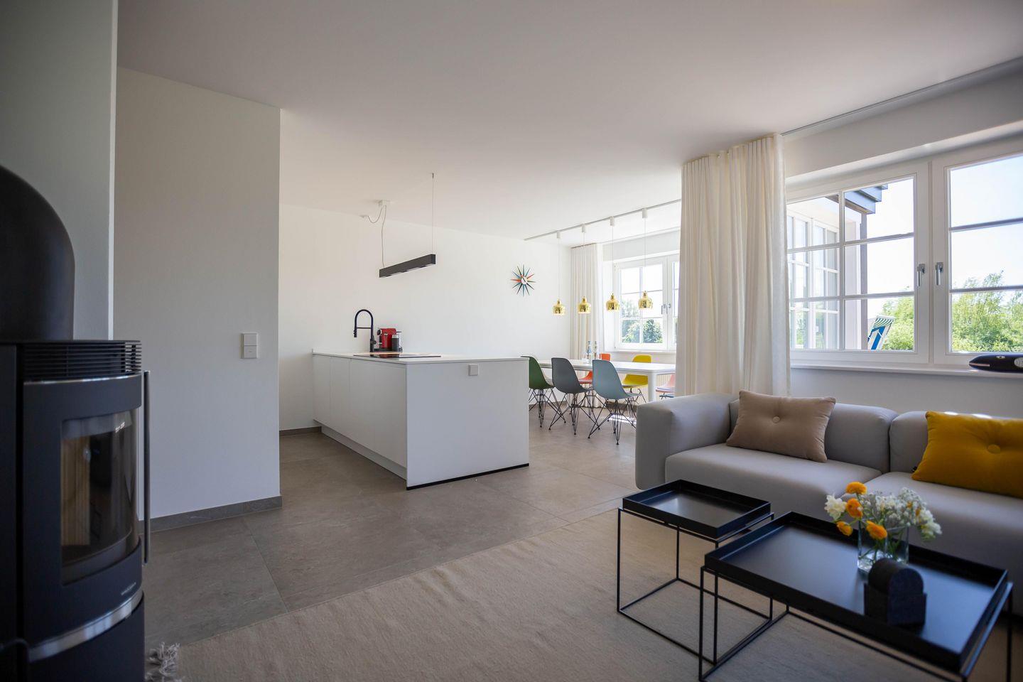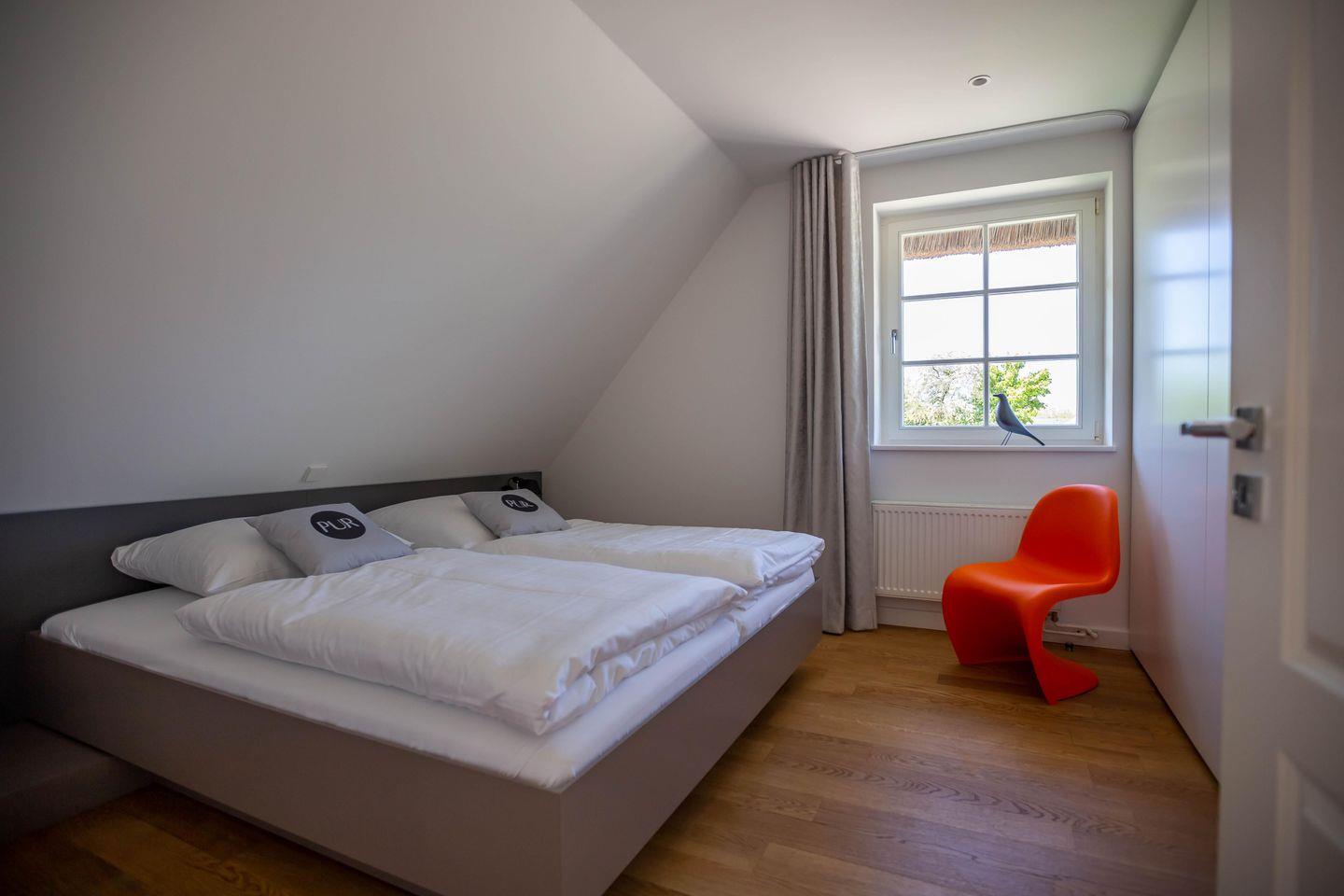 Die traumhafte Doppelhaushälfte unter Reet wurde in 2021 aufwendig saniert. Während die Außenansicht für das Fischland charakteristisch maritim gehalten ist - folgt PUR A7 im Innenbereich dem modernen PUR-Stilkonzept mit klarem, puristischem und zeitlosem Design. Der offen gestaltete Wohnraum kombiniert Küche, Esstisch und Big-Sofa zu einem modernen Treffpunkt für Familie und Freunde. Ausgesuchte Möbelstücke und farbliche Akzente schaffen auch in diesem PUR-Ferienhaus wieder einen gelungenen Mix aus Stil und Wohlgefühl. Hygge wird es trotz zurückhaltender Einrichtung auch in den vier Schlafzimmern des Hauses. Die komfortablen Betten bieten einen optimalen Schlaf. Gemeinsam mit der hochwertigen Einrichtung und teilweise wunderschönem Boddenblick wurden hier im wahrsten Sinne traumhafte Räume der Ruhe geschaffen. Abgerundet wird der Wohnkomfort durch zwei edle Badezimmer mit Rainshower-Dusche und Designer-Badelementen. Es ist eben das PUR-Gefühl, dass du in jeden Raum dieses besonderen Ferienhauses spürst und dass dir einen ästhetischen und anspruchsvollen Urlaub garantiert.