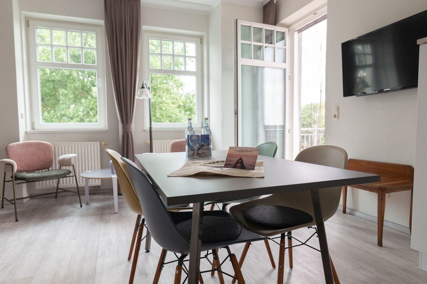 In den Häusern Muschel und Strandläufer gibt es noch 8 weitere Ferienwohnungen, die gern für Familien und Gruppen zusammen gebucht werden können. Des Weiteren befindet sich ein Restaurant im Haupthaus.