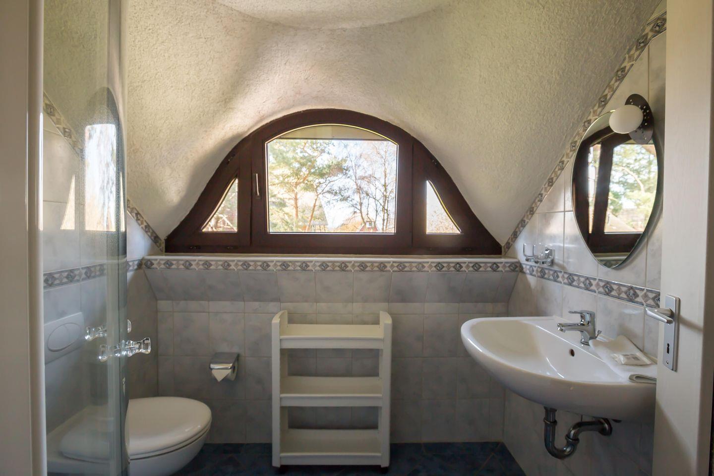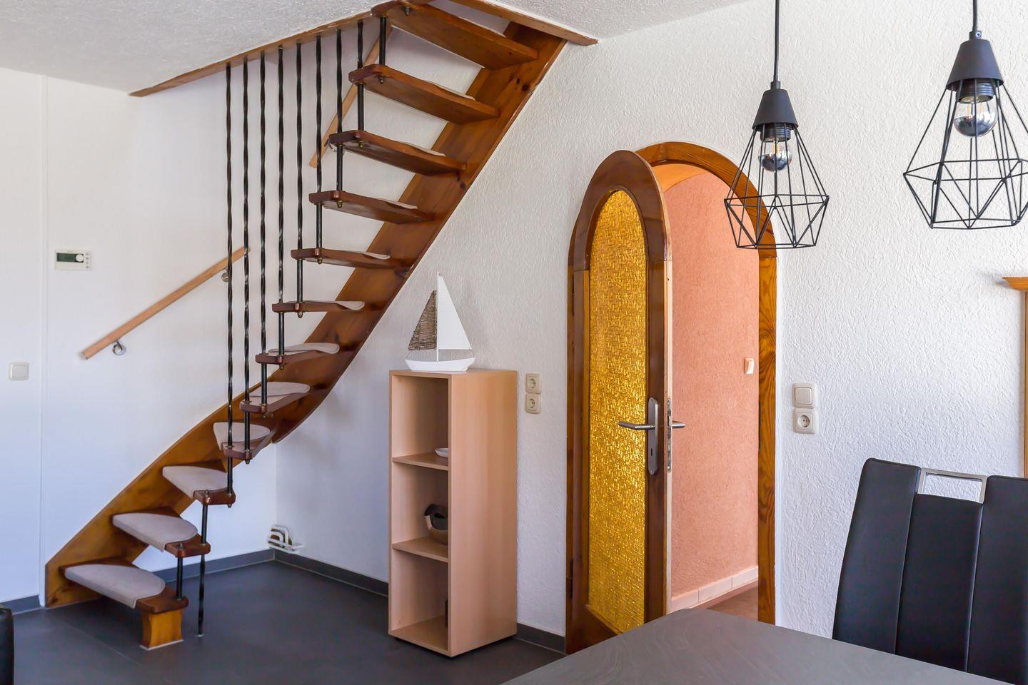 Mittelpunkt des Hauses ist das lichtdurchflutete Wohnzimmer mit Zugang zur Terrasse, großen Fensterfronten, Esstisch und gemütlicher Couch, die bei Bedarf eine zusätzliche Aufbettung für eine fünfte Person bietet. Die vollausgestattete Küche befindet sich eine Tür weiter. Hier findest du alles, was du zum Kochen brauchst. Selbst eine Durchreiche zum Wohnzimmer gibt es. Wir finden’s charmant, wie den Rest vom Ferienhaus. Ein erstes Badezimmer mit Dusche und WC betrittst du vom Flur im Erdgeschoss. Über eine Treppe im Wohnbereich gelangst du zu den beiden Schlafzimmern des Hauses. Ausgestattet mit gemütlichen Doppelbetten und Stauraum für die Sachen bekommst du hier garantiert den erholsamen Schlaf, den man sich im Urlaub wünscht. Abgerundet wird der Wohnkomfort durch ein zweites Tageslichtbad mit Dusche und WC.