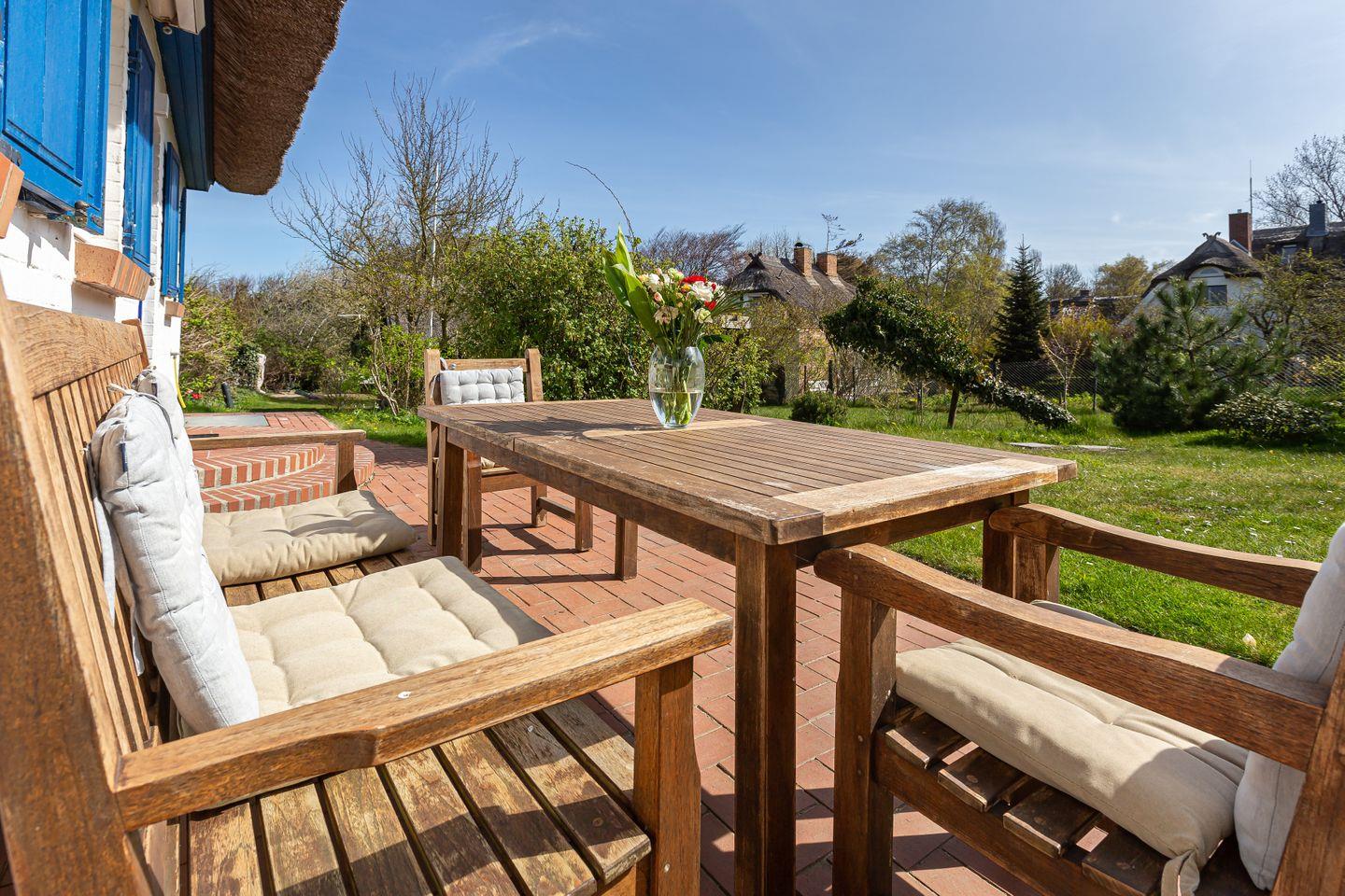 Im Außenbereich steht dir ein wundervoller Naturgarten zur Verfügung. Dank dem großen Grundstück und den heimischen Sträuchern und Pflanzen genießt du hier zu einhundert Prozent Privatsphäre. Mit Grillplatz, Terrasse und Sonnenliegen kannst du hier ebenso schön relaxen wie am nahegelegen Strand. Dir stehen zudem Fahrradstellplätze und 2 PKW Stellplätze zur Verfügung.
