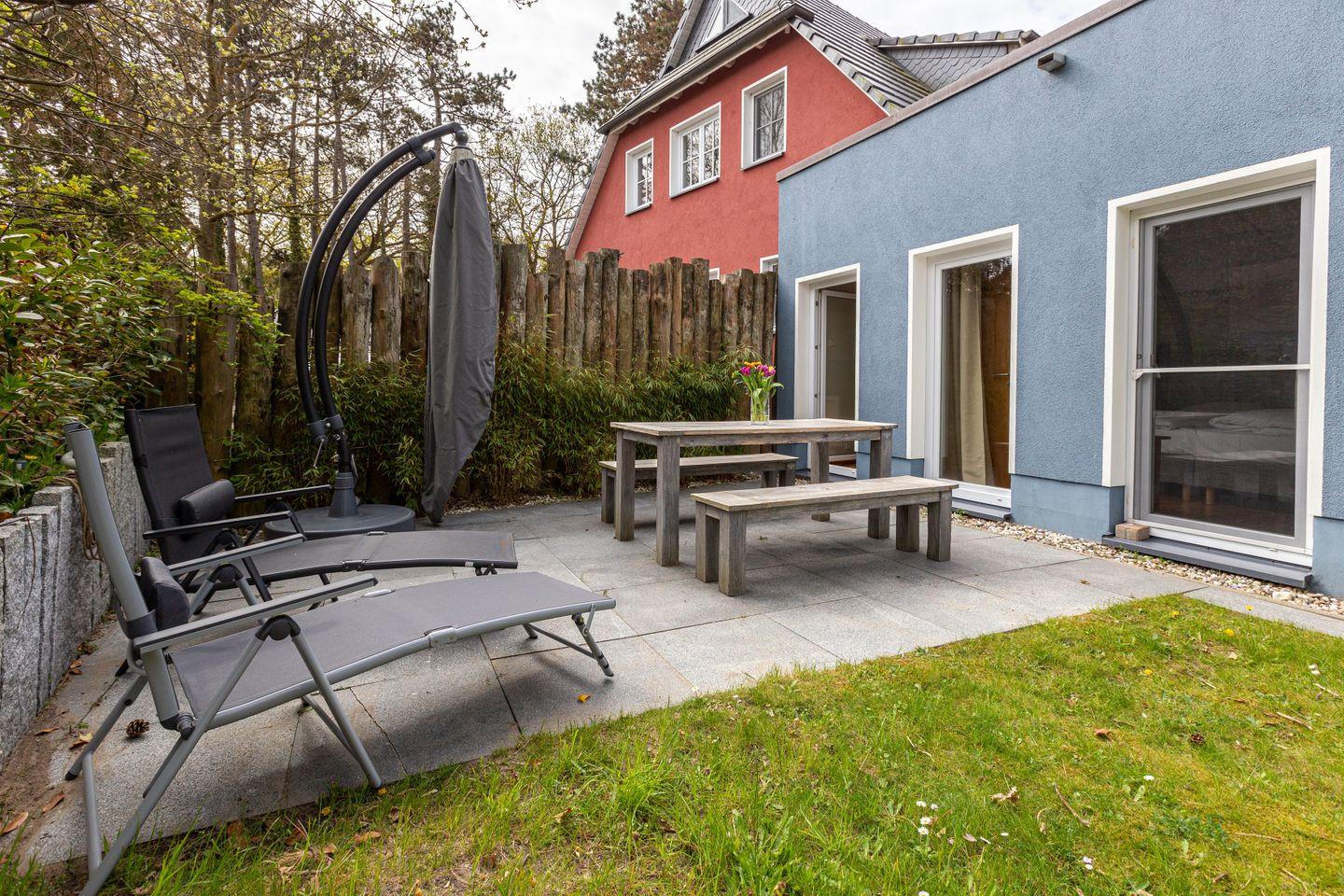 Das Herzstück des Hauses bildet künftig ein großer, offener Wohnbereich, kombiniert mit einer neuen, voll ausgestatteten Küche. Hier entsteht ein heller, einladender Ort für gemeinsame Mahlzeiten, gesellige Abende und Urlaubsmomente voller Leichtigkeit. Die Terrasse erweitert den Wohnraum nach draußen – perfekt für ein Frühstück in der Morgensonne oder entspannte Stunden an der frischen Ostseeluft.