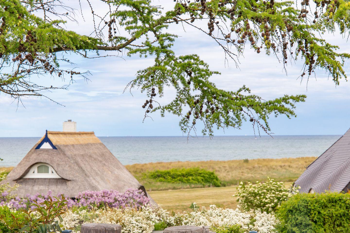 Dieses kleine und charmante Ferienhaus steht für einen unvergesslichen Aufenthalt an der Küste. Hier findest du alles, was du für einen entspannten Urlaub brauchst. Der Wohn- und Küchenbereich begrüßt dich mit einem warmen Mix aus Stil und Gemütlichkeit. Hochwertige Möbel und liebevoll ausgesuchte Dekoration schaffen zudem eine warme Atmosphäre, in der du dich sofort wie zuhause fühlst. Ein kleines Highlight ist der Essbereich mit seinem spektakulären Ausblick auf die Ostsee. Hier schmecken die Mahlzeiten gleich doppelt so gut, die zuvor in der voll ausgestatteten Küchenzeile zubereiten wurden. Das versprechen wir! Mit dem gemütlichen Ecksofa und TV ist der Wohnbereich der perfekte Ort, um sich nach einem Strandtag zu entspannen. Ruhe und Privatsphäre für eine erholsame Nachtruhe verspricht auch das Schlafzimmer. Hier kannst du dich ins Bett kuscheln und den Tag Revue passieren lassen. Das angrenzende Badezimmer mit Tageslicht ist modern und komfortabel eingerichtet und bietet alles, was du für dein tägliches Wohlbefinden benötigst.