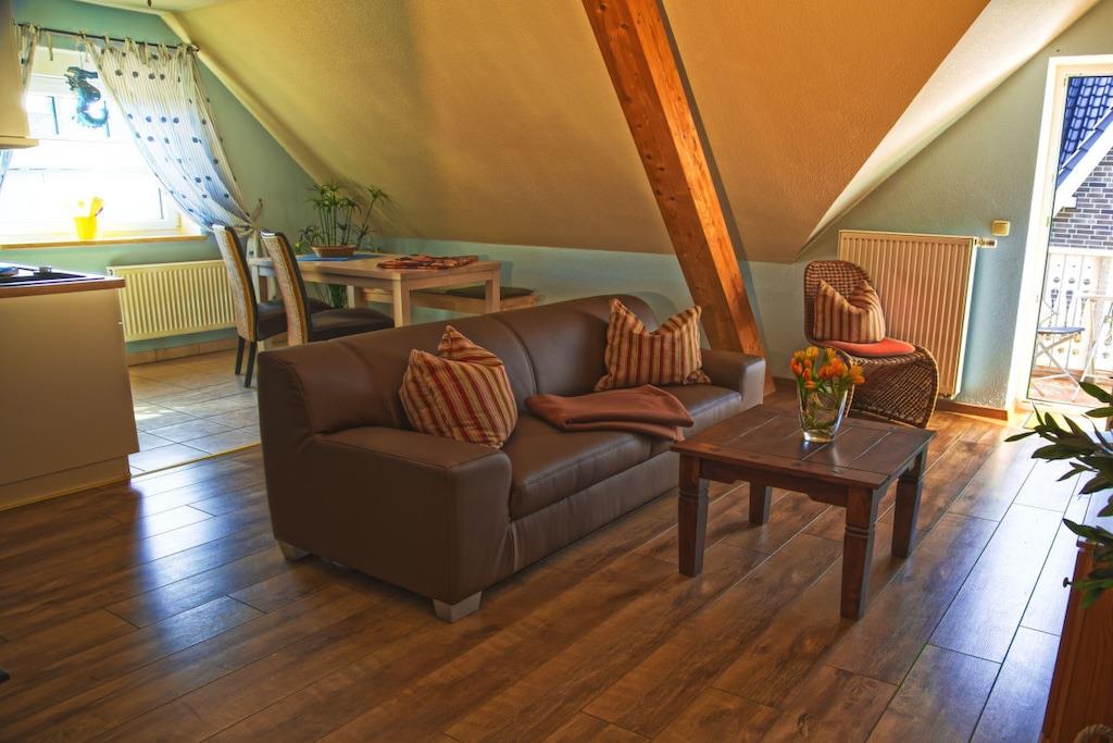 Den nybyggede loftslejlighed på 55 kvadratmeter er egnet til to til tre gæster. Den har en stue med åbent køkken og et separat soveværelse. Alle gæster har adgang til vores grillplads med siddepladser i haven. Cykler i høj kvalitet i aluminium og stave til stave af stavgang er også tilgængelige gratis. Der er et bageri og et fiskerøgeri i nærheden, ligesom de vidunderlige vandre- og cykelstier. En finsk sauna på loftet giver dig mulighed for at nyde selv de køligere dage i Baabe, især efter en lang cykeltur eller vandretur gennem det unikke landskab i Mönchsgut-regionen.