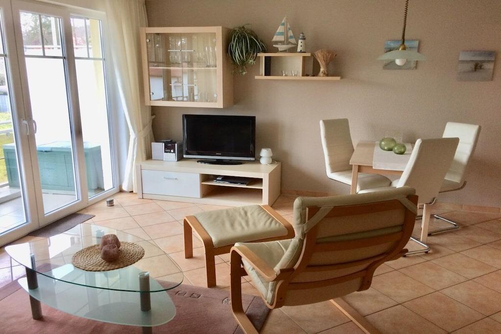Unsere Ferienwohnung "Meeresbrise" liegt direkt an einem der schönsten Strände auf der Insel Rügen! Von der Ferienwohnung aus können Sie bequem zu Fuß den Strand erreichen und dort die Sonne genießen, im Meer schwimmen oder lange Spaziergänge entlang der Küste unternehmen. Auch zahlreiche Restaurants, Cafés und Einkaufsmöglichkeiten befinden sich in unmittelbarer Nähe. Lassen Sie ihr Auto einfach in der Tiefgarage stehen und erkunden Sie die Gegend. Zwei Fahrräder stehen zur kostenfreien Benutzung bereit. Die Ferienwohnung Meeresbrise ist somit eine perfekte Wahl für einen erholsamen Urlaub in Baabe direkt an der Ostsee. Eine Komplettausstattung sowie zwei große Balkone in herrlicher Süd- und Westlage sorgen für einen angenehmen Aufenthalt.