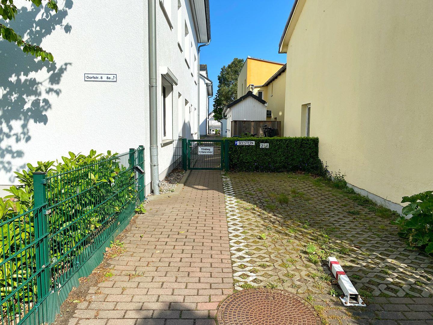 Zur Wohnung gehört ein reservierter Pkw-Stellplatz (Nr. 1) direkt vor der Haustür, ein Schuppen zum Abstellen für Fahrräder u.a. (Nr. 1)
