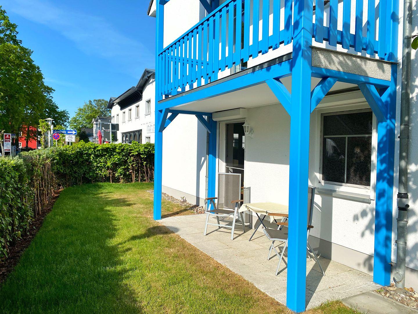 Die Ferienwohnung befindet sich im ruhigen Teil des Ostseebades Baabe Richtung Baaber Bollwerk in einer kleinen Wohnanlage, bestehend aus zwei Häusern an der Dorfstraße/Ecke Seestraße. Das Objekt wurde 1998 errichtet und die Wohnung Anfang 2022 renoviert. Zu jeder Wohnung in den 3-geschossigen Häusern gehört eine Terrasse bzw. ein Balkon, außerdem ein abschließbarer Fahrrad-/Abstellraum und ein Pkw-Stellplatz.