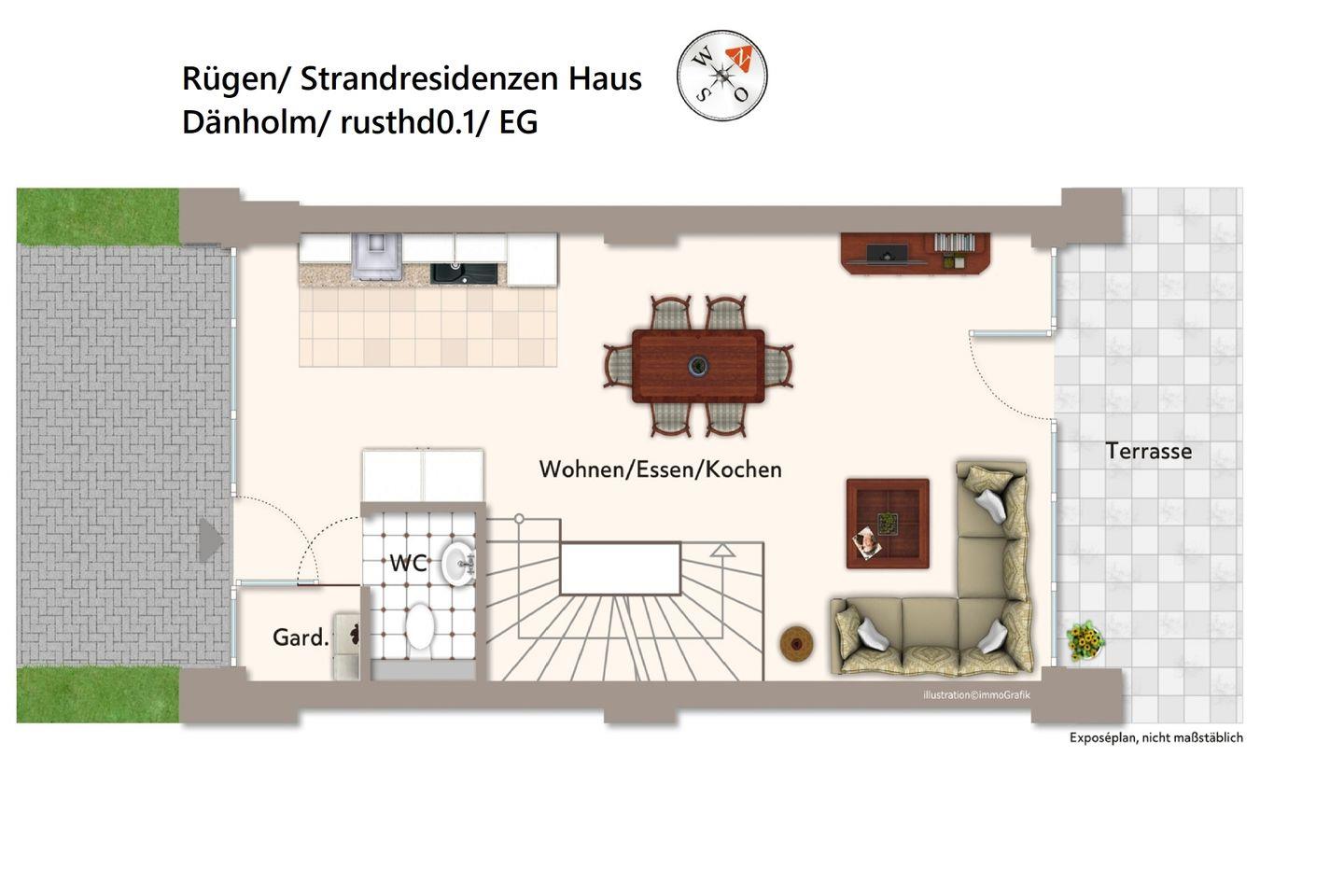 Das lichtdurchflutete Apartment befindet sich in nordöstlicher Lage und verläuft über zwei Wohnebenen, die im Erdgeschoss und im ersten Obergeschoss des Hauses Dänholm liegen. Die Ostsee liegt vor der Haustür - in nur 130 Metern erreicht ihr den feinsandigen, kilometerlangen Südstrand. In der Umgebung warten zahlreiche Ausflugsmöglichkeiten auf euren Besuch: Das Dokumentationszentrum Prora, das Prora-Zentrum, das Oldtimer-Museum Rügen, das NVA-Museum Rügen, die Galileo Wissenswelt Rügen, der Kletterwald Binz-Prora und das Naturerbe Zentrum Rügen mit dem Baumwipfel-Pfad sowie das beliebte Karls Erlebnis-Dorf in Zirkow. Fußläufig befinden sich zwei Bäckereien, einige Bistros sowie ein Restaurant, kleine Mode- und Souvenirgeschäfte als auch ein Fahrradverleih. Eine Segelschule befindet sich in ca. 3 km Entfernung. Im nahe gelegenen Dormero Strandhotel (ca. 800 m) könnt ihr Tagestickets erwerben und den Pool, die Sauna und den Fitnessbereich nach Herzenslust genießen.
