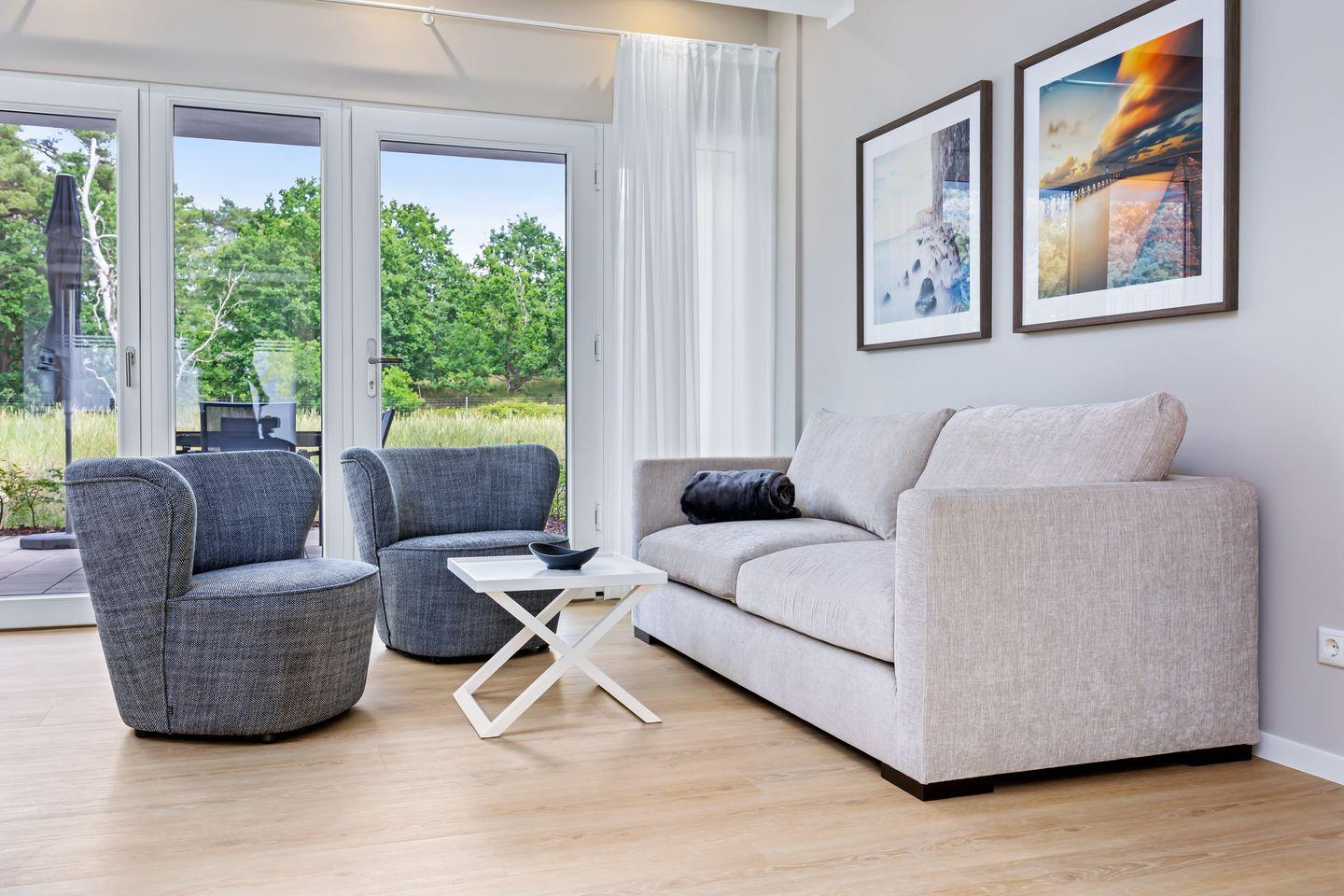 Das geschmackvoll eingerichtete Nichtraucher-Apartment verfügt über Fußbodenheizung, z.T. bodentiefe Fenster, kostenfreies WLAN und eine voll ausgestattete offene Küche mit Geschirrspüler, Kühlschrank mit Gefrierfach, Filterkaffeemaschine, Mixer, Toaster, Wasserkocher, Mikrowelle mit Backofenfunktion und 4-Felder Induktionsherd von BORA sowie über einen behaglichen und großzügigen Wohn-Essbereich. Im Wohnbereich befindet sich ein großer SMART-TV (55 Zoll).