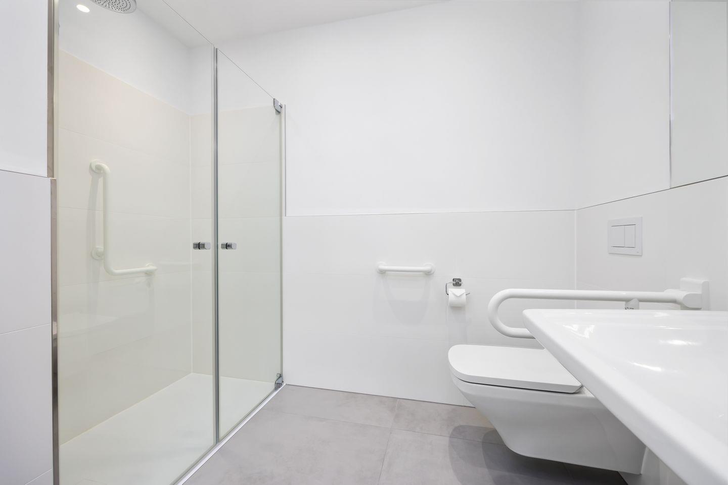 Das Schlafzimmer beinhaltet ein modernes Boxspring-Doppelbett (1,80 x 2,00 m), Kleiderschrank und einen eigenen SMART-TV (43 Zoll). Im stilvollen Badezimmer befinden sich Fußbodenheizung, Handtuchwärmer, eine ebenerdige Regendusche, WC, Waschtisch und Föhn.