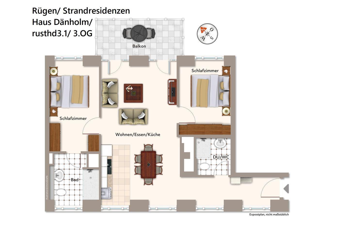 Das lichtdurchflutete Apartment befindet sich in nordöstlicher Lage und befindet sich im dritten Obergeschoss des Hauses Dänholm. Die Ostsee liegt vor der Haustür - in nur 130 Metern erreicht ihr den feinsandigen, kilometerlangen Südstrand. In der Umgebung warten zahlreiche Ausflugsmöglichkeiten auf euren Besuch: Das Dokumentationszentrum Prora, das Prora-Zentrum, das Oldtimer-Museum Rügen, das NVA-Museum Rügen, die Galileo Wissenswelt Rügen, der Kletterwald Binz-Prora und das Naturerbe Zentrum Rügen mit dem Baumwipfel-Pfad sowie das beliebte Karls Erlebnis-Dorf in Zirkow. Fußläufig befinden sich zwei Bäckereien, einige Bistros sowie ein Restaurant, kleine Mode- und Souvenirgeschäfte als auch ein Fahrradverleih. Eine Segelschule befindet sich in ca. 3 km Entfernung. Im nahe gelegenen Dormero Strandhotel (ca. 800 m) könnt ihr Tagestickets erwerben und den Pool, die Sauna und den Fitnessbereich nach Herzenslust genießen.