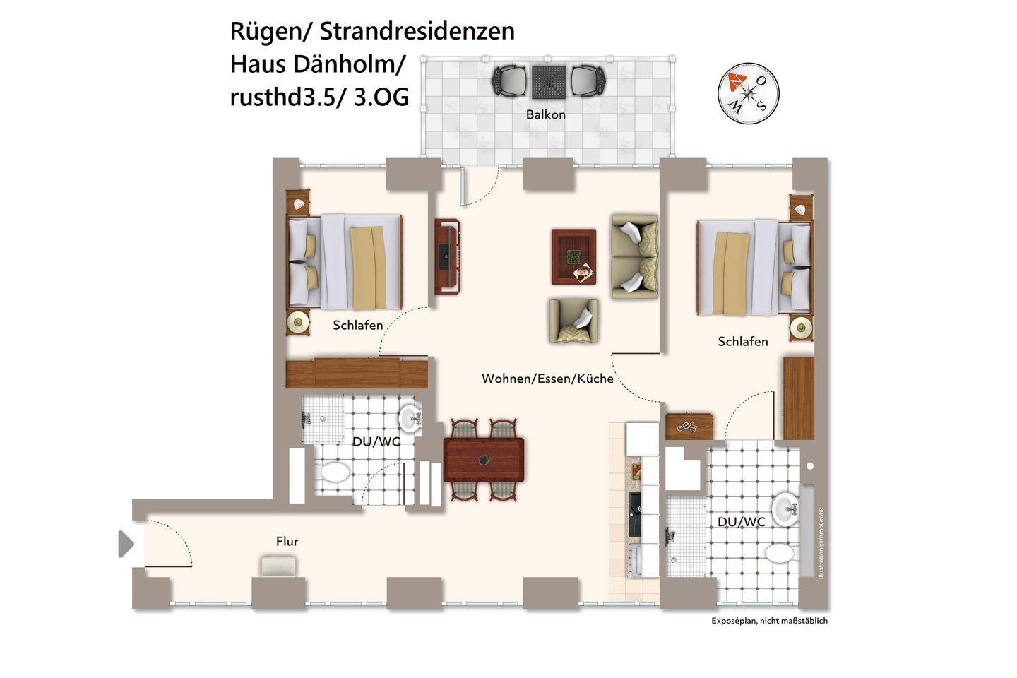 Das 75 m² große 3-Zimmer-Apartment mit Balkon zur Meerseite ist für bis zu 4 Personen geeignet und liegt in erster Reihe zum Strand. Euer Urlaubsdomizil verfügt über zwei Badezimmer und zwei separate Schlafzimmer. Nur wenige Schritte und ihr befindet euch am kilometerlangen Sandstrand der Insel.
