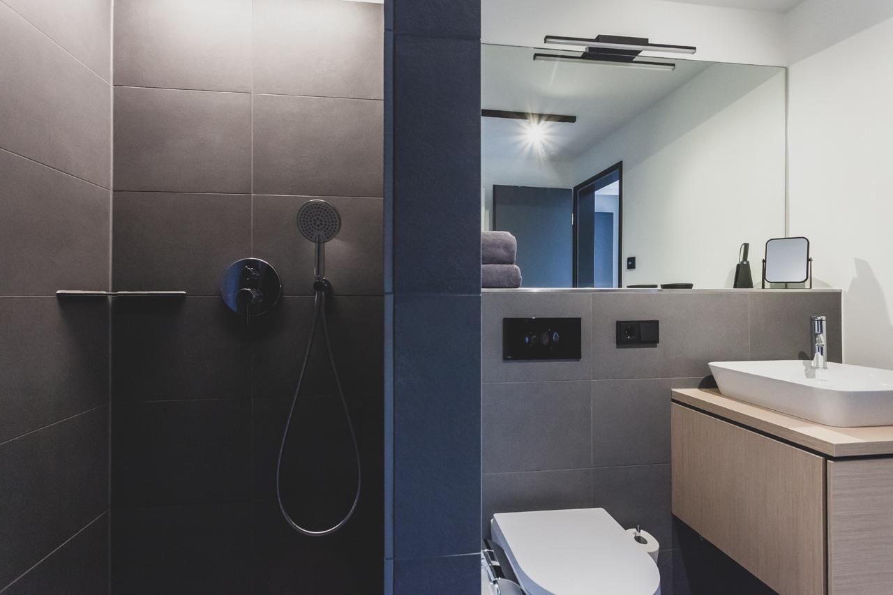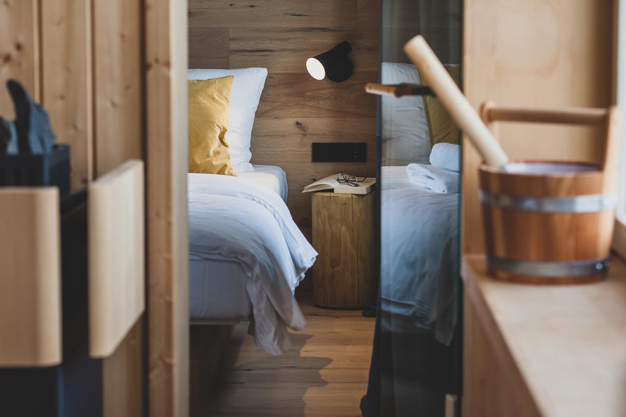 2 Schlafzimmer mit eigenem Bad, Sauna, Kamin und eine Dachterrasse mit atemraubendem Panorama.