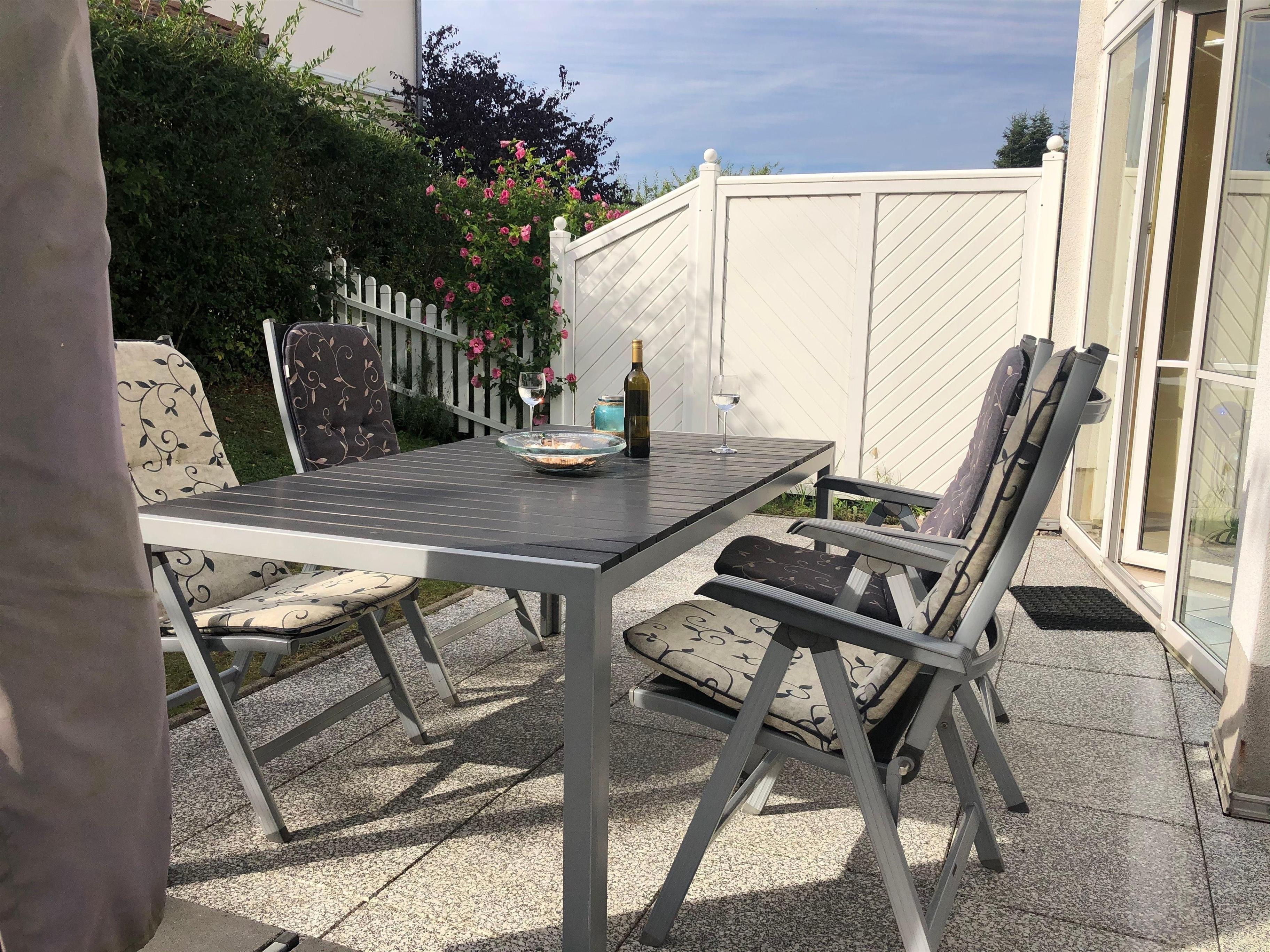 Der Garten, den Sie vom Wohnzimmer aus über die Terrasse betreten können, steht Ihnen zur Nutzung zur Verfügung. Die Terrasse ist mit modernen Gartenmöbeln, Standgrill und Sonnenschirm bestückt.