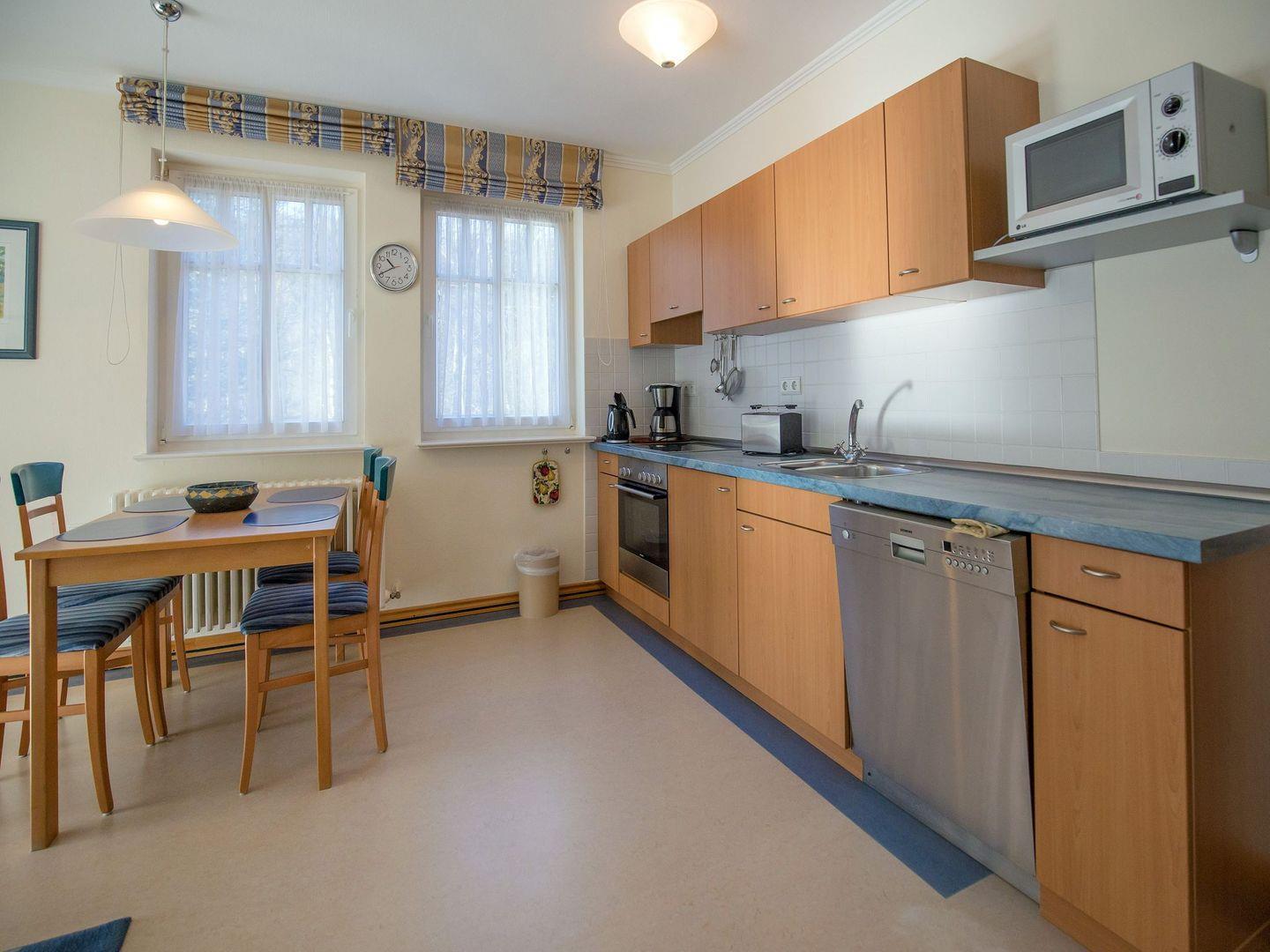Fühlen Sie sich gleich wie Zuhause in dieser geräumigen Ferienwohnung mit eigenem Balkon. Der Wohnraum kombiniert die voll ausgestattete Küche mit einem Essbereich und einem Wohnzimmer inklusive ausziehbarere Schlafcouch. Hier können Sie auf einen 42 Zoll LCD-Flachbildschirm sowie einen DVD-Player und eine Stereo-Anlage zugreifen. Die Küchenzeile überzeugt mit einem Geschirrspüler, einem neuwertigen Backofen, einem Cerankochfeld, einem Toaster, einem Wasserkocher und einer Kaffeemaschine. Das Schlafzimmer ist mit einem Doppelbett ausgestattet und bietet ausreichend Verstaumöglichkeiten für Ihre Kleidung und Urlaubsutensilien. Im Badezimmer wartet eine geräumige Dusche, ein Waschbecken, ein WC und ein großer Spiegel auf Sie. In der Zeit von Mai bis September ist ein eigener Strandkorb am Strand gegen Aufpreis buchbar.