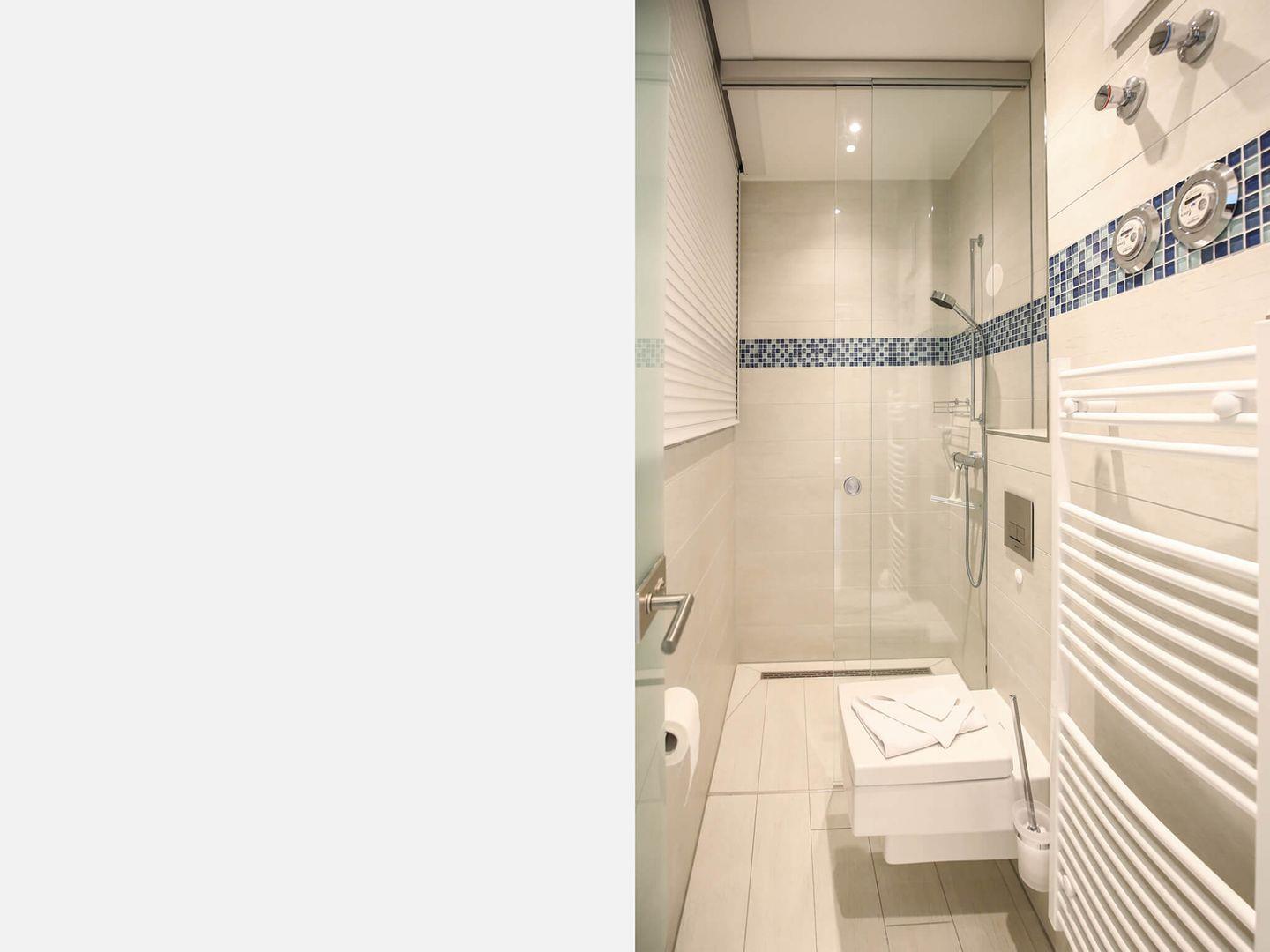 In dieser geräumigen Ferienwohnung genießen Sie Ihr Frühstück auf einem der beiden privaten Balkone mit Seeblick. Der großzügige Wohnraum verbindet das Wohnzimmer mit LCD-Flachbildschirm mit dem Essbereich und der Küche. Diese ist voll eingerichtet und verfügt über einen Geschirrspüler, einen 4-Platten-Herd, eine Mikrowelle mit Backfunktion, einen Toaster, einen Wasserkocher und eine Kaffeemaschine. Beide Schlafzimmer sind mit einem gemütlichen Doppelbett ausgestattet, eines hat einen Balkon. Im Badezimmer erwarten Sie eine geräumige Dusche, ein Waschbecken, ein WC und ein großer Spiegel. Die Nutzung der hauseigenen Sauna sowie ein Tiefgaragenstellplatz sind inklusive. In der Zeit von Mai bis September ist ein eigener Strandkorb am Strand inklusive.