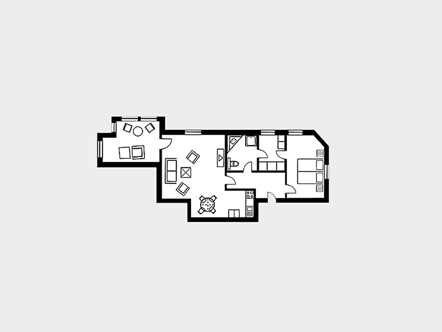 Die Besonderheit dieser hellen Ferienwohnung ist ein separates seeseitiges Erkerzimmer. Der Wohnraum verbindet das Wohnzimmer mit einem Essbereich und einer gut ausgestatteten Küche. Vorhanden sind hier ein 4-Platten-Ceranherd, ein Geschirrspüler, eine Mikrowelle mit Grillfunktion, eine Kaffeemaschine, ein Wasserkocher und ein Toaster. Das Wohnzimmer punktet neben einem Schlafsofa auch mit einem Kabel-TV (LCD), einem DVD-Player und einer Stereo-Anlage. Im Schlafzimmer steht ein Doppelbett, ein angrenzendes Ankleidezimmer bietet ausreichend Stauraum. Das Badezimmer überzeugt mit einer geräumigen Dusche, einem Waschbecken, einem WC und einem großen Spiegel. Haustiere sind in dieser Wohnung herzlich willkommen. In der Zeit von Mai bis September ist ein eigener Strandkorb am Strand gegen Aufpreis buchbar.